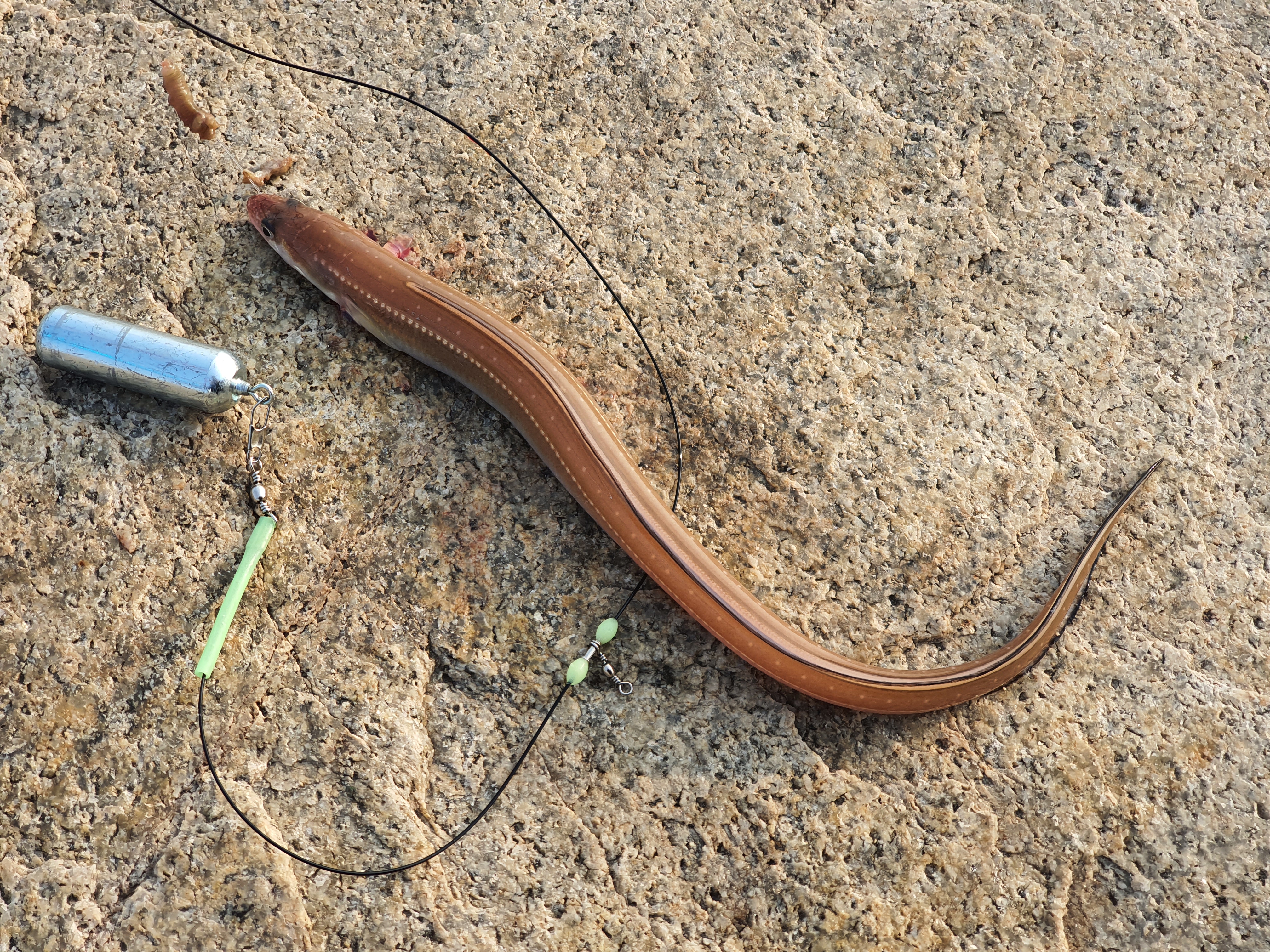 그리고, 잠시 뒤 울려오는 방울소리와 함께 초리가 까닥까닥거립니다. 새벽에 나와야 할 장어가 해 뜨고 올라오네요. 밤새 놀다가 집에 가는 애장어인가 봅니다. 바로 방생이네요.