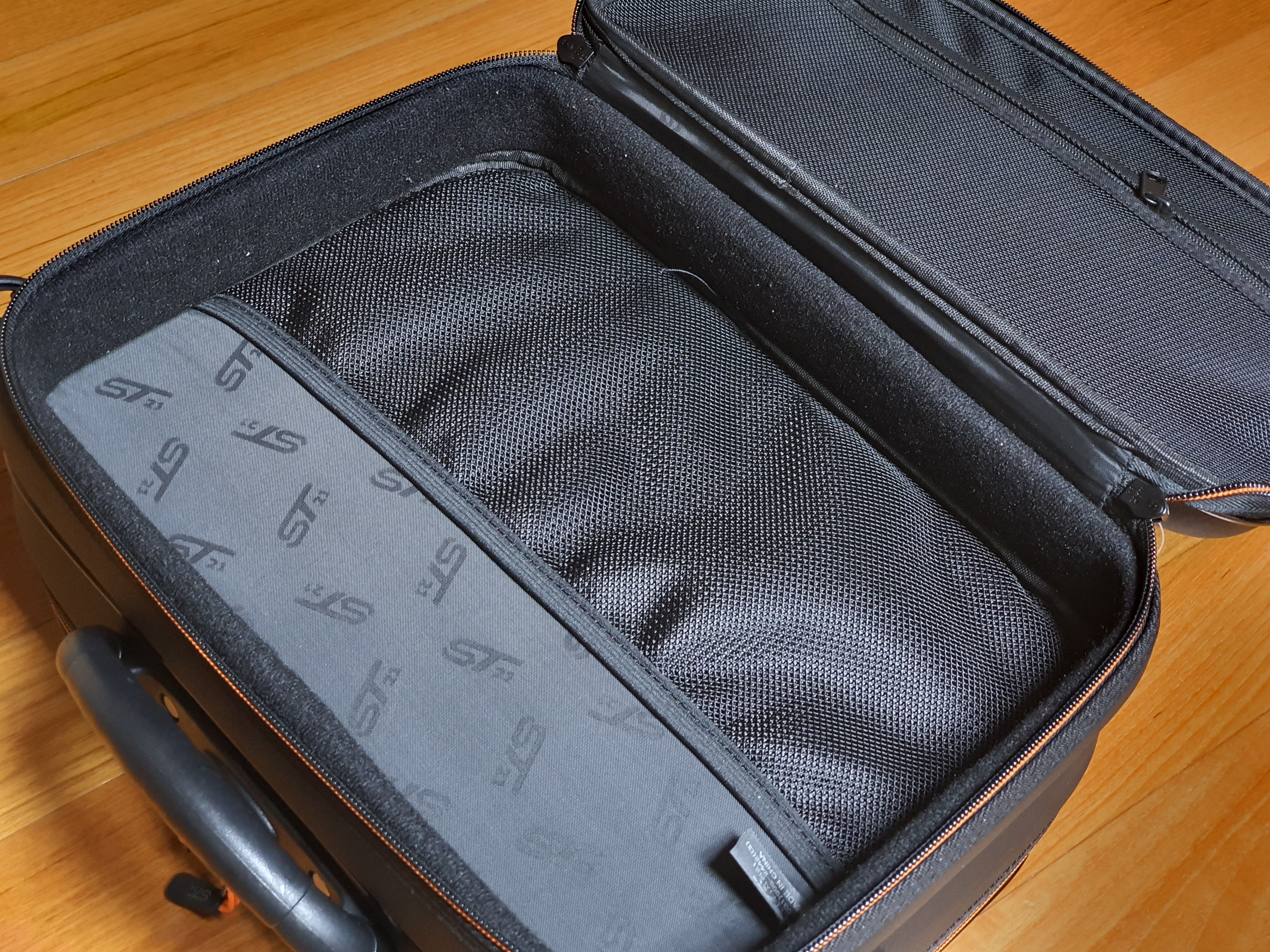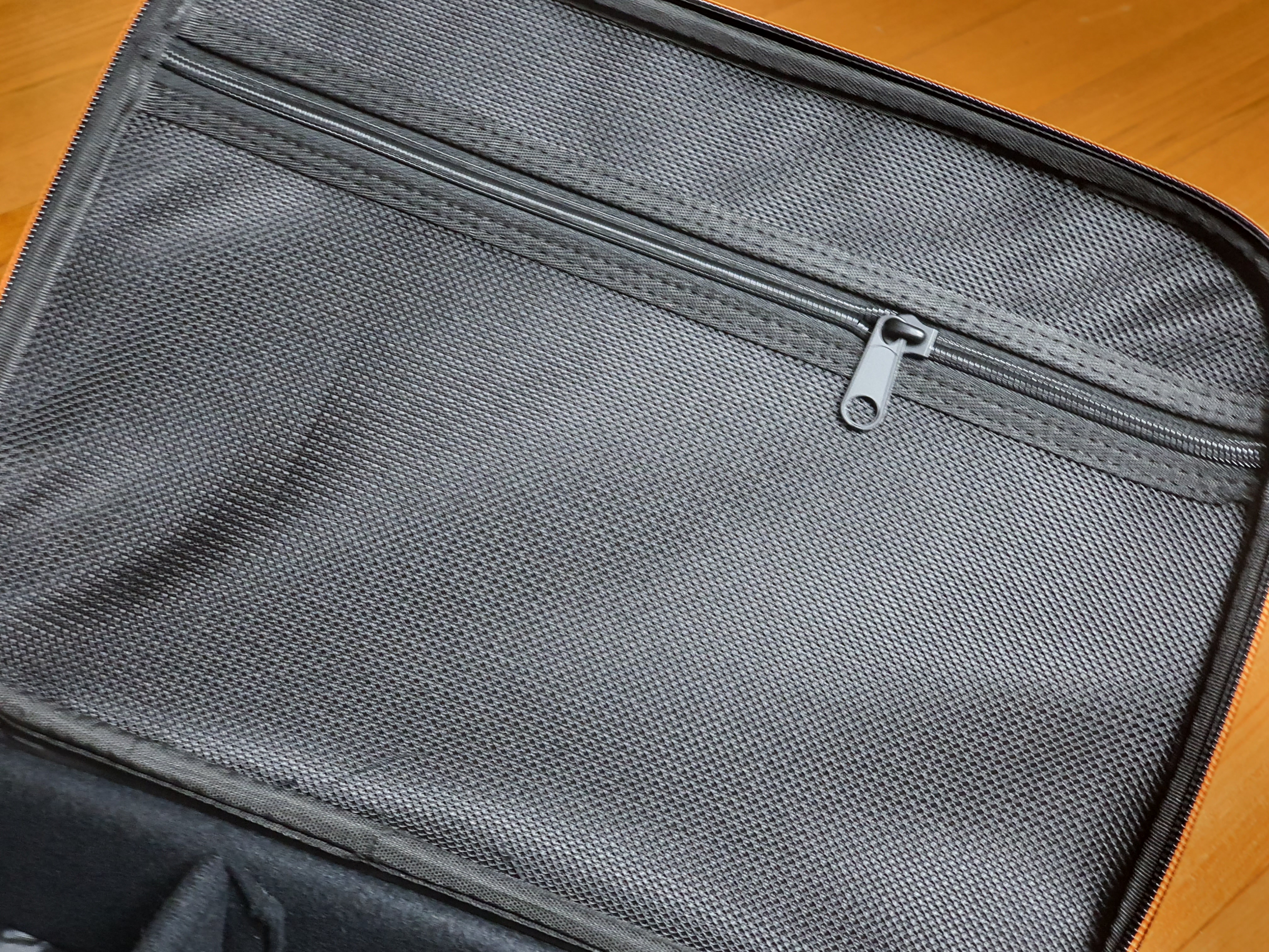 반대편 수납공간입니다. 깊이가 9cm정도이라 이곳에 원투낚시 릴 수납은 어렵습니다. 작은 루어릴은 충분히 들어갈 듯 하네요. 별도 벨크로는 없고, 끼워 넣어서 보관 가능한 수납공간이 있습니다.