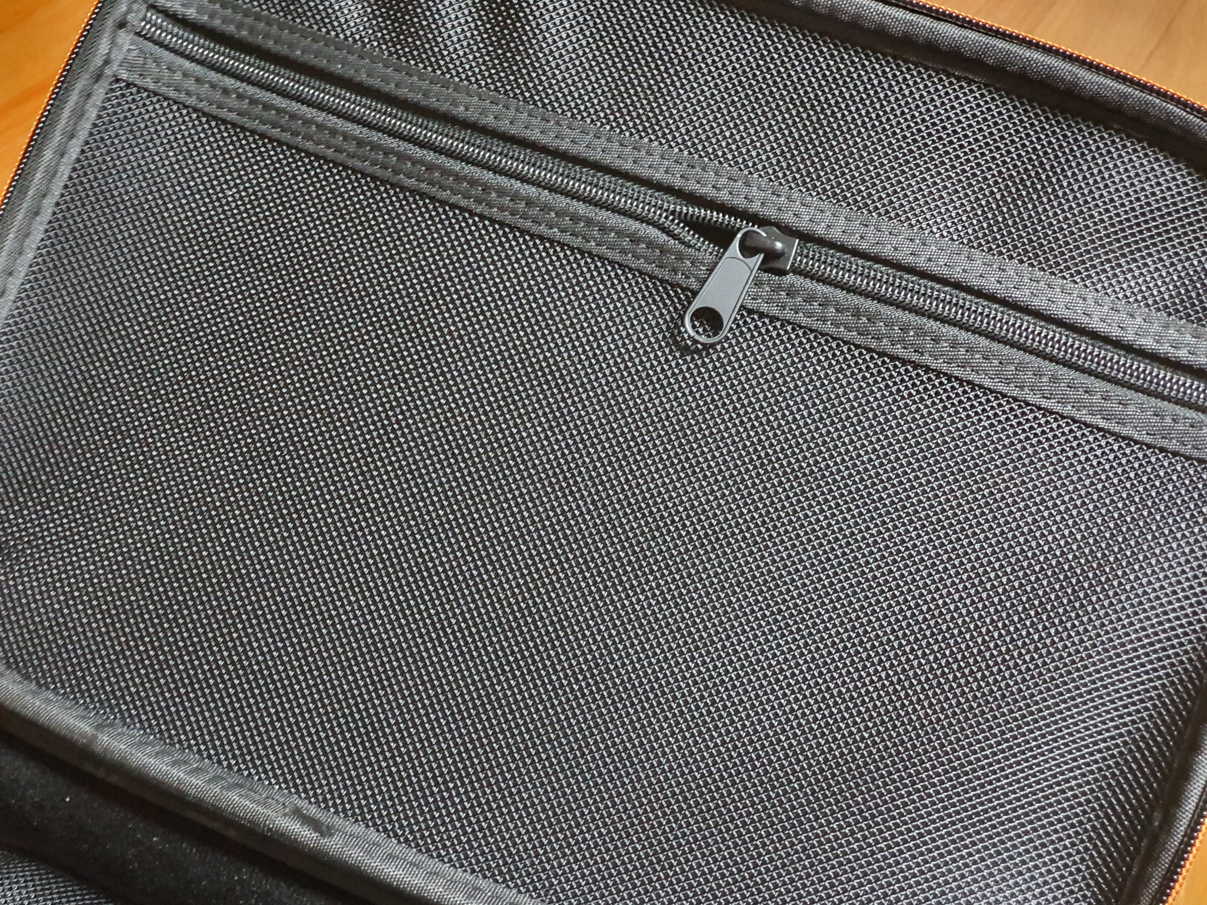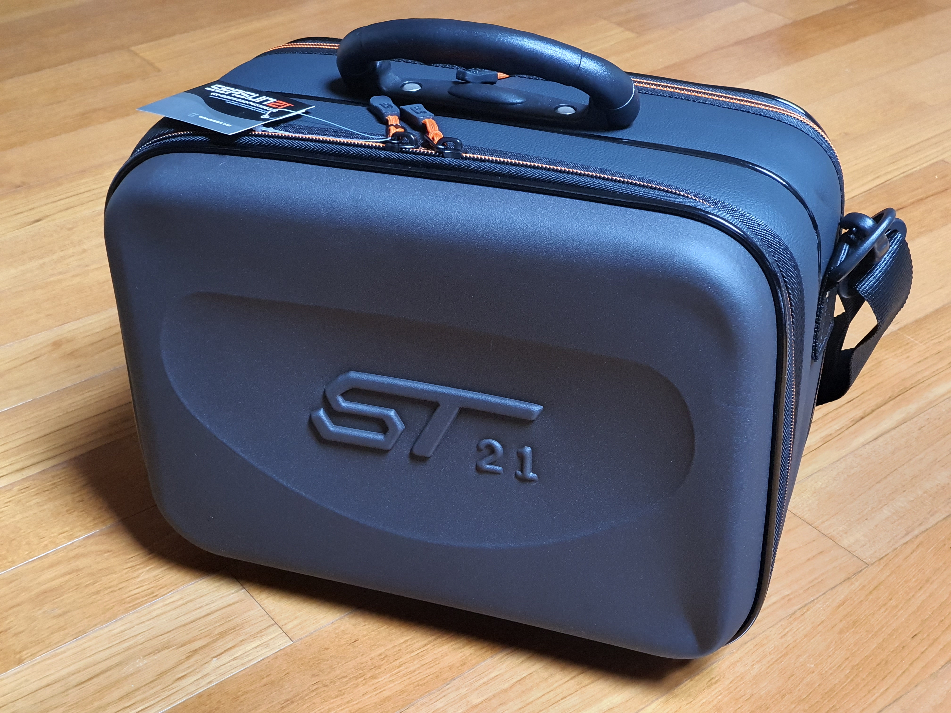 시선21 로고가 정 중앙에 박혀 있구요. 재질은 PU라고 되어 있는걸 보니 폴리우레탄인 듯 합니다. 가볍고, 외부충격도 어느정도 흡수하고, 복원력도 강한 소재인데 느낌상 소프트백과 하드케이스의 중간 정도라고 생각하면 될 듯 합니다.