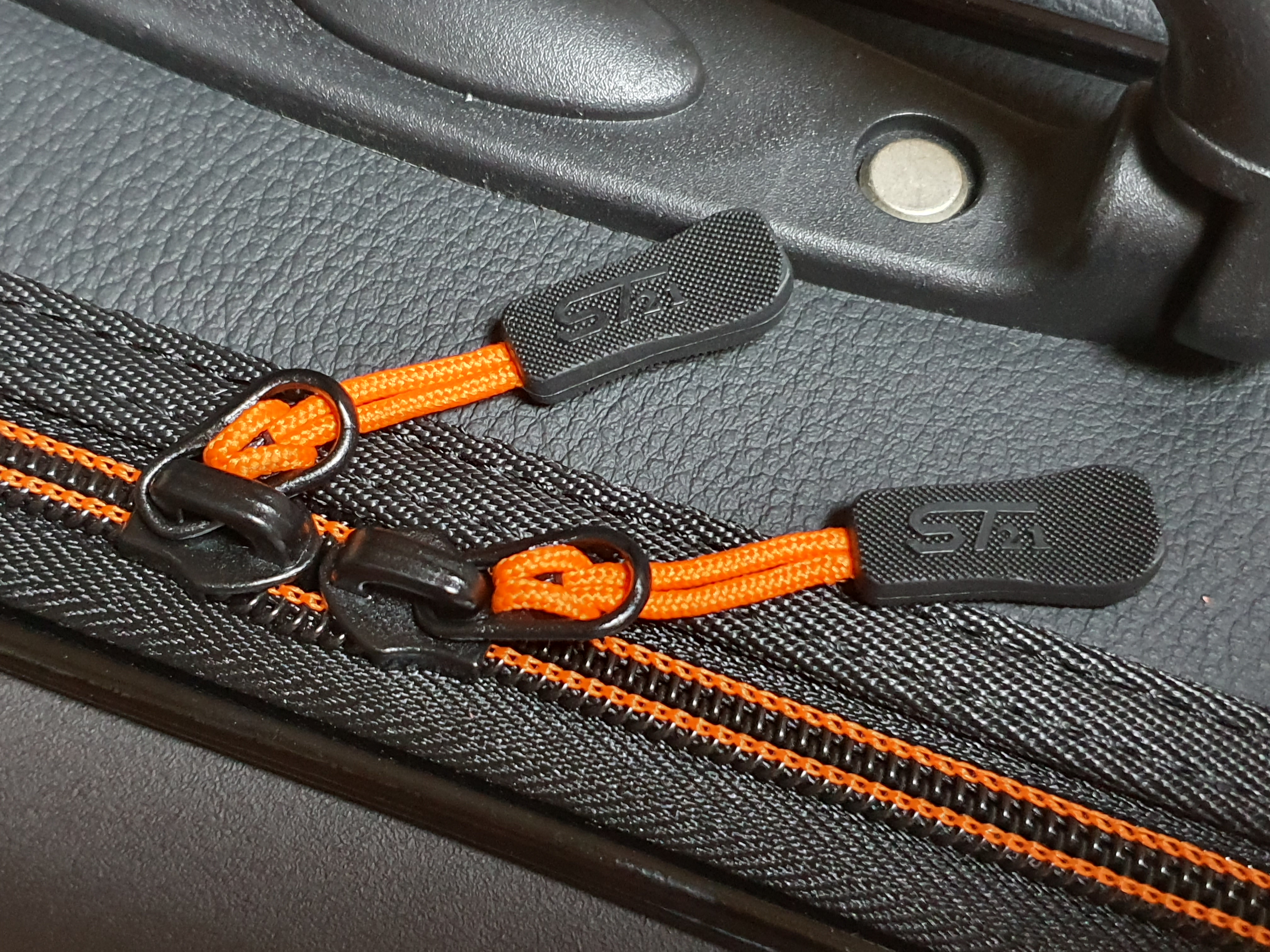 지퍼부분이 매우 매력적인 디자인인데요. 전체적으로 어두운 컬러의 가방에 지퍼선과 지퍼손잡이에 주황색 컬러를 넣어서 고급스러워 보인다랄까...