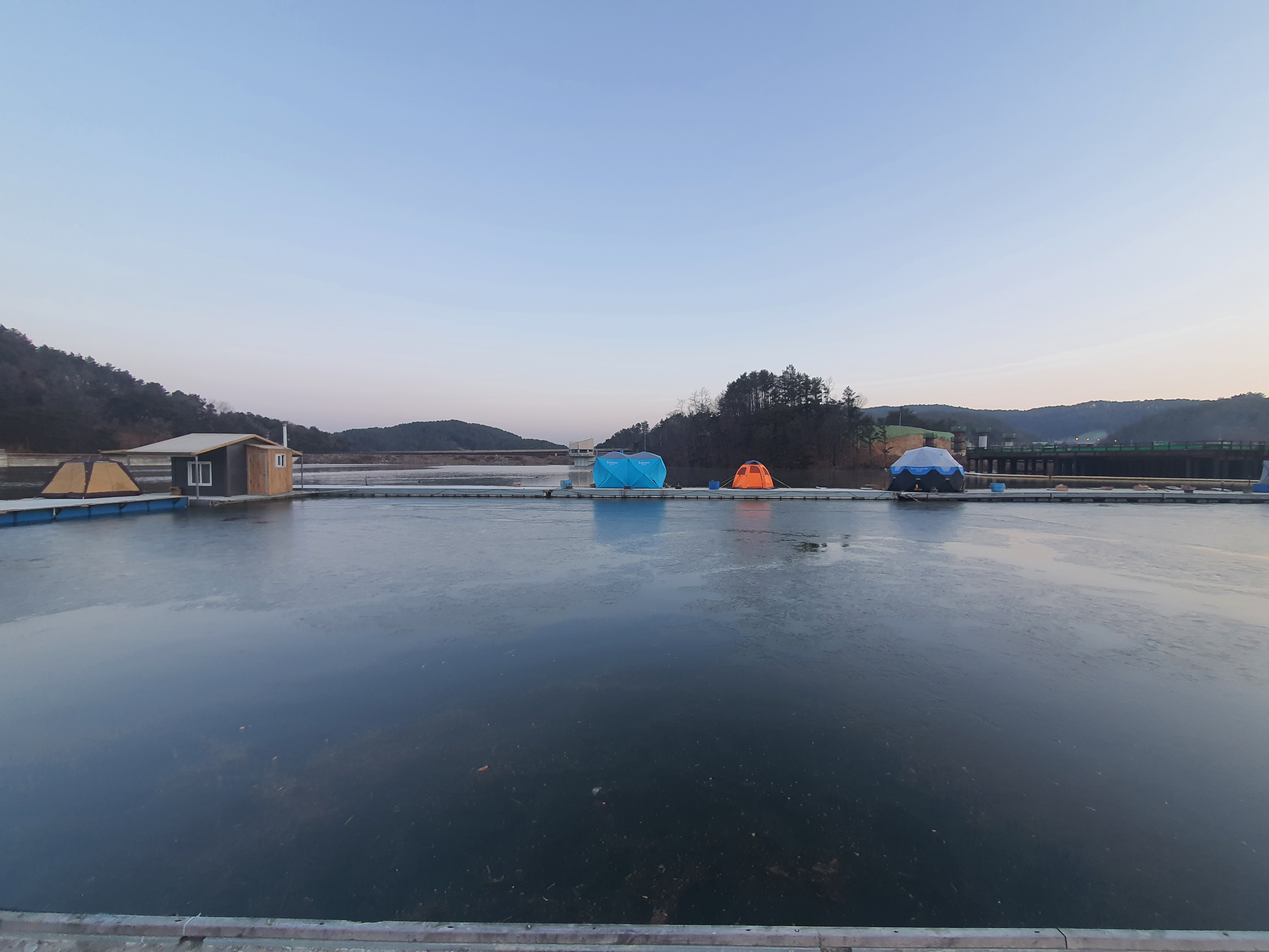연일 영하의 기온으로 내려가며 겨울의 추위가 깊어지고 있습니다. 겨울이 깊어지고 저수지의 물이 두껍게 얼면서 빙판위에서 즐기는 다양한 재밋거리들이 생기는데요. 그 중에서도 낚시꾼들이 반기는 재밋거리가 빙어낚시가 아닐까 생각됩니다. 지난 겨울은 따뜻한 겨울로 인해 저수지가 얼지않아 그렇게 많이 즐길 수 없어 빙어낚시를 물낚시로 즐겼는데요. 그곳이 바로 이번에 찾은 마둔저수지에 있는 마둔낚시터입니다. 코로나로 인해 사람들과의 접촉을 최소화하고, 항상 마스크를 쓰며 생활 방역은 철저히 준수하였습니다.