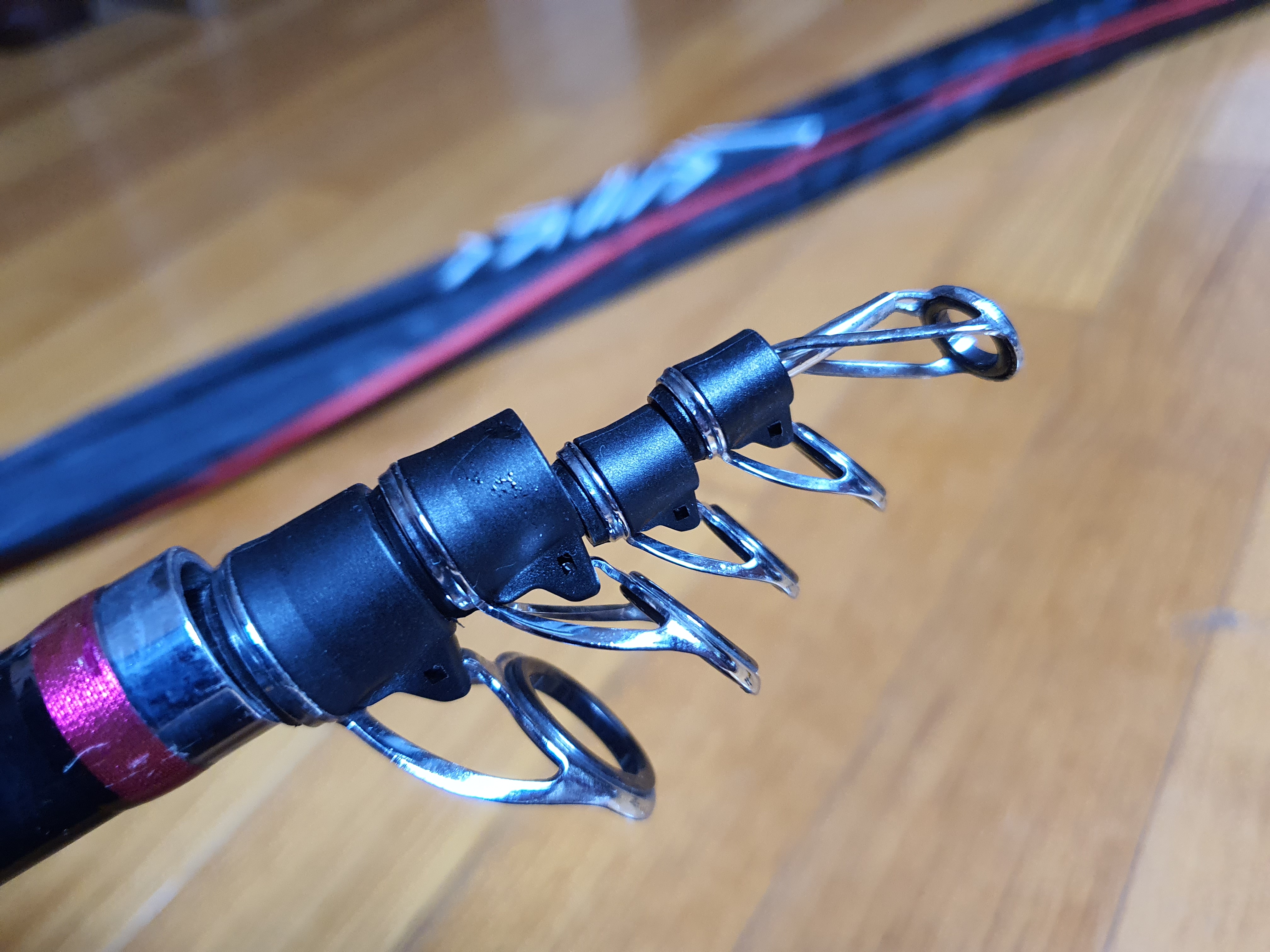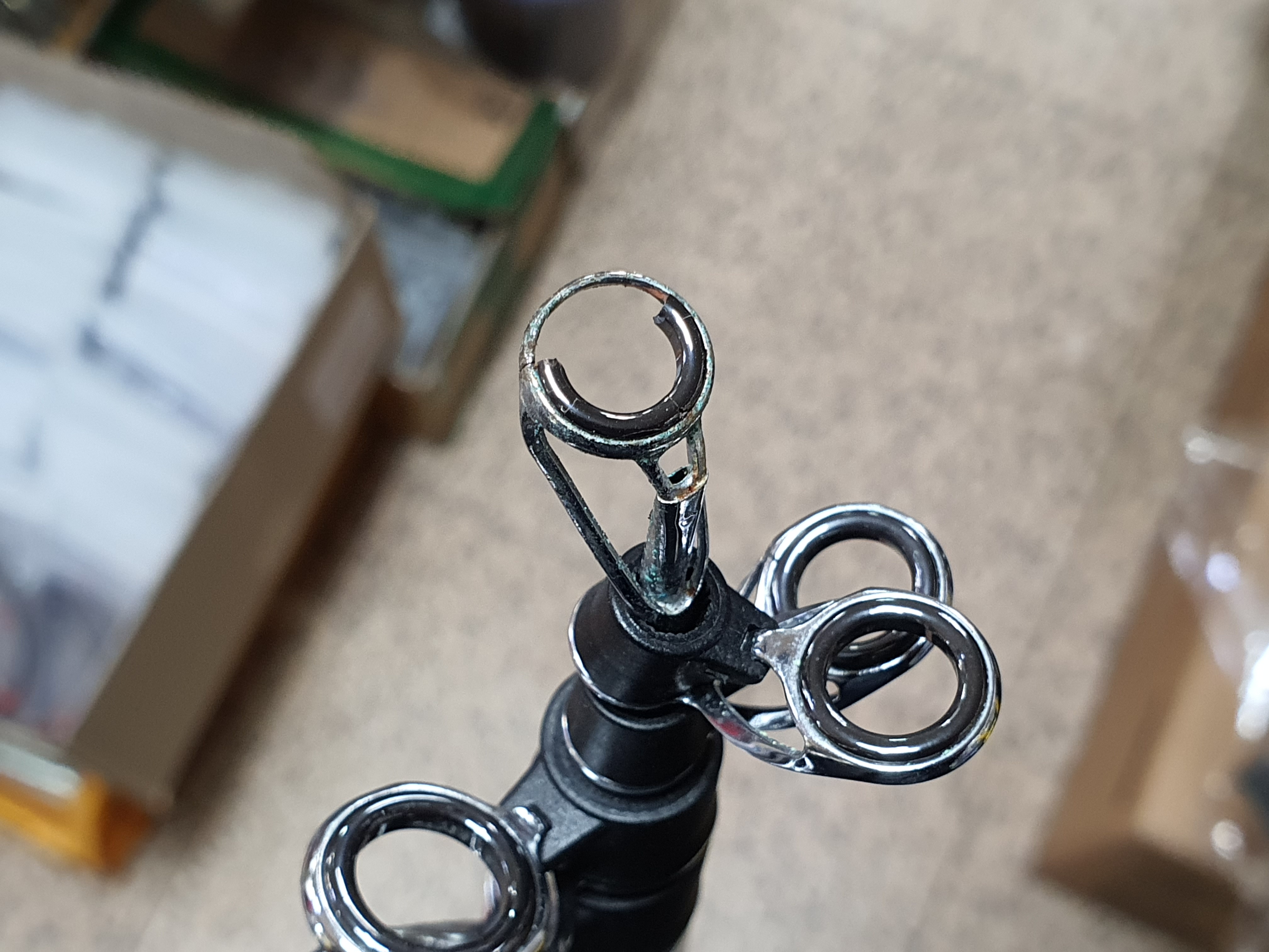 삼남매아부지님께 나눔 받았던 레드펄스 실수로드가 지난번 출조때 보니 탑가이드 가이드링이 부러져 세라믹도 같이 깨져 있더군요. 큰 충격을 준 기억이 없는데, 출조후 제대로 관리하지 않아 깨졌는지도 모르겠습니다.
