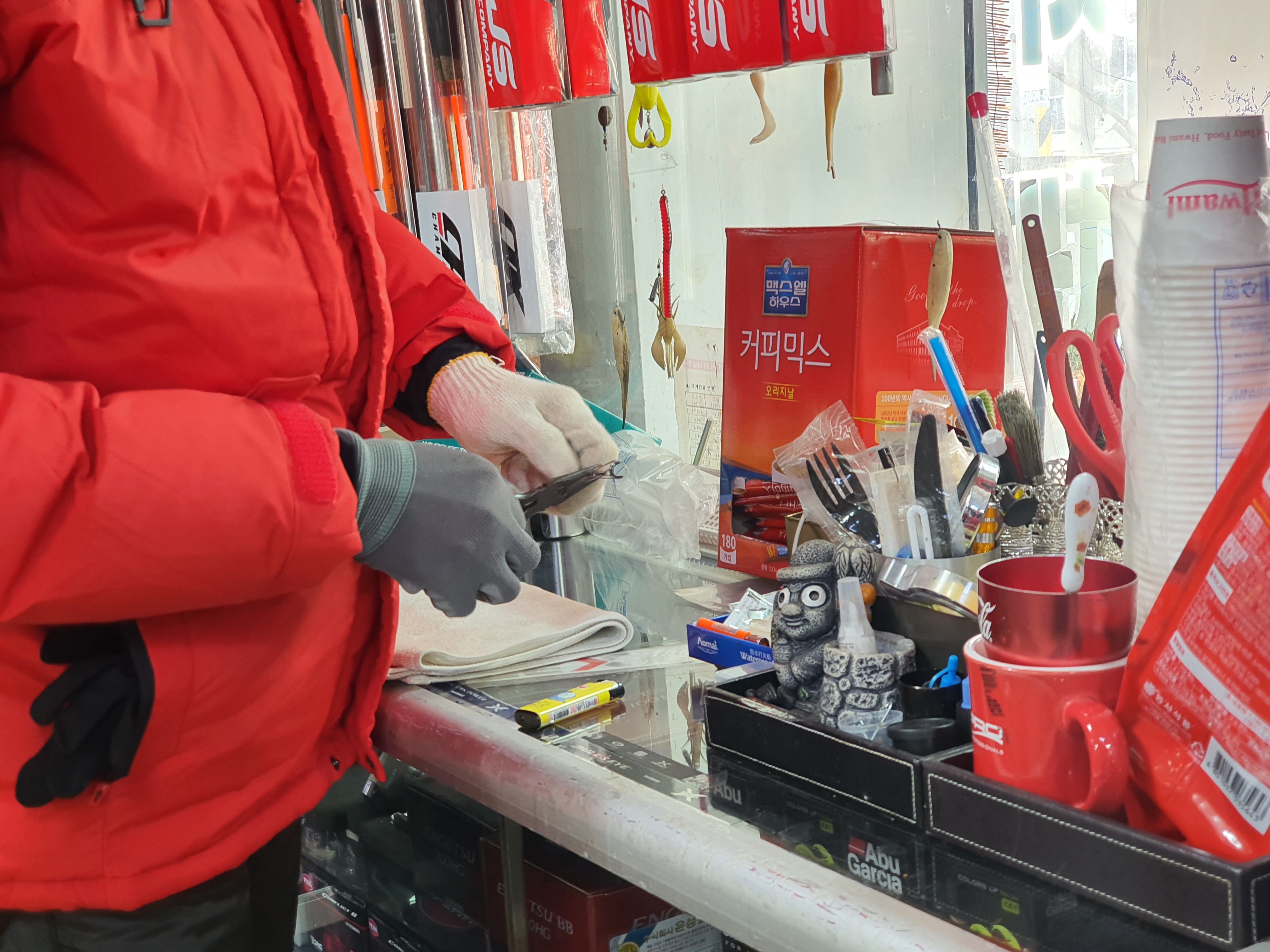 지난번 BT30-425 가이드 수리를 한적도 있고, 몇차례 뵙기는 했지만, 필자가 묵둑둑하기에 수리만 요청하고 수리되는동안 송악점에 있는 낚시용품 구경을 합니다.