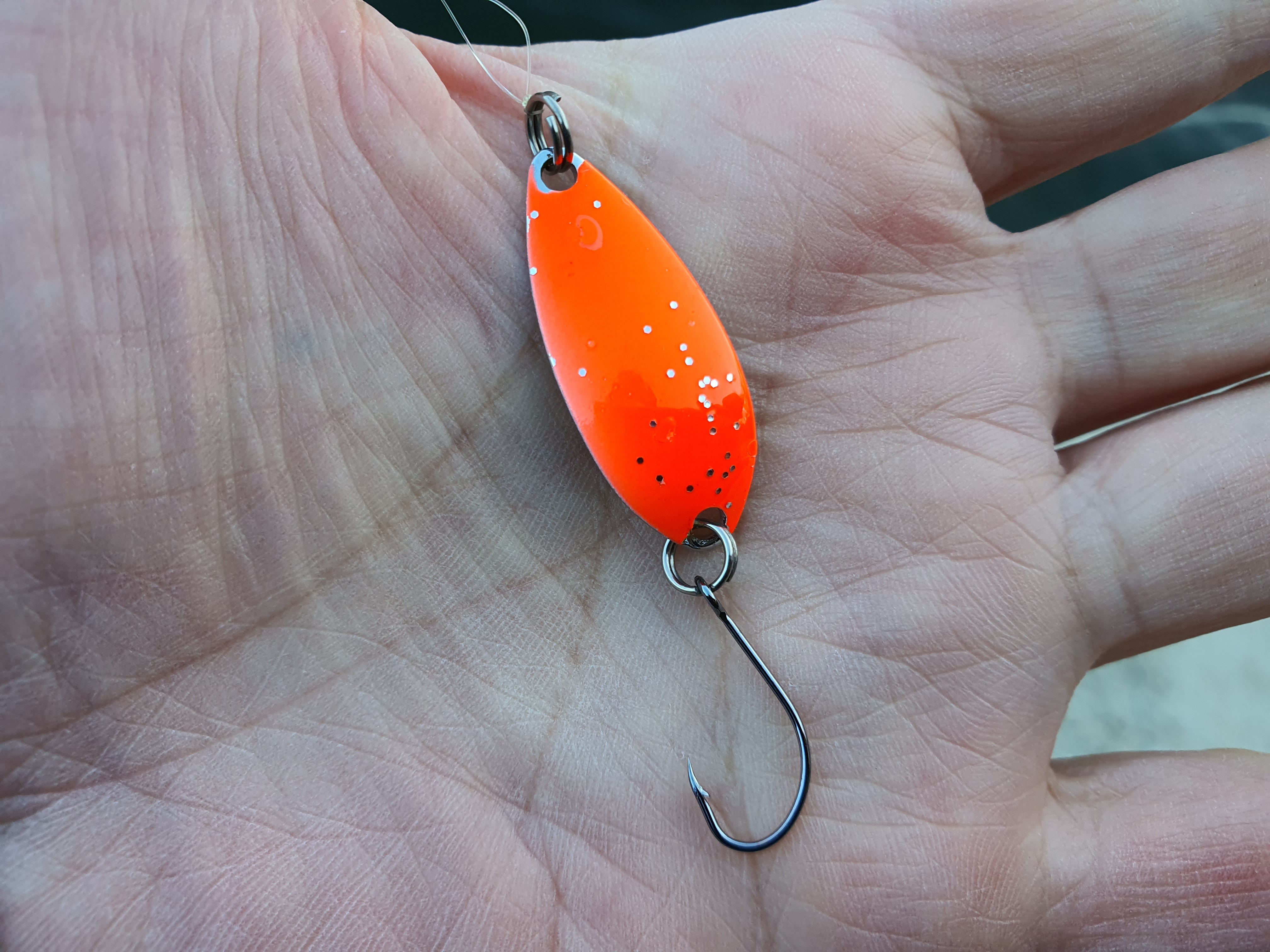 시작은 지난 시즌에 재미를 봤던 주황색 스푼을 달고 캐스팅을 합니다. 시작하고 두번째 캐스팅 후, 릴링을 하는데 덜커덩~ 바로 히트!! 입니다.