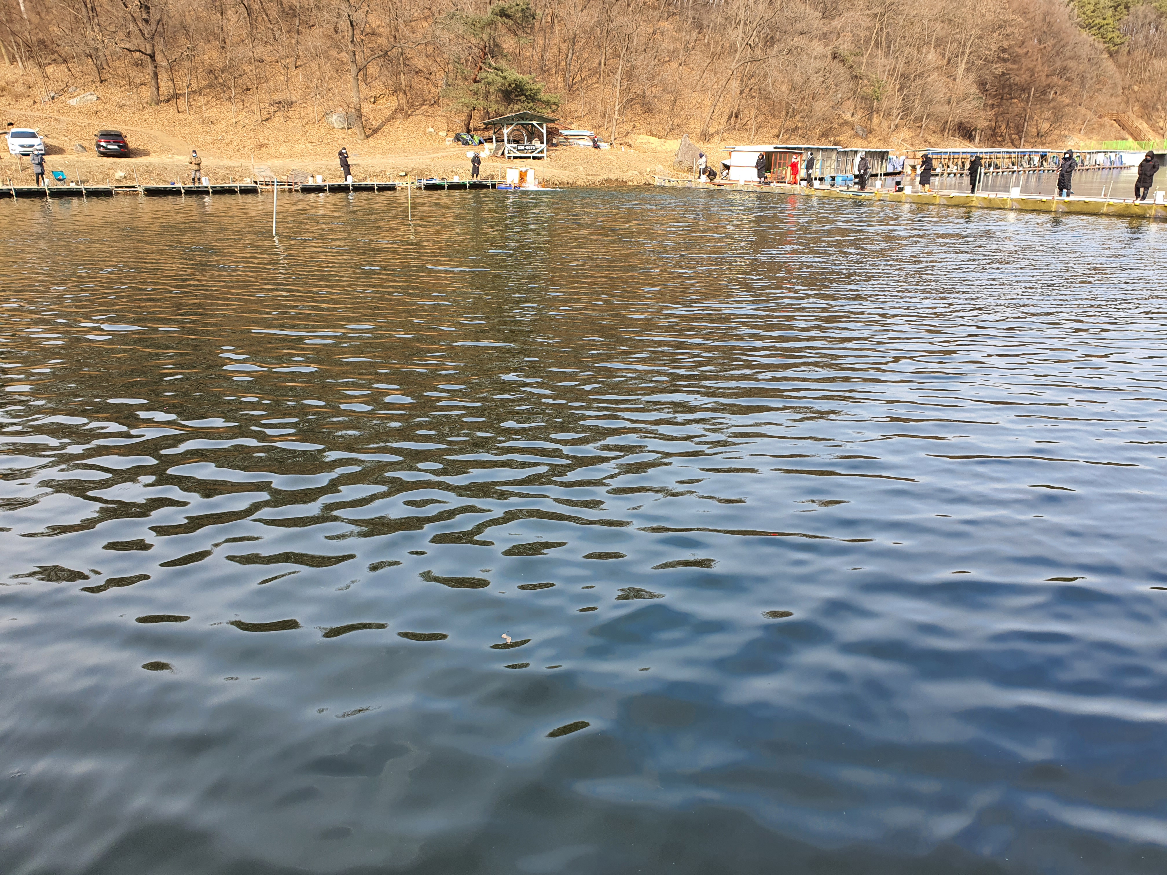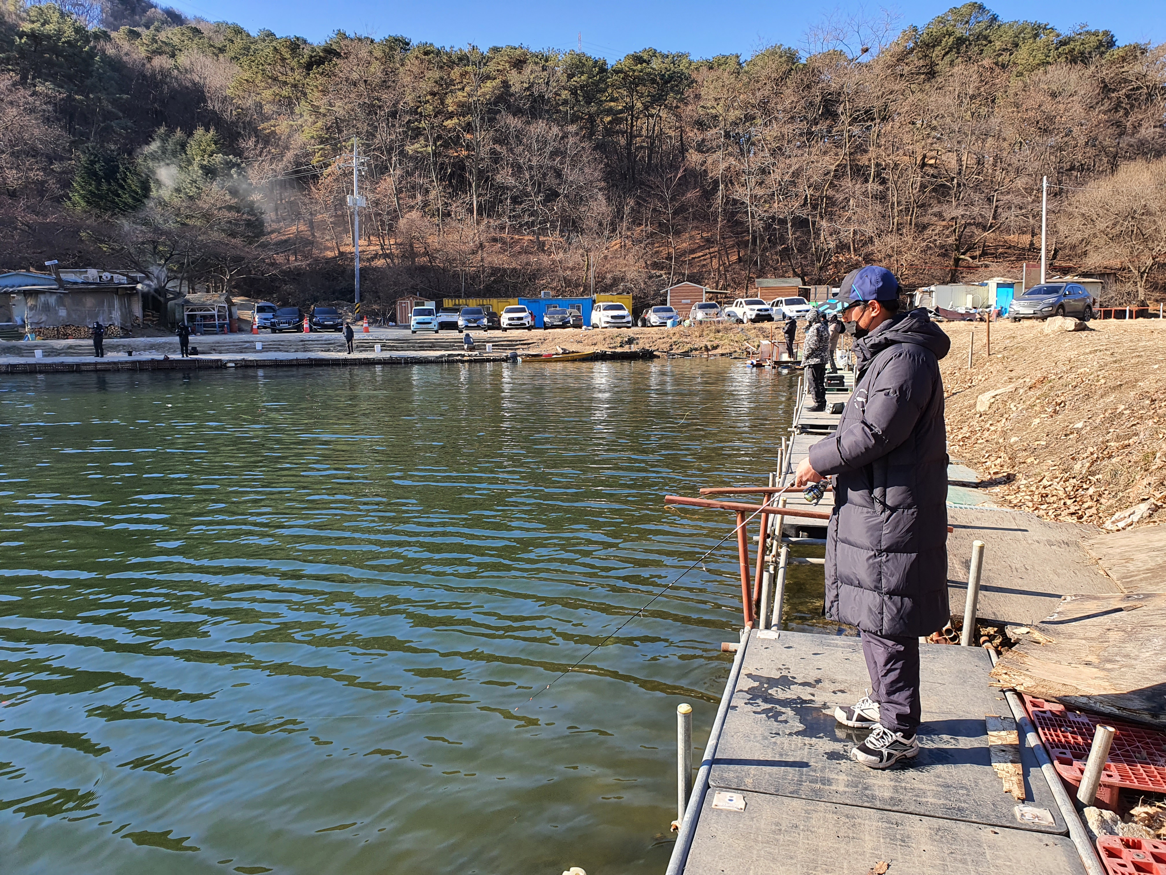 추운날씨 속에서도 한명 두명 오시더니 꽤 자리를 차지 합니다. 코로나로 인해 체온 측정 후, 입어료를 내고 야외이지만 향상 마스크를 쓰고 낚시를 시작합니다.