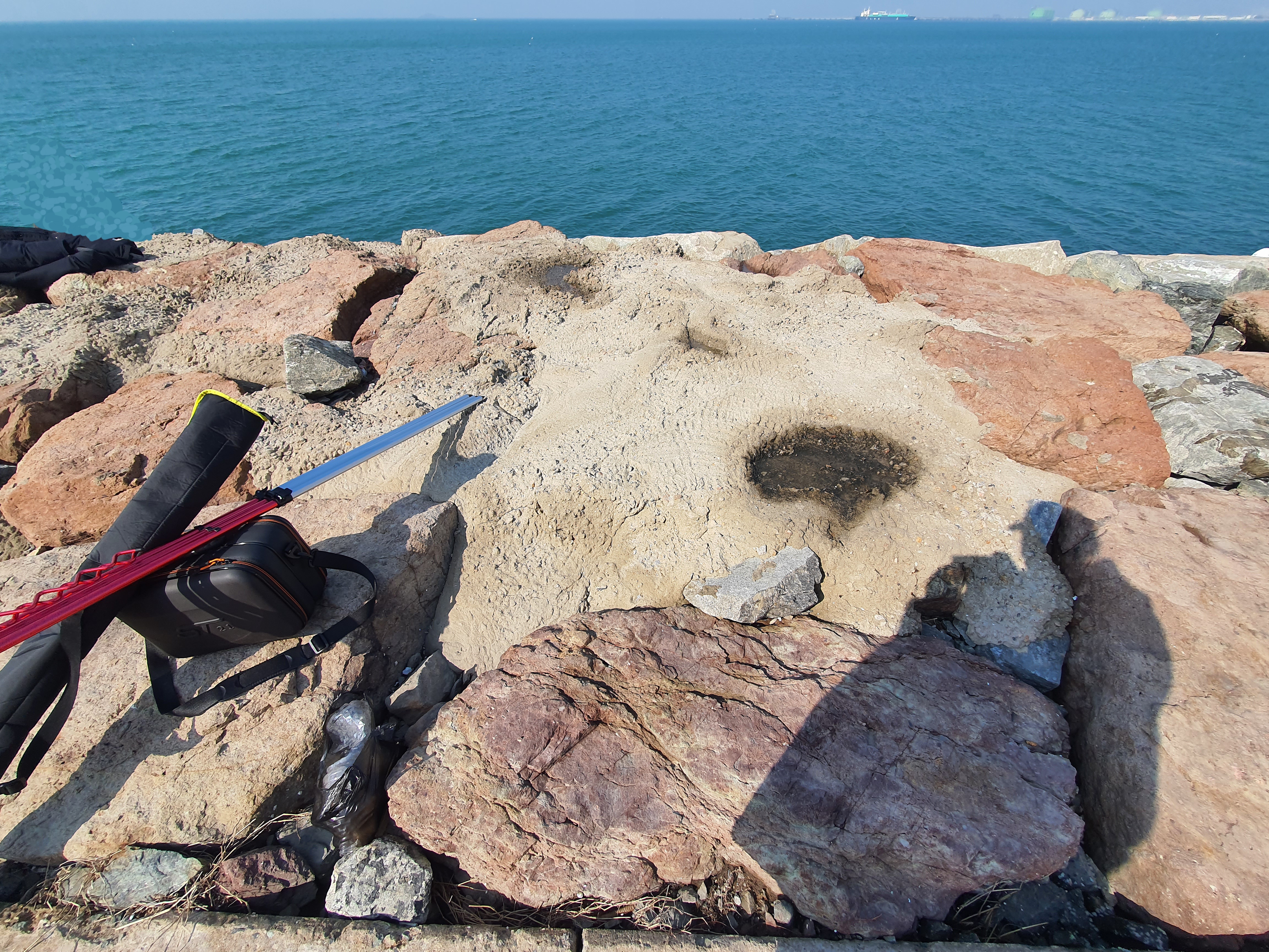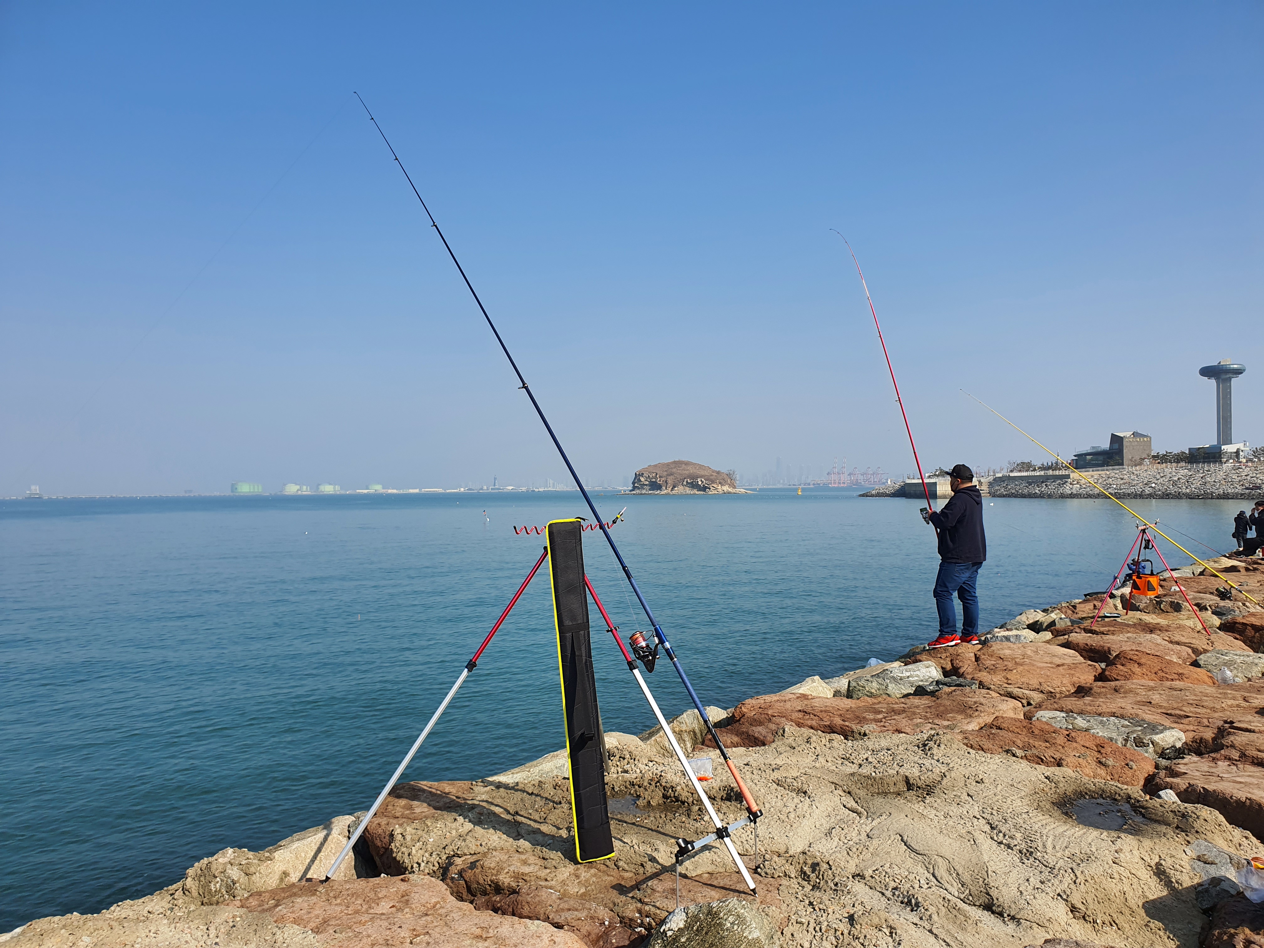그렇게 바다를 보며 힐링을 하고 있는 와중에 원투더투 아우님이 달려와 조인을 합니다. 미친로드와 GP33대를 사용하는데, 파워 캐스팅으로 필자보다 최소 1.5배~2배를 날려버리네요. 몇차례 미친로드 초릿대와 허리가 부러질 정도로 파워 캐스팅을 하는 아우님을 보면 그저 부러기만 하네요.