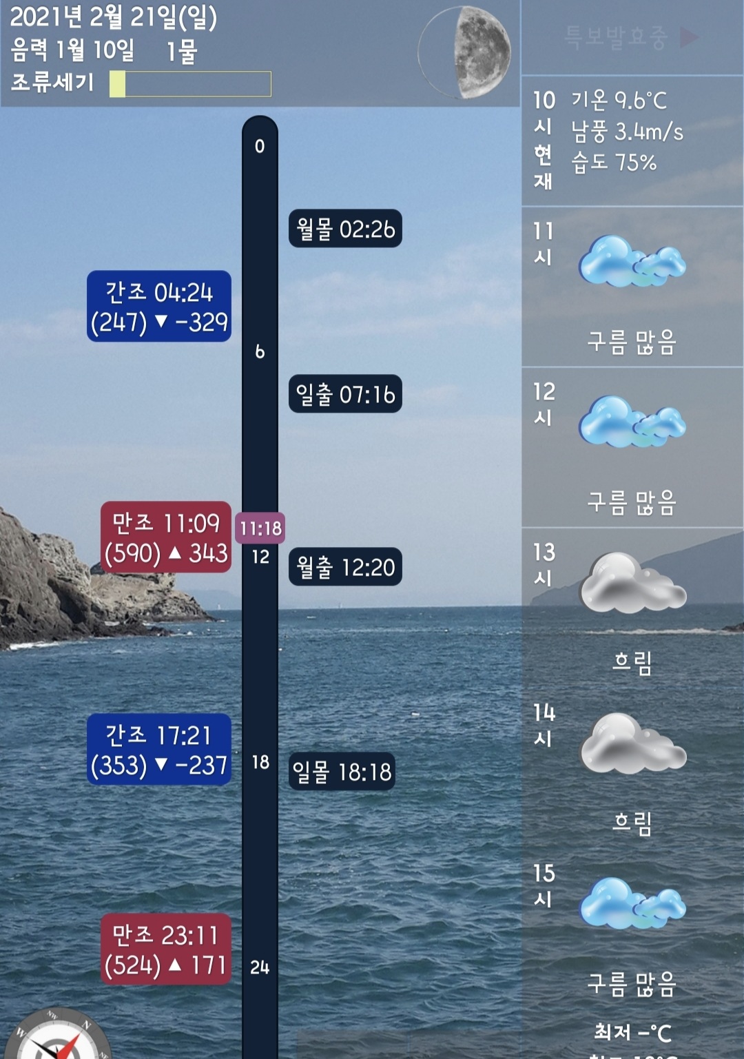 추위가 어느정도 가고, 봄날씨가 찾아오면서 낮기온 뿐만 아니라 최저기온도 영상인 날이 많아지고 있습니다. 날이 풀리기 시작하니 시즌 아웃했던 조사님들도 하나둘 21년도 시즌을 준비하거나 이미 시작하는 듯 합니다. 시즌 아웃을 따로 하지 않고, 그저 기회가 되면 출조했던 필자도 지난번 꽝을 쳤던 시화방조제를 다시 찾아 복수전을 치뤄봤습니다. 기온은 최고 기온이 16도가 넘어가는 예보였지만, 해수온도는 2~3도 수준이라 과연 고기들의 활성도가 있을지 의문이었는데요. 과연 복수전에 성공했을까요? 바람은 오후부터 터진다는 예보였지만, 오후 1시에 철수 예정이라 무시하고 출조했네요.