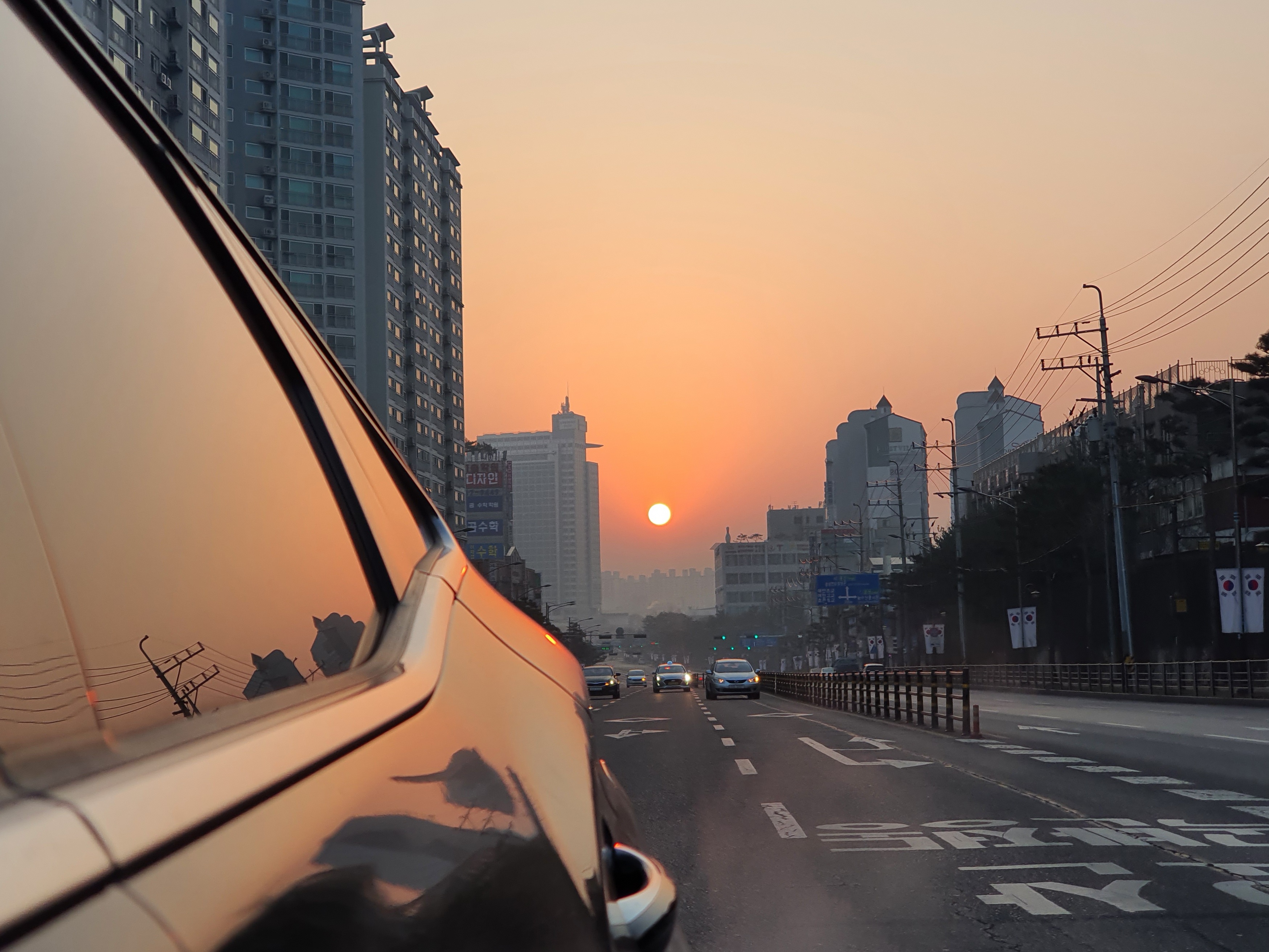 시화방조제 출조전에 레드펄스 시화점에 이벤트 상품을 수령하여야 했기에, 7시가 넘은 시간에 뜨는 해를 보며 출발을 합니다.