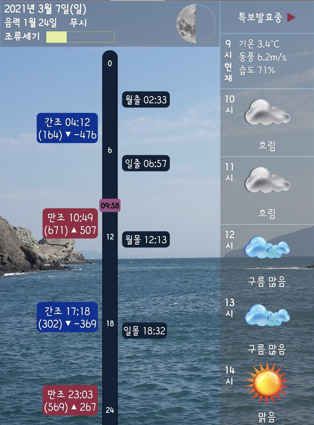 □ 바다상황 : 바람 3단에서 1단 이하로 변화, 파도 조금