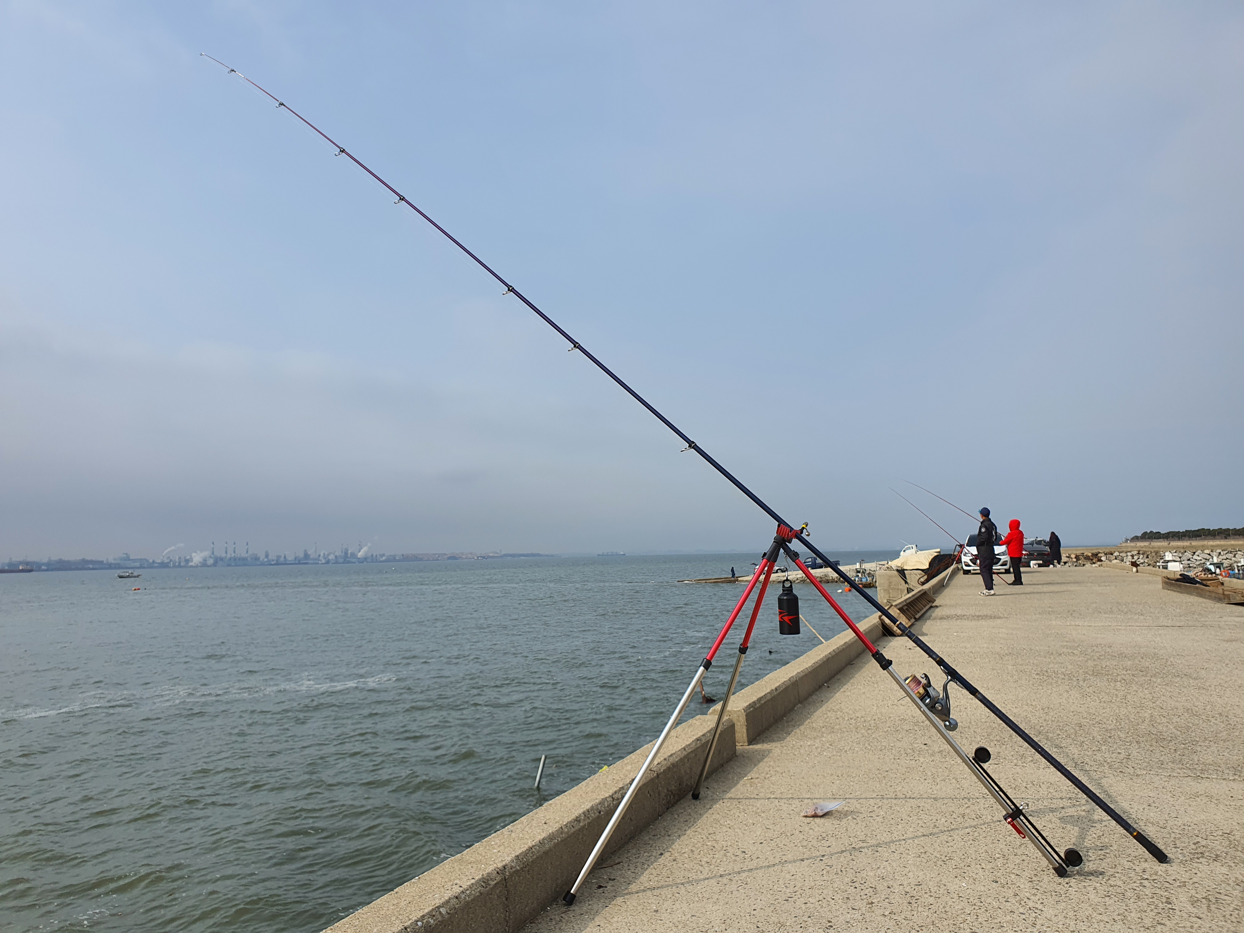 낚시대를 펼치고 나서 바로 도리와 그 지인이 와서 각각 단포로 시작을 합니다.