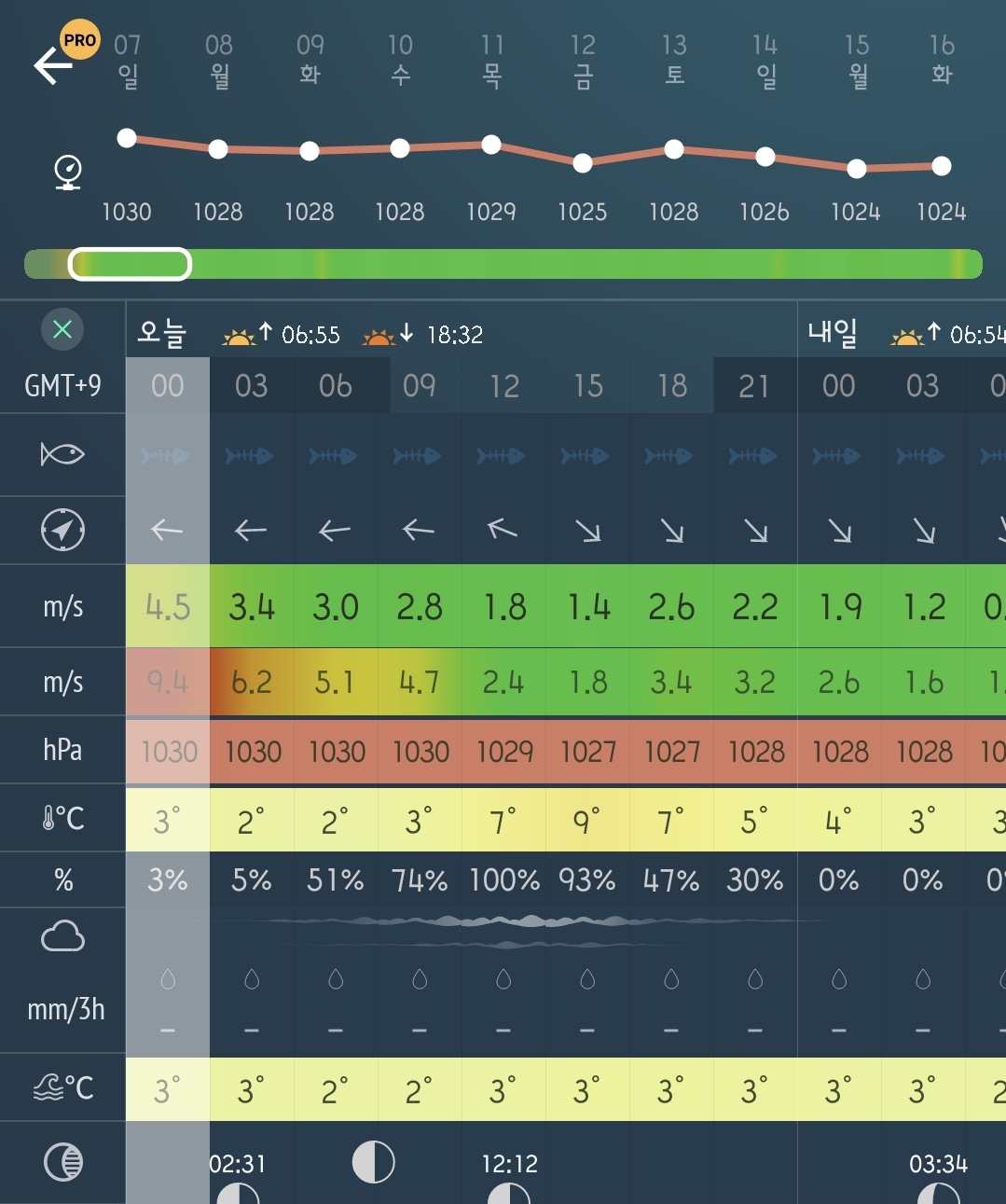 □ 바다상황 : 바람 3단에서 1단 이하로 변화, 파도 조금