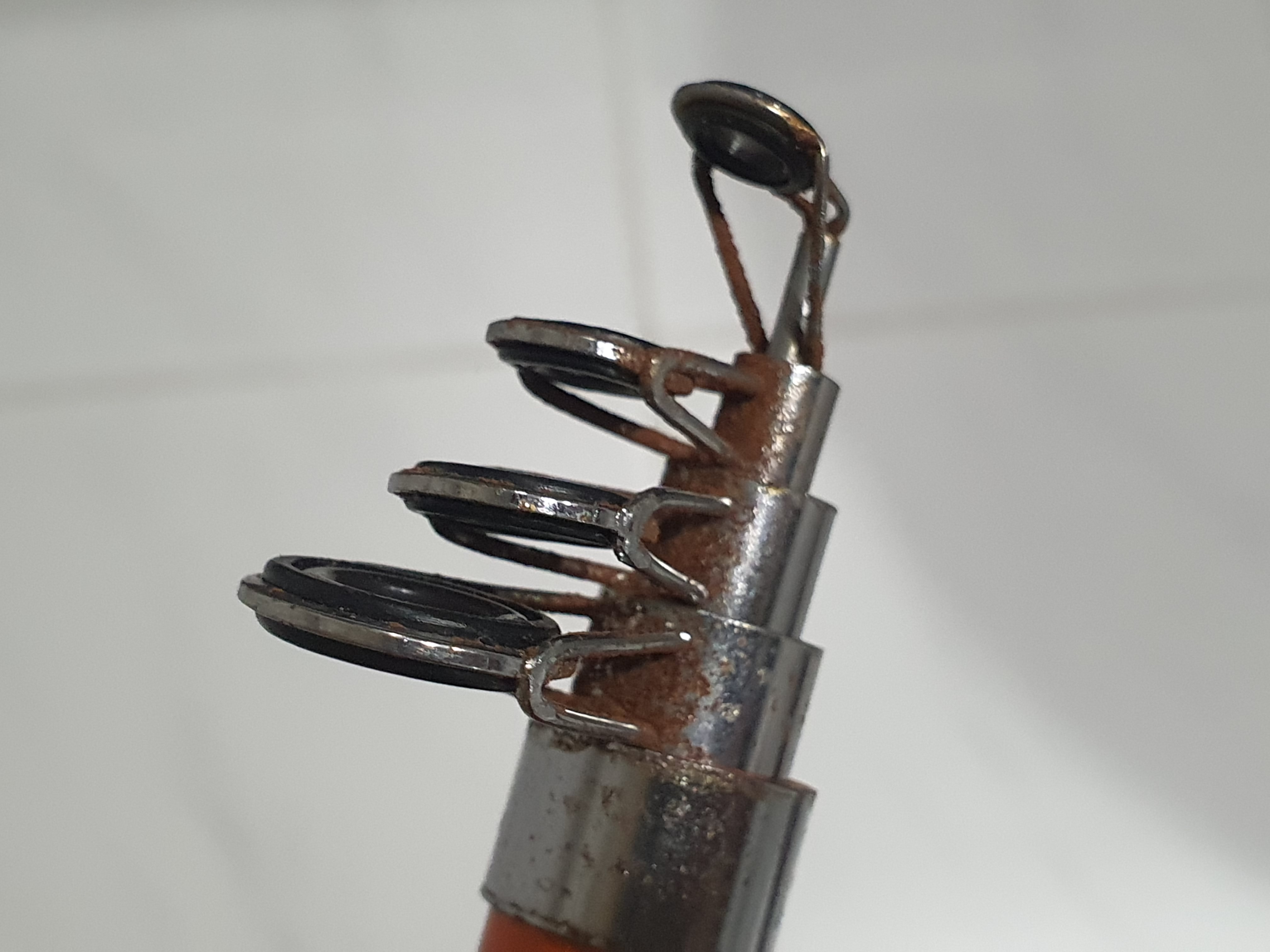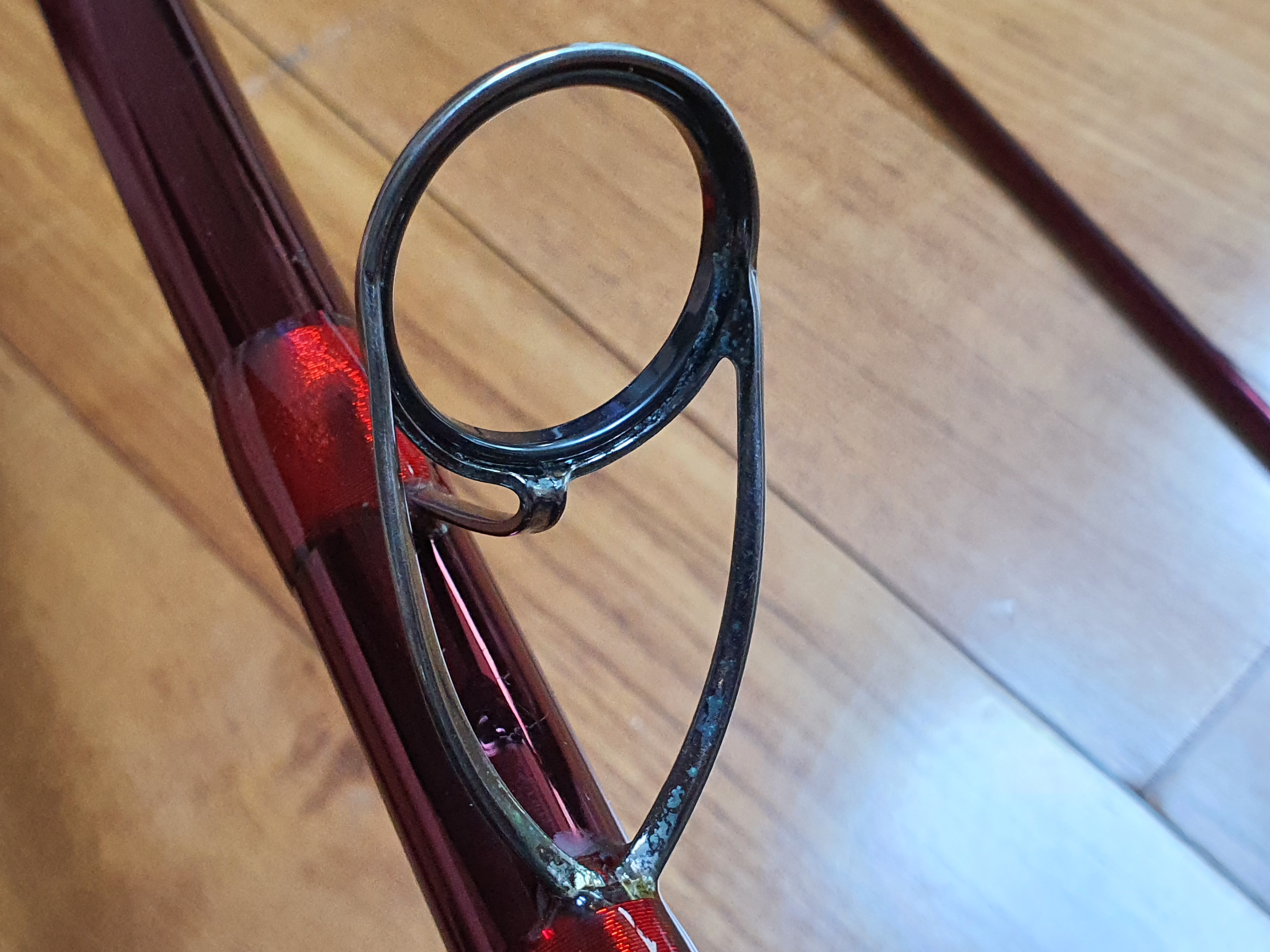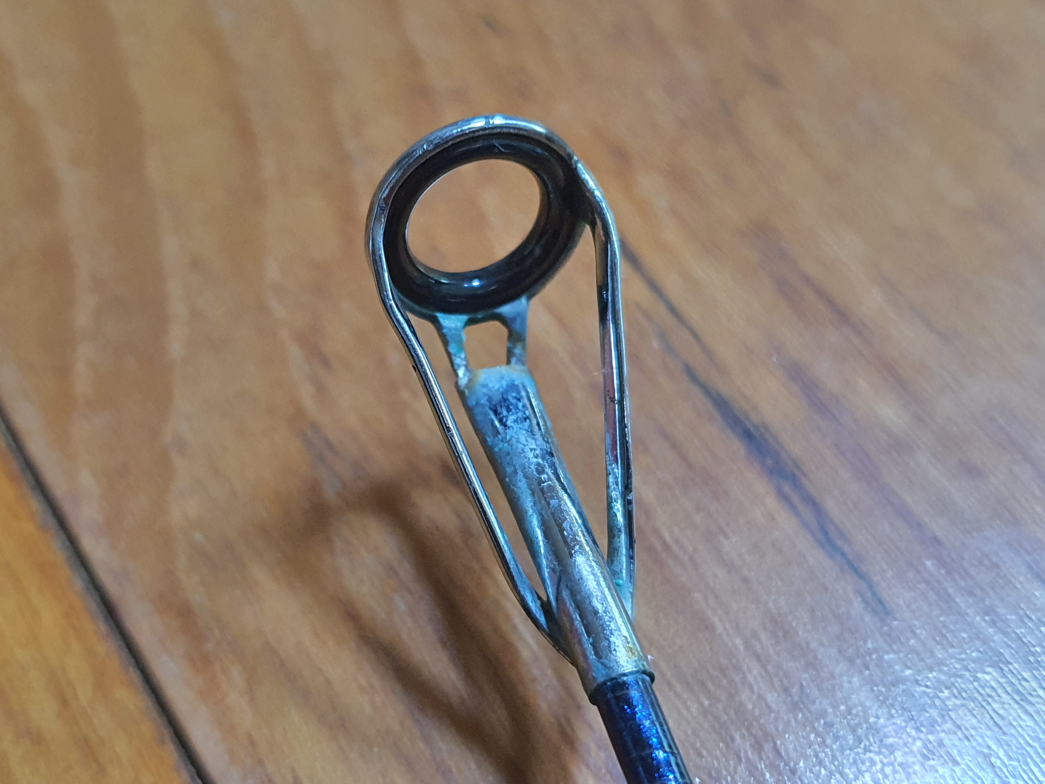 낚시대가 조금씩 늘어나면서, 겨울시즌으로 출조가 뜸해져 시즌내내 사용하던 낚시대를 제대로 정비하지 않고 보관하다가 우연히 살펴보니 가이드에 청녹색으로 녹이 쓸어 있는 것을 발견하였네요.