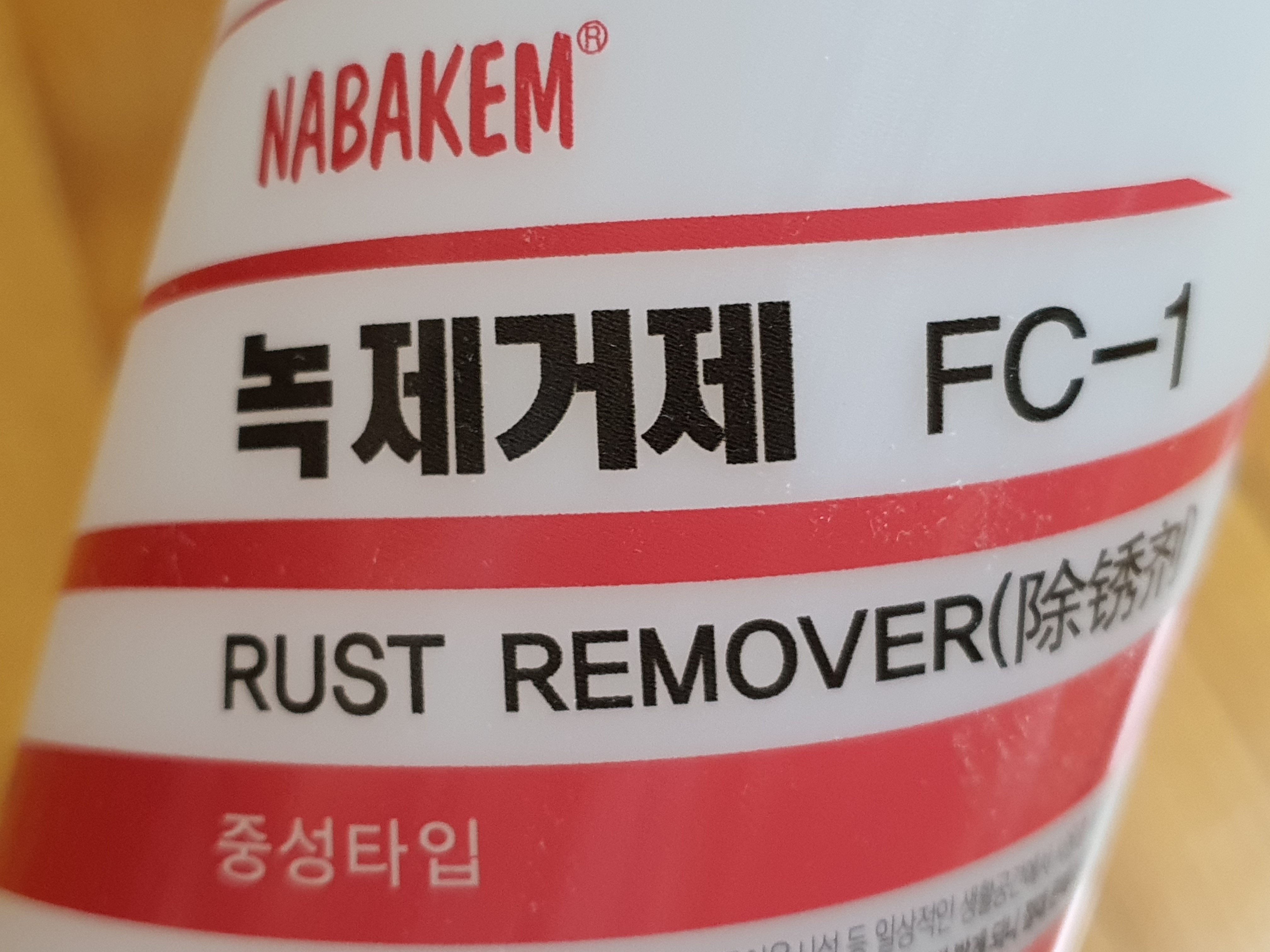 꼭 FC-1이 아니더라도 중성타입의 녹제거제를 사용해도 무방합니다. 필자가 사용한 제품은 나바켐 녹제거제 FC-1 중성타입이네요.