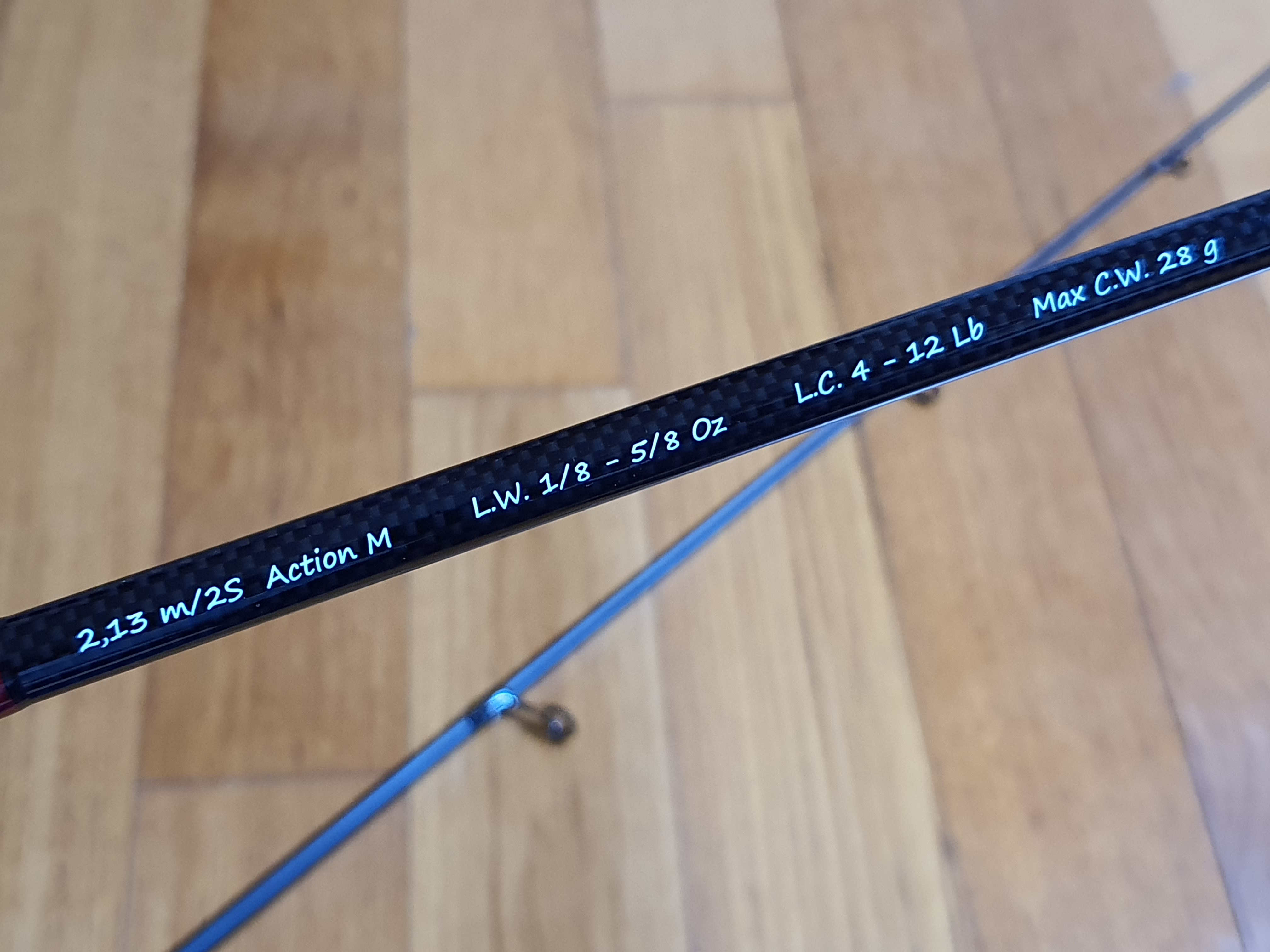 허용무게 1/8~5/8oz (7.1~17.75g)이지만, 1oz 무게도 캐스팅해도 아직 큰 무리가 없어보입니다. 추천라인은 4~12LB (1.5호~4호)로 되어 있는데, 전 1호 8합사를 같이 사용중이네요.