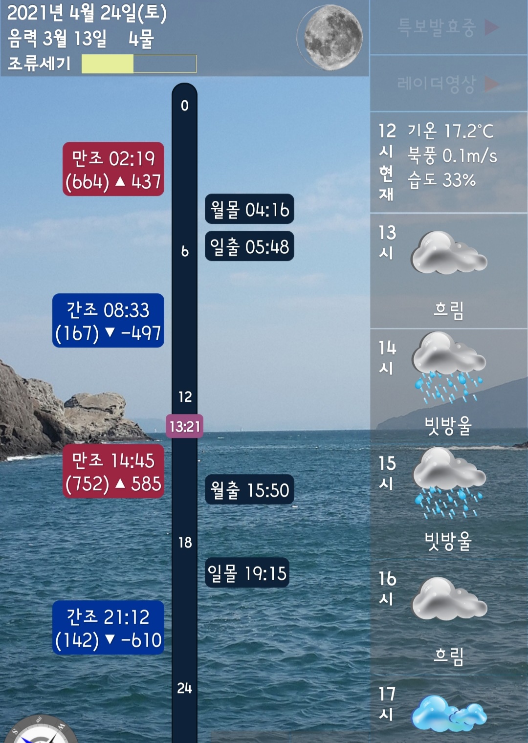 오랜만에 바다로 출조를 해 봤습니다. 상황이 여의치 않기도 하였지만, 매 주말마다 기상 상태가 좋지 않아 출조를 포기했얐는데요. 이번에도 그다지 좋지는 않았지만, 도리 아우 덕분에 편안히 가까운 망둥어 포인트에서 힐링 할 수 있었네요. 물때도 4물때라 나쁘지 않은 물때였고, 만조 2시45분의 2시간전인 2시30분경에 도착 했네요.