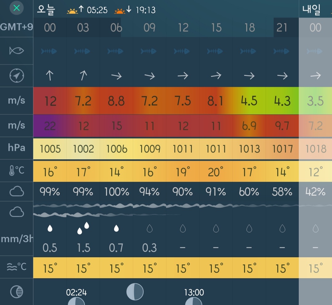 물때도 1물이라 고기 입질이 별로 일 듯 하지만, 물때는 그리 고려하지 않았지만, 무엇보다도 바람소식이 돌풍에 강풍이라는 문제로 출조 고민이 생기더군요. 그러나, 전국적인 강풍 소식이고, 그나마 서풍이라는 것을 위안삼아 출발합니다.