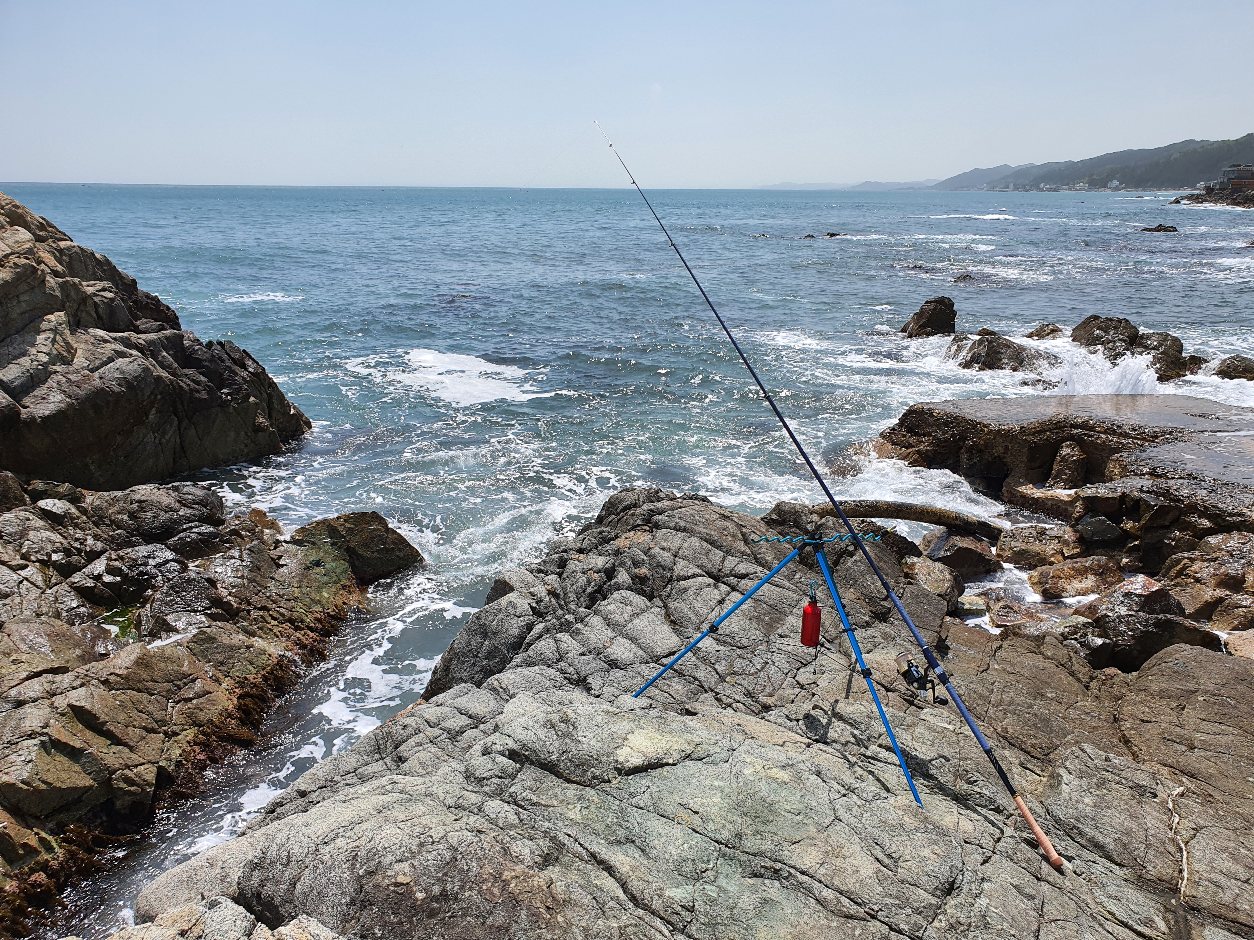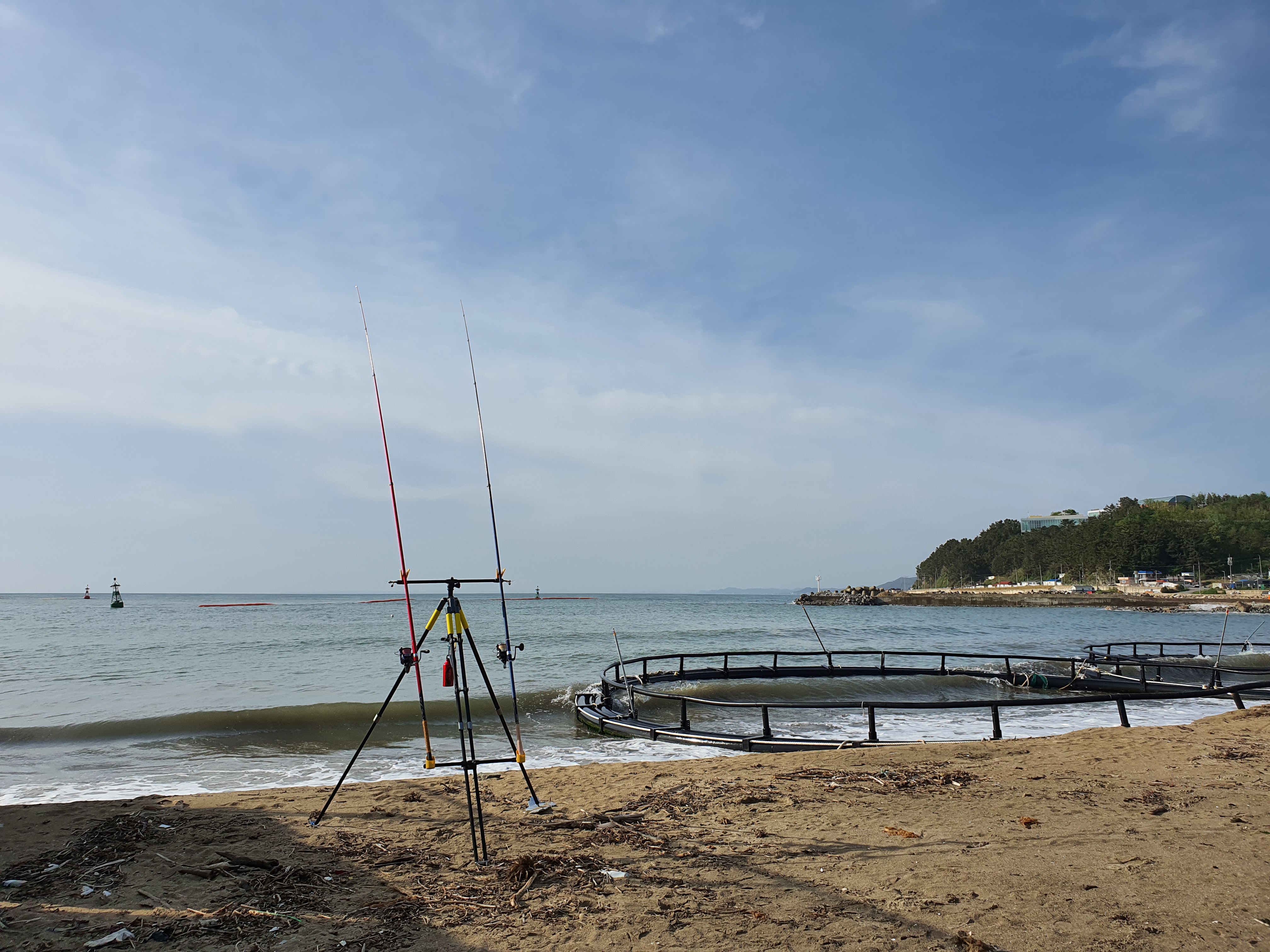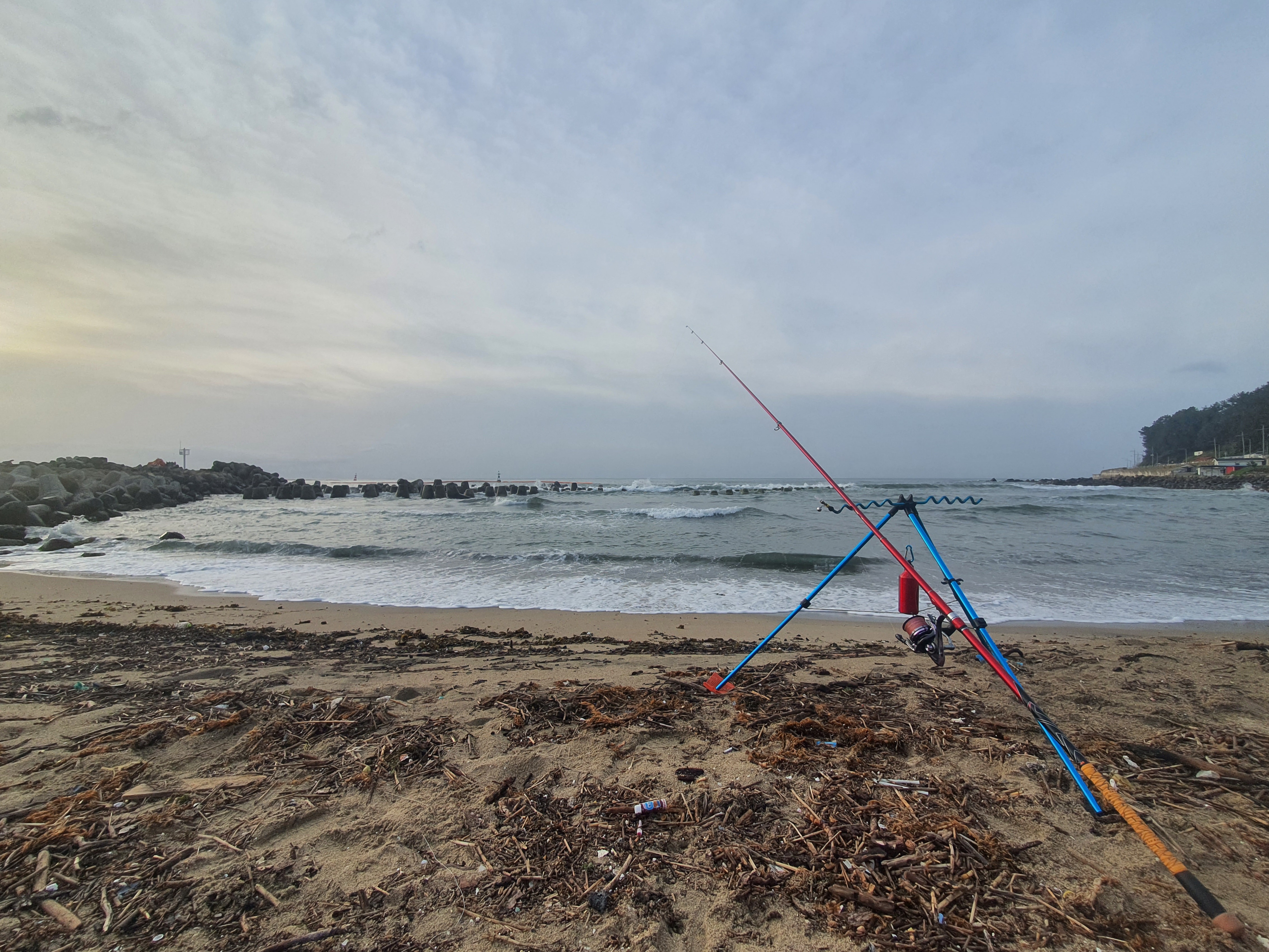 내항임에도 불구하고 파도로 입질 파악이 어려움이 있어, 팀블랙 서프스탠드로 로드를 높게 세워보았는데요. 파도의 영향을 덜 받아 로드 입질 파악이 좋아지더군요. 동해에서 왜 샌드폴이나 서프스탠드를 사용하는지 이해가 되네요.