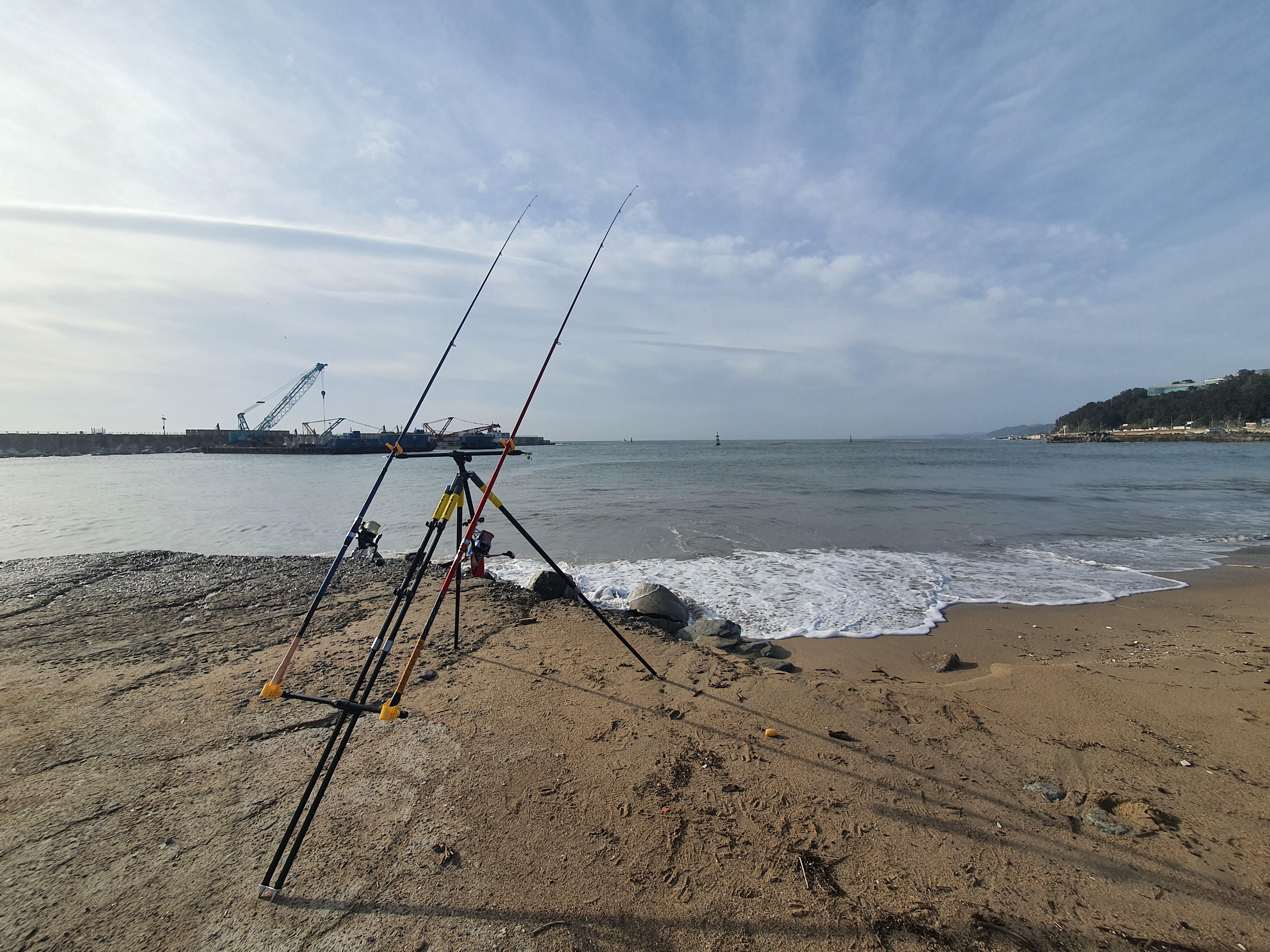 내항임에도 불구하고 파도로 입질 파악이 어려움이 있어, 팀블랙 서프스탠드로 로드를 높게 세워보았는데요. 파도의 영향을 덜 받아 로드 입질 파악이 좋아지더군요. 동해에서 왜 샌드폴이나 서프스탠드를 사용하는지 이해가 되네요.