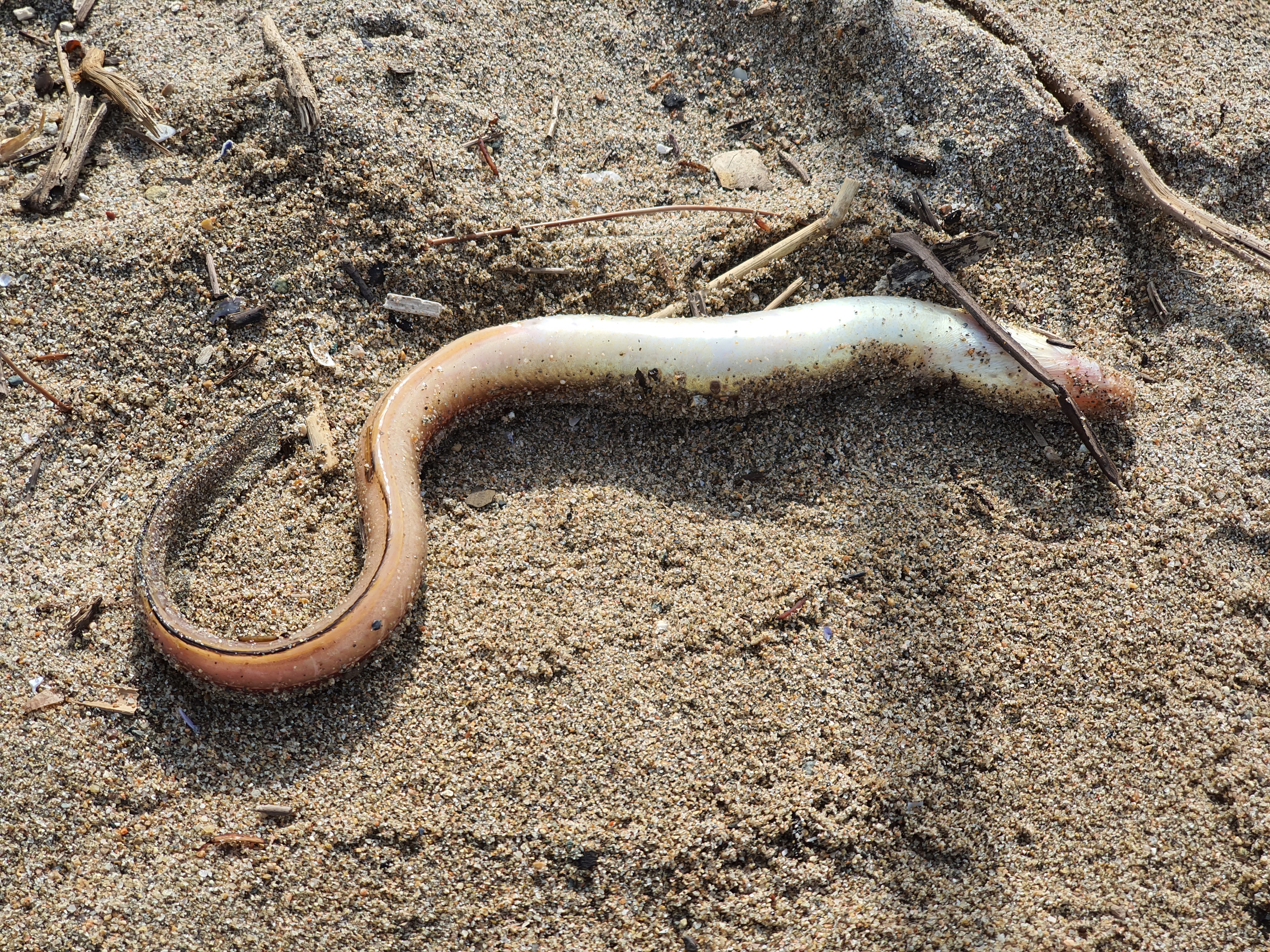 캐스팅 후, 얼마지 않아 입질이 강하지는 않지만 들어옵니다. 이번엔 장어가 올라오네요. 장어도 나오는 포인트이긴 하지만, 이 시간에 네가 거기서 나와!!