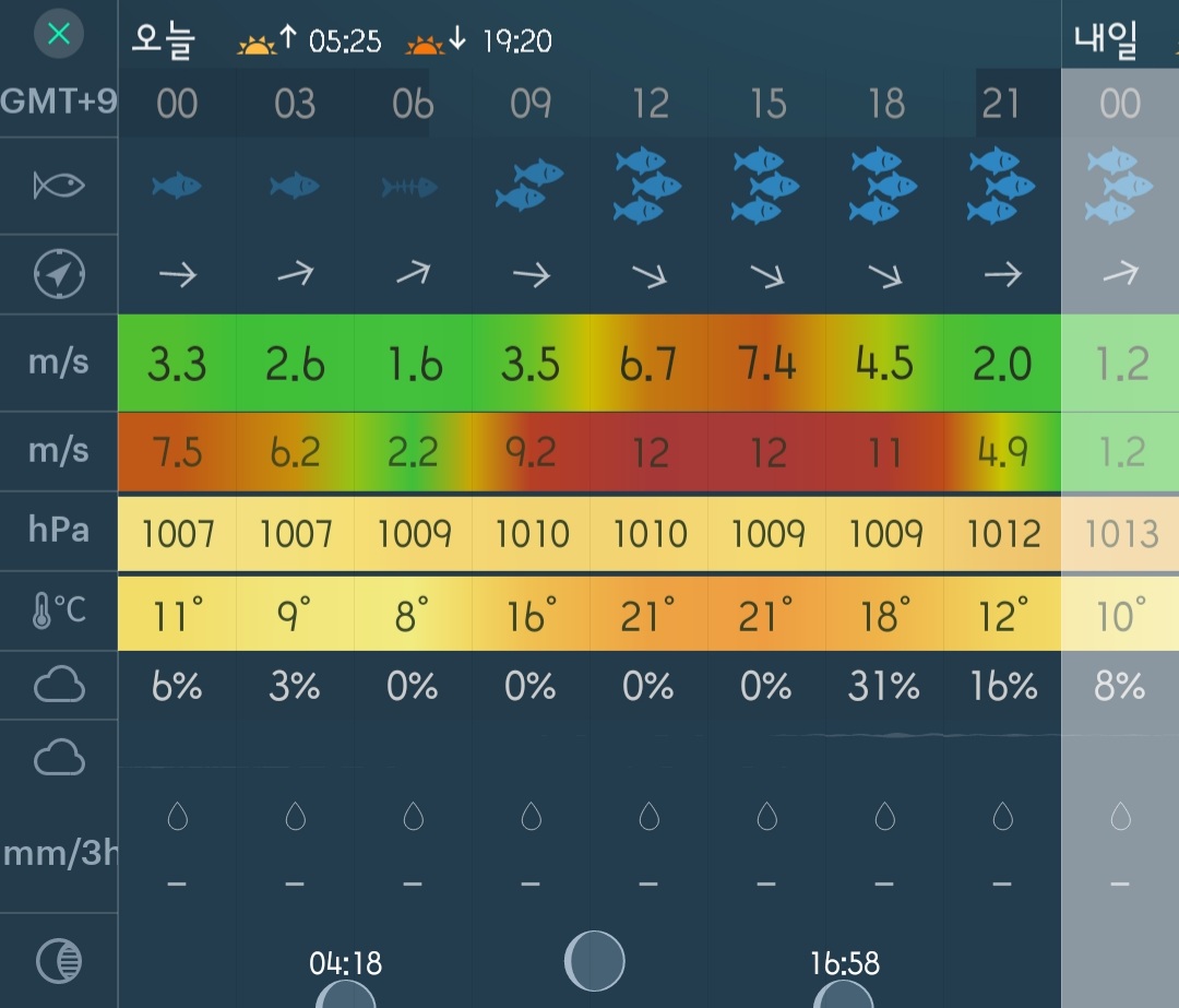 □ 날씨 : 바람 2~6단, 기온 16~21도