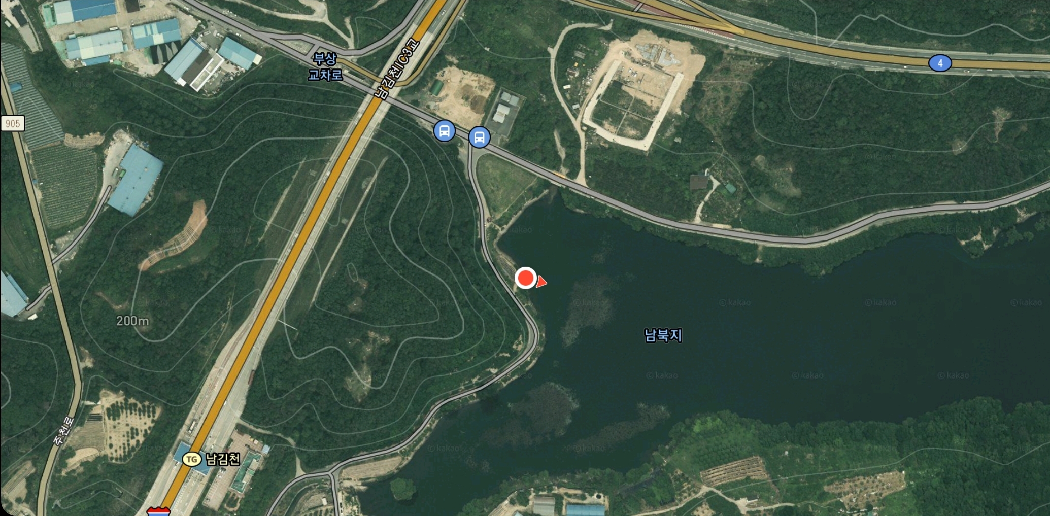 물색은 남북지보다 더 탁한 곳이었지만, 배스가 있기는 한 것인지, 인근 조사님들이 손맛을 보더군요. 저는 남계지 탐색으로 만족하며, 터지는 바람으로 철수합니다.