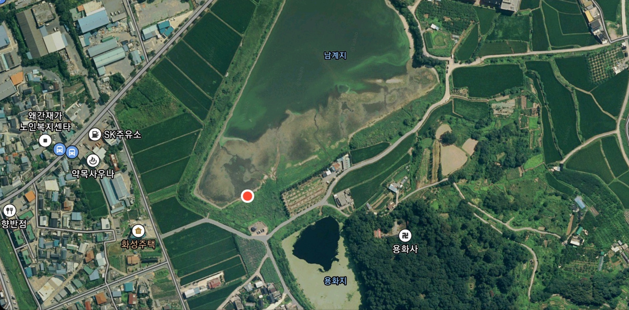 칠곡 남북지에서의 탐색은 접고, 늘 하던 반계교 포인트로 이동하다가 네비게이션에 나타난 남계지를 탐색해 보았는데요. 용화지를 바로 옆에 둔 남계지는 앞서 탐방한 남북지의 1/3정도의 작은 저수지로 보였지만, 접근성이 좋아서 그런지 많은 조사님들이 배스를 노리고 계시더군요. 주차는 남계지와 용화지가 만나는 곳 초입의 정자쪽에 주차할 공간에 있으며, 중간중간 차량이 지나갈 수 있도록 주차 가능합니다. 먼저 용화지를 올랐지만, 터지는 바람은 둘째치고, 저수지에 수초가 엄청나게 자라고 있어 던질 엄두가 나지 않아 곧바로 남계지로 이동합니다.