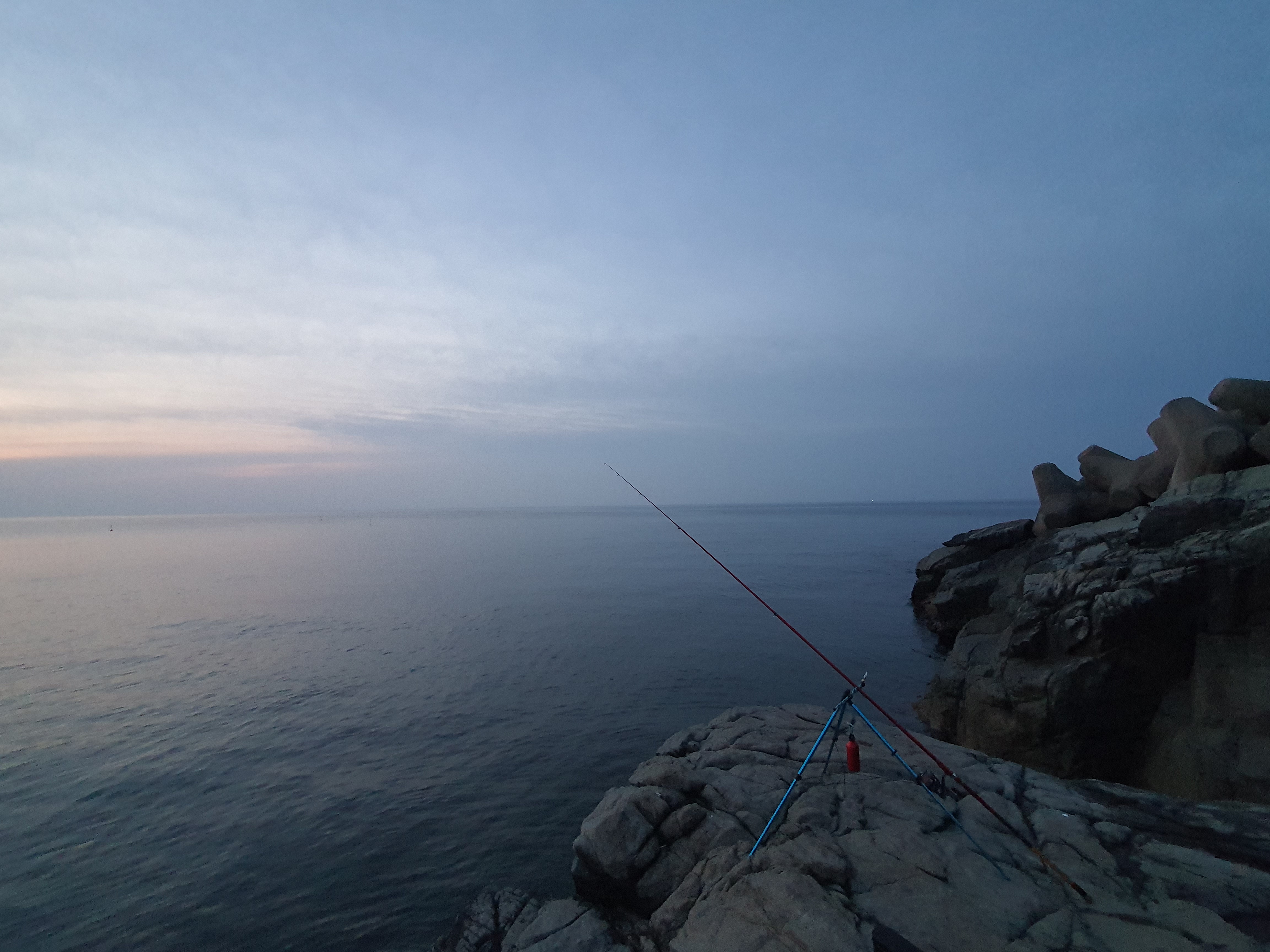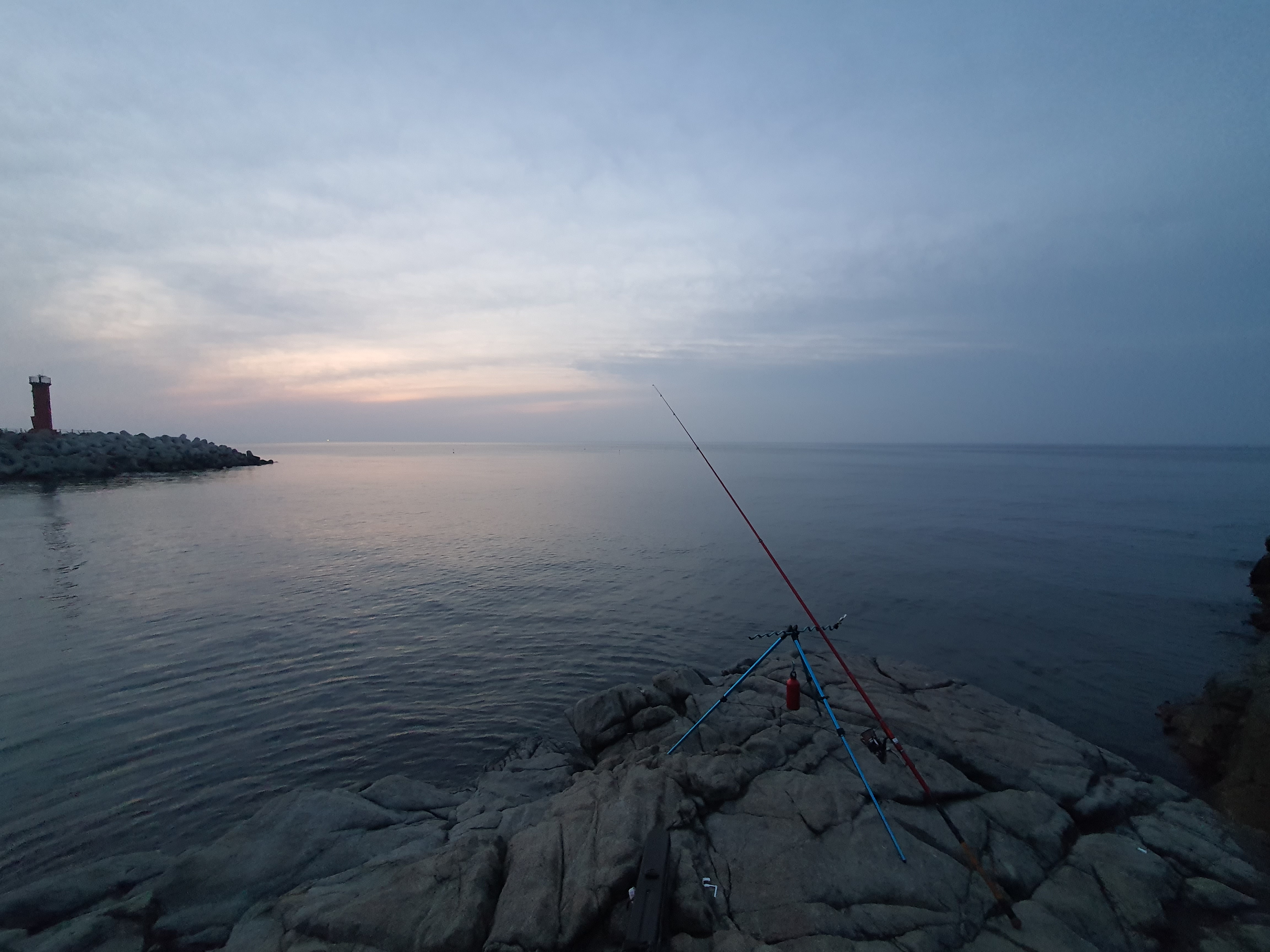 해 뜨기 전이기는 하지만, 밝아오는 여명 아래에서 채비를 준비해 캐스팅을 해 봅니다. 언제나 그렇듯 바다를 보는 즐거움과 캐스팅의 상쾌함은 힐링을 더해 줍니다.