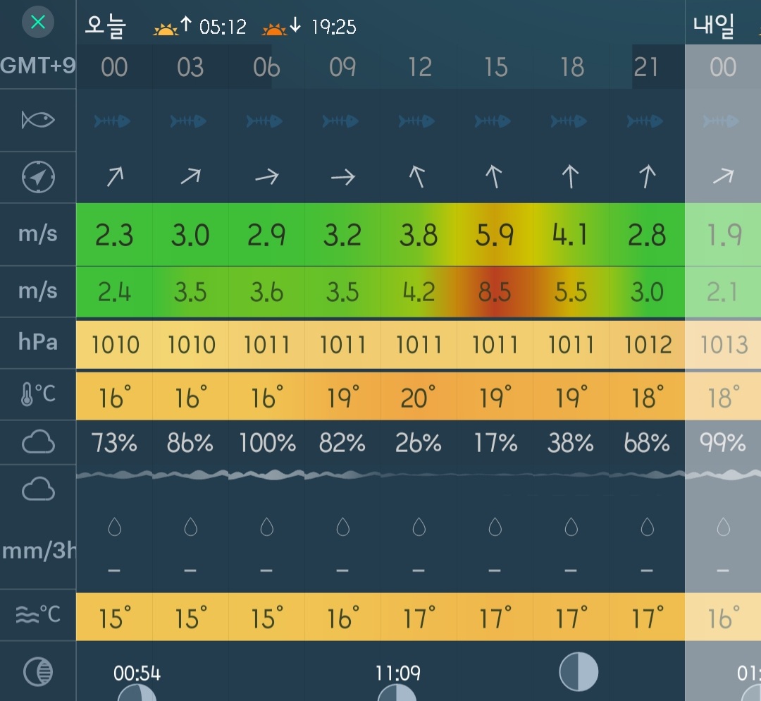 다행히 바람은 오후에 잠시 터지는 예보라 낚시를 즐기기에는 무리가 없을거라 예상했지만, 낮기온이 30도에 육박하는 더위가 복병일거라 생각을 못했네요.