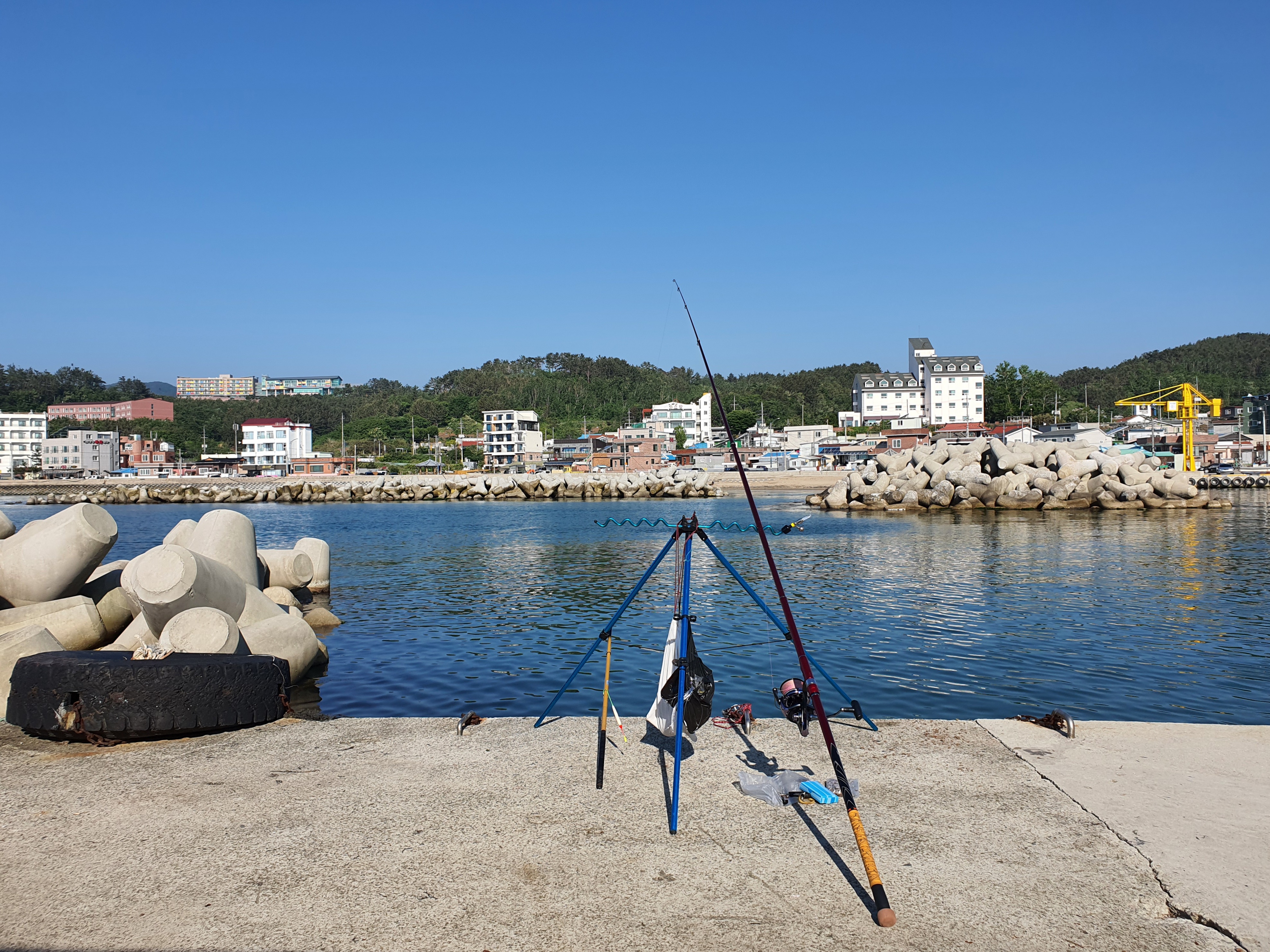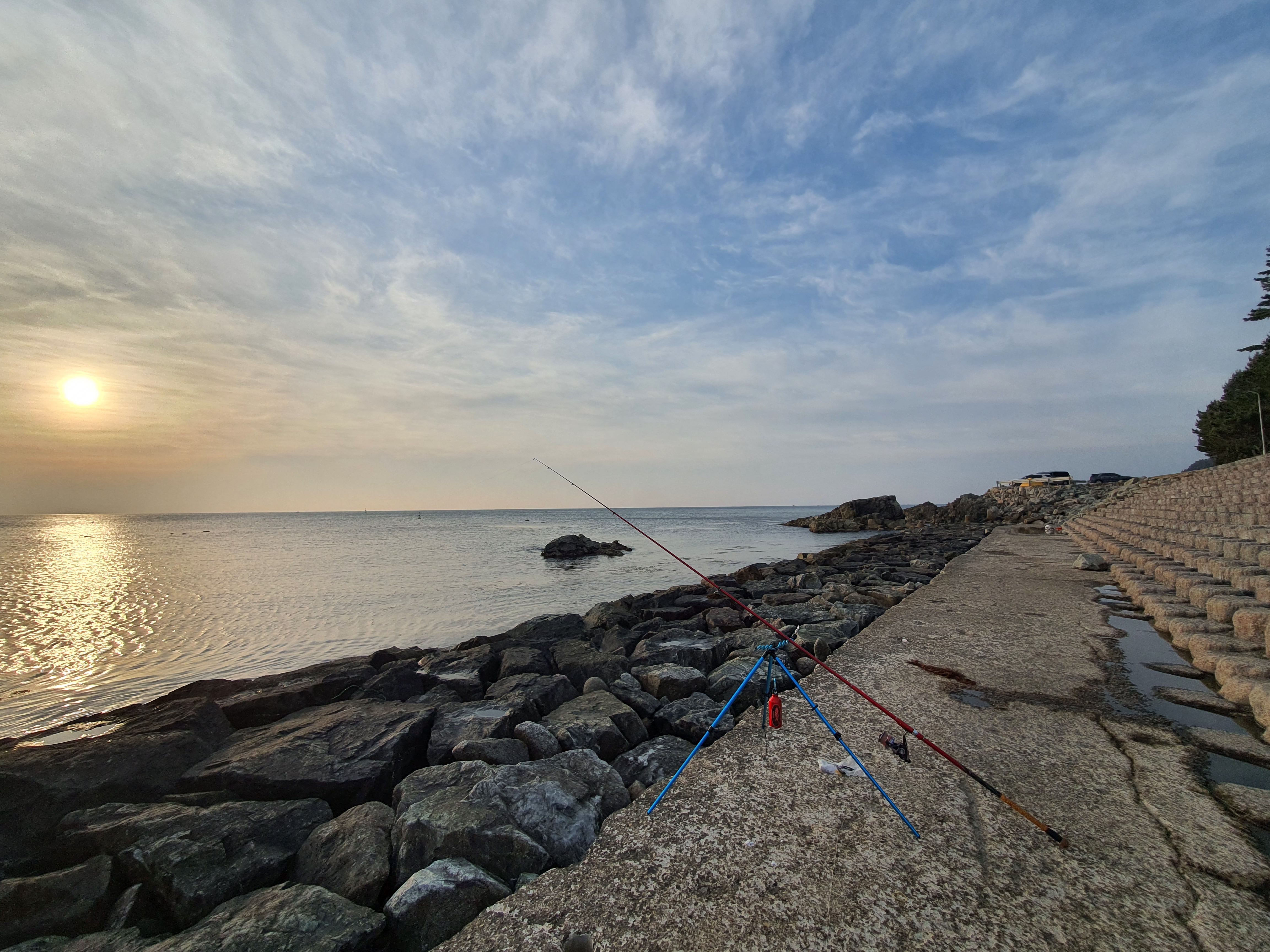 다시 장비를 정리하고, 다음 포인트로 이동해 봅니다. 중간에 방파제까지 차를 진입해서 캠낚을 즐길수 있는 포인트도 있었지만, 자리가 없기에 더 내려가 삼사항 삼사방파제로 들어가 봅니다. 해가 이미 높아지고 있어 햇살이 따가워지기 시작하더군요.