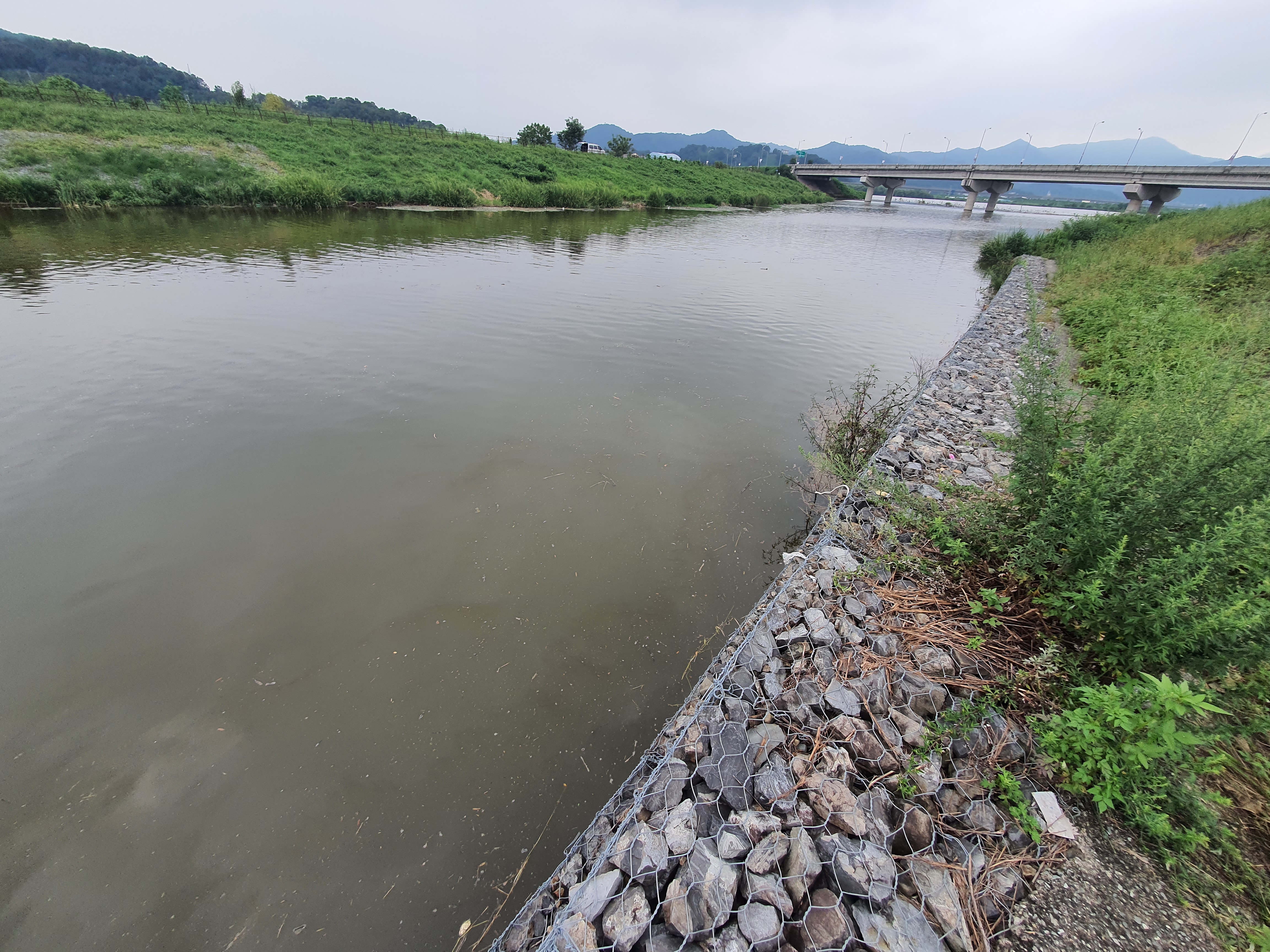 8월 마지막 날 오전 근무만 마치고 잠시 시간을 내어 낙동강 지류인 구미 인근 칠곡 반지천으로 배스 짬낚을 해 보았는데요. 오랜만에 찾은 반지천은 한동안 지속된 비로 인한 것인지 흙탕물로 누렇게 흐르고 있더군요. 다행히 바람도 거의 없고, 무덥지 않은 날씨로 배스 짬낚을 시작해 봅니다.