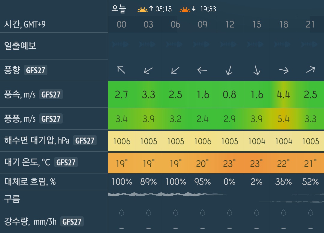 기상예보로는 하루종일 흐림이어서 낮에 낚시하기에는 나름 쾌적하겠다고 생각하고 오전 만조타임에 맞추어 출발 합니다.