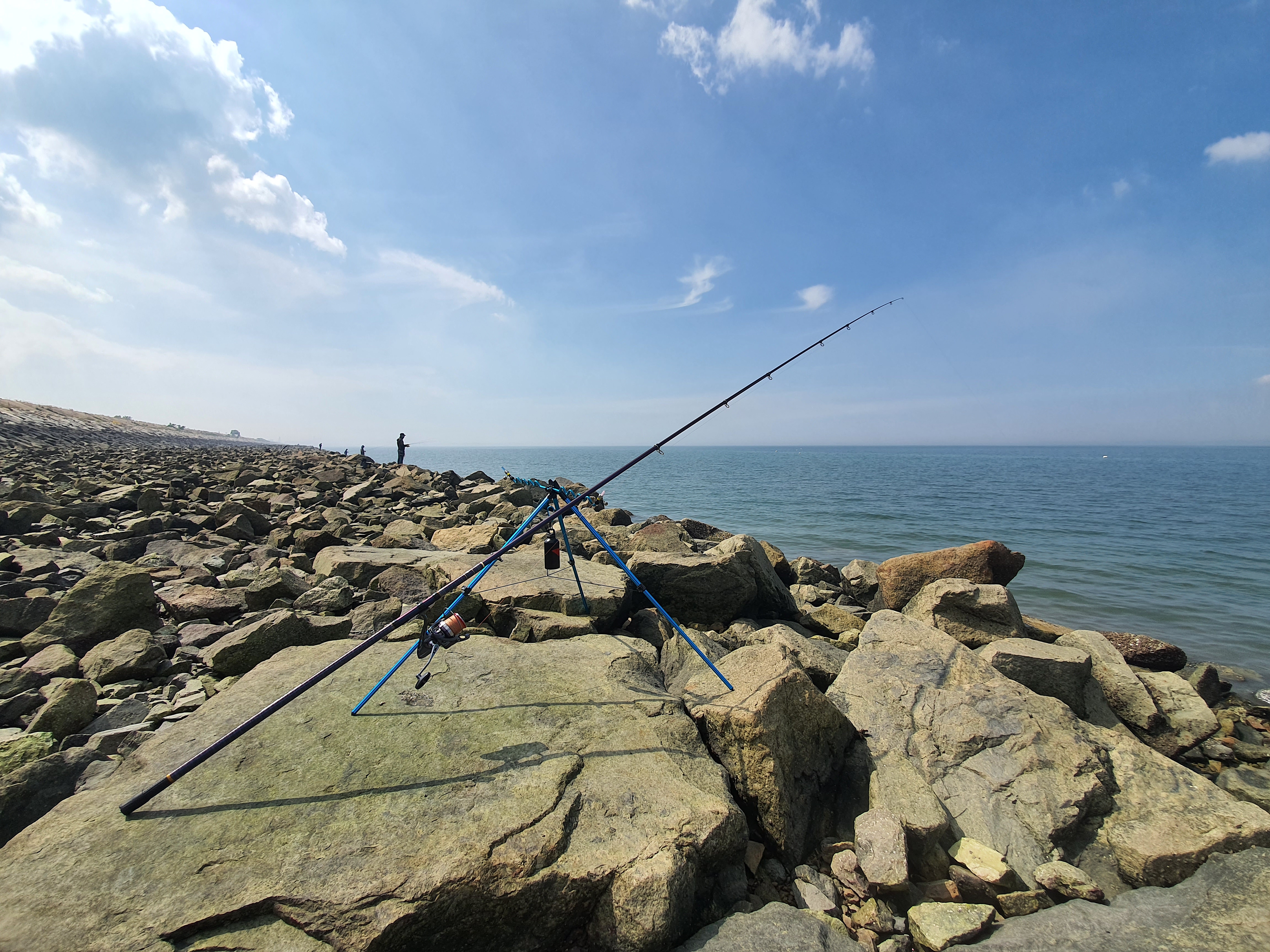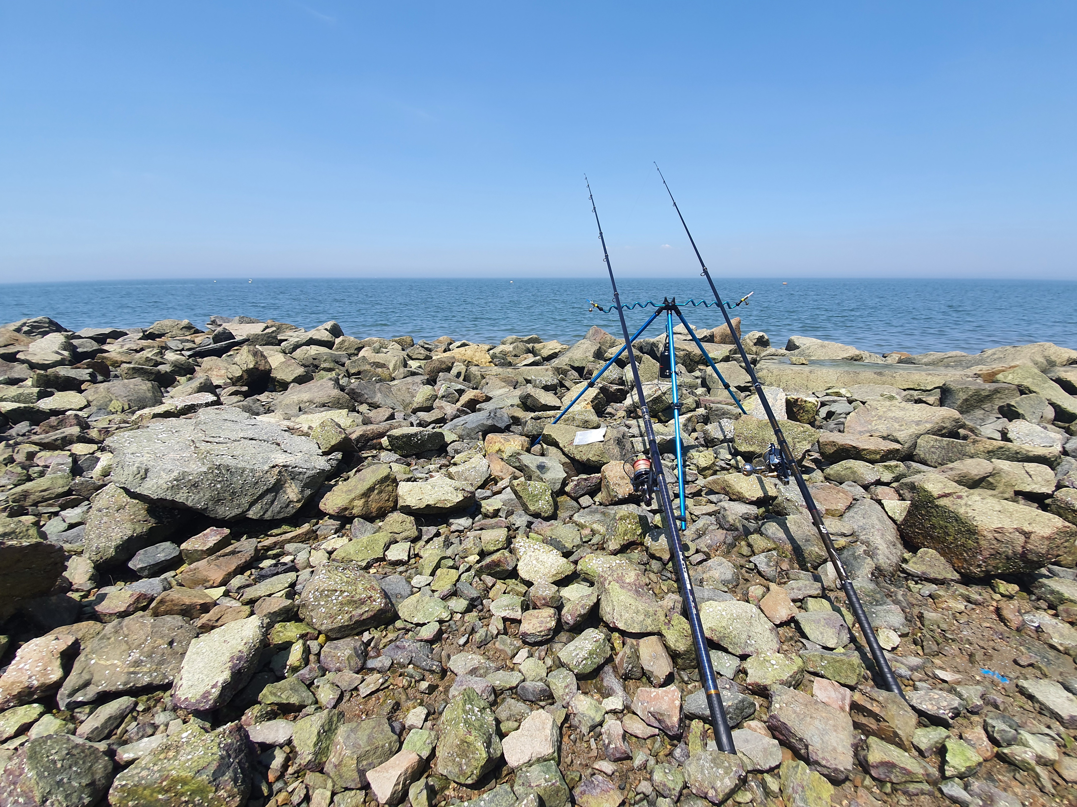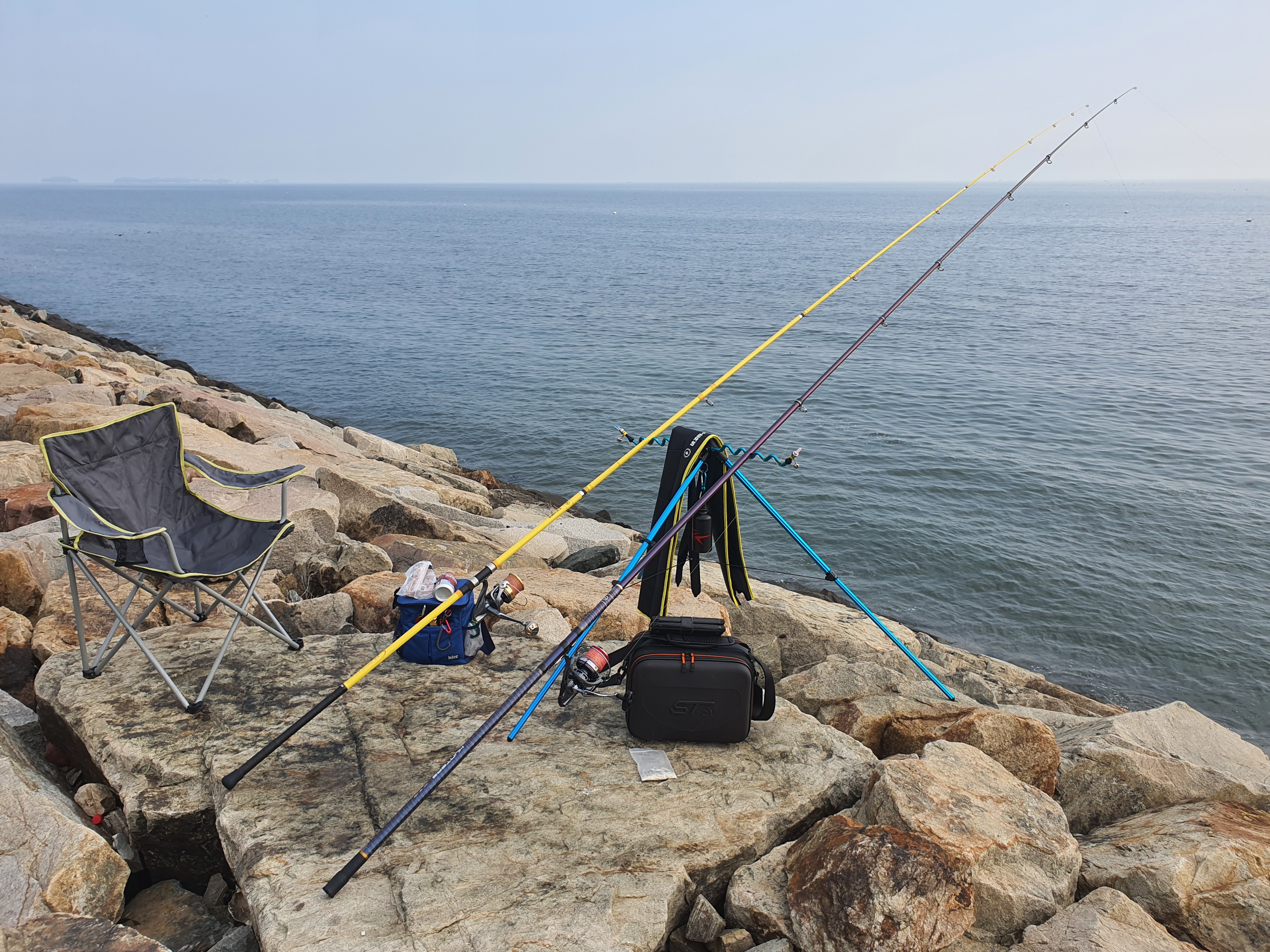이때쯤 낚시를 하면서 인연이 된 생인이 커피와 함께 찾아옵니다. 이런저런 이야기를 하면서 2단석축 아래로 내려가 쟘시 원투를 즐깁니다.