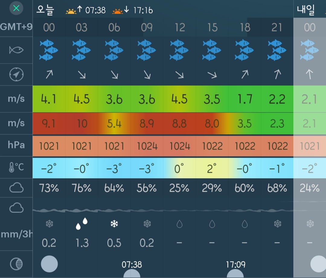□ 날씨 : 바람 2단 이하, 영도 2도(낮기온), 맑음
