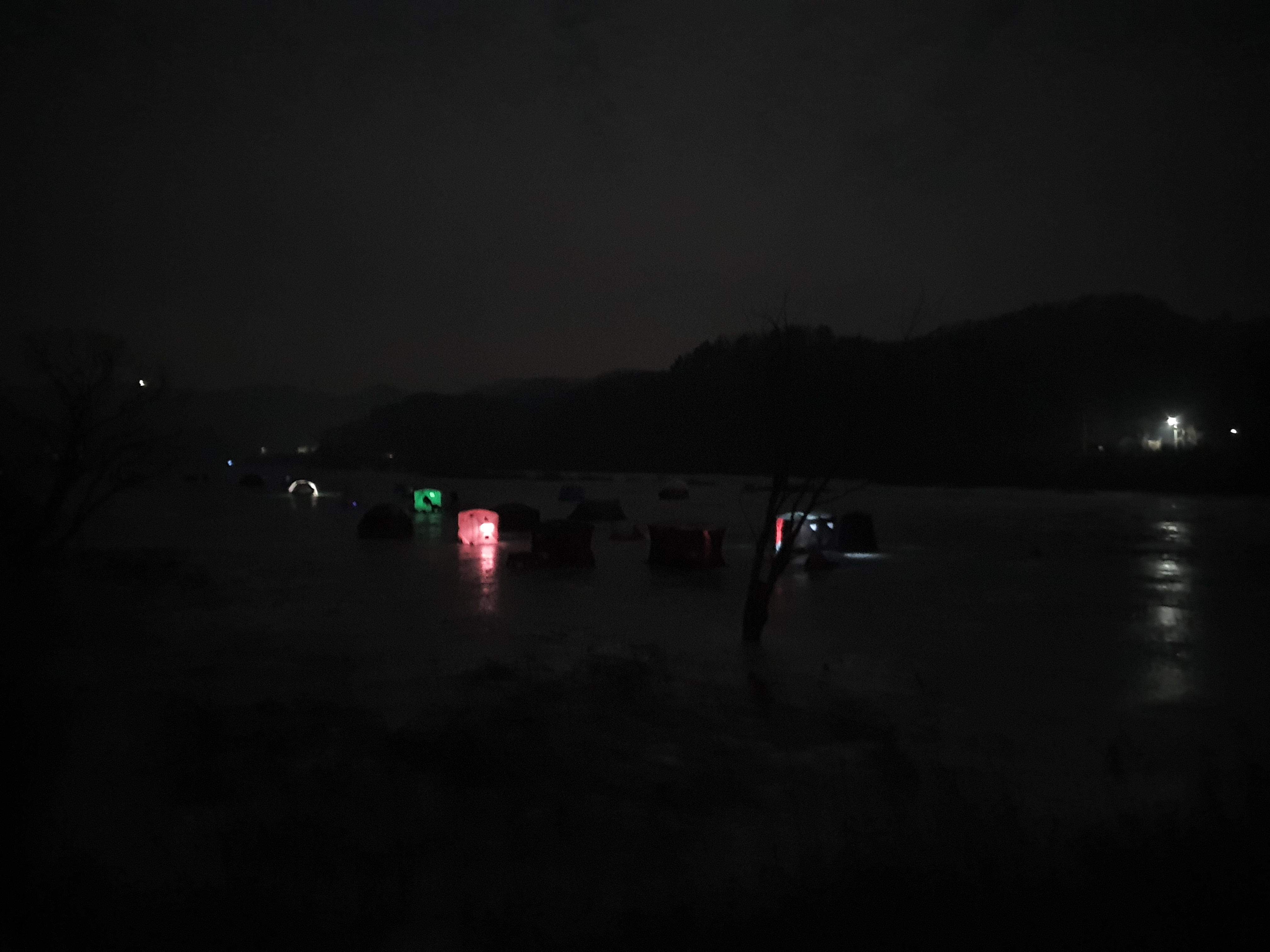 7시부터는 느나수준으로 나온다는 소문이 있었는데, 7~9시까지는 입질이 활발하여 채비를 내리면 빙어가 입질과 함께 물려 올라오더군요.