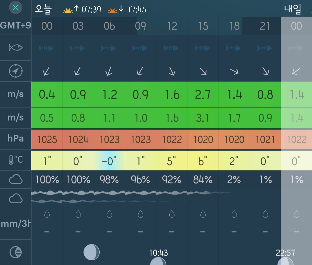□ 날씨 : 바람 1단 이하, 온도 0~5도, 맑음