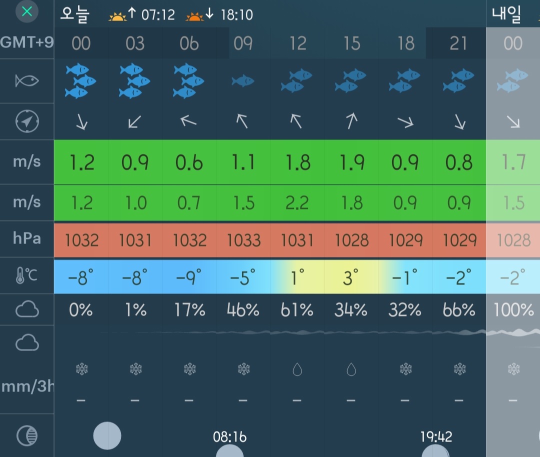 □ 날씨 : 바람 1단 이하, 온도 -8 ~ 3도, 맑음