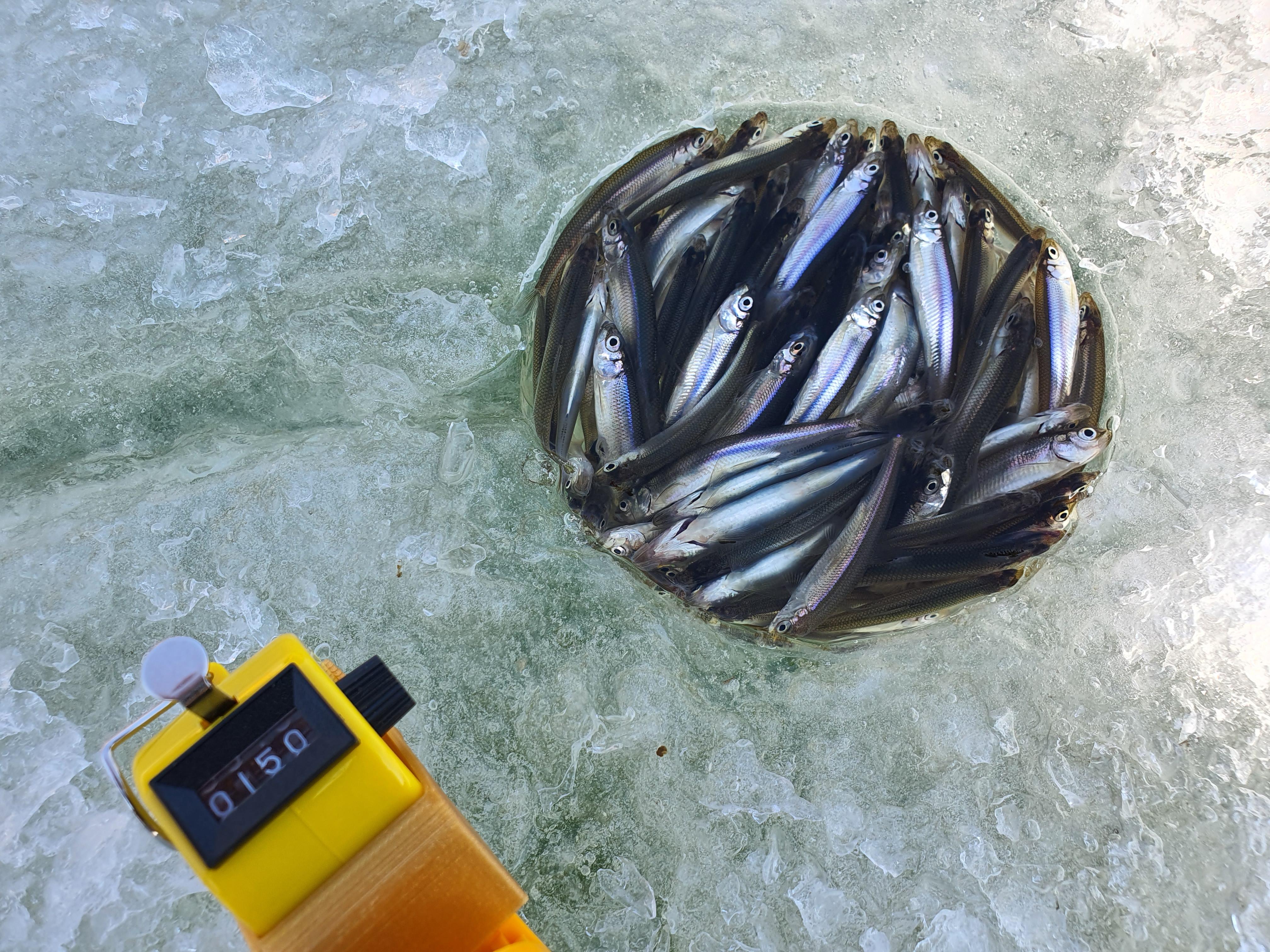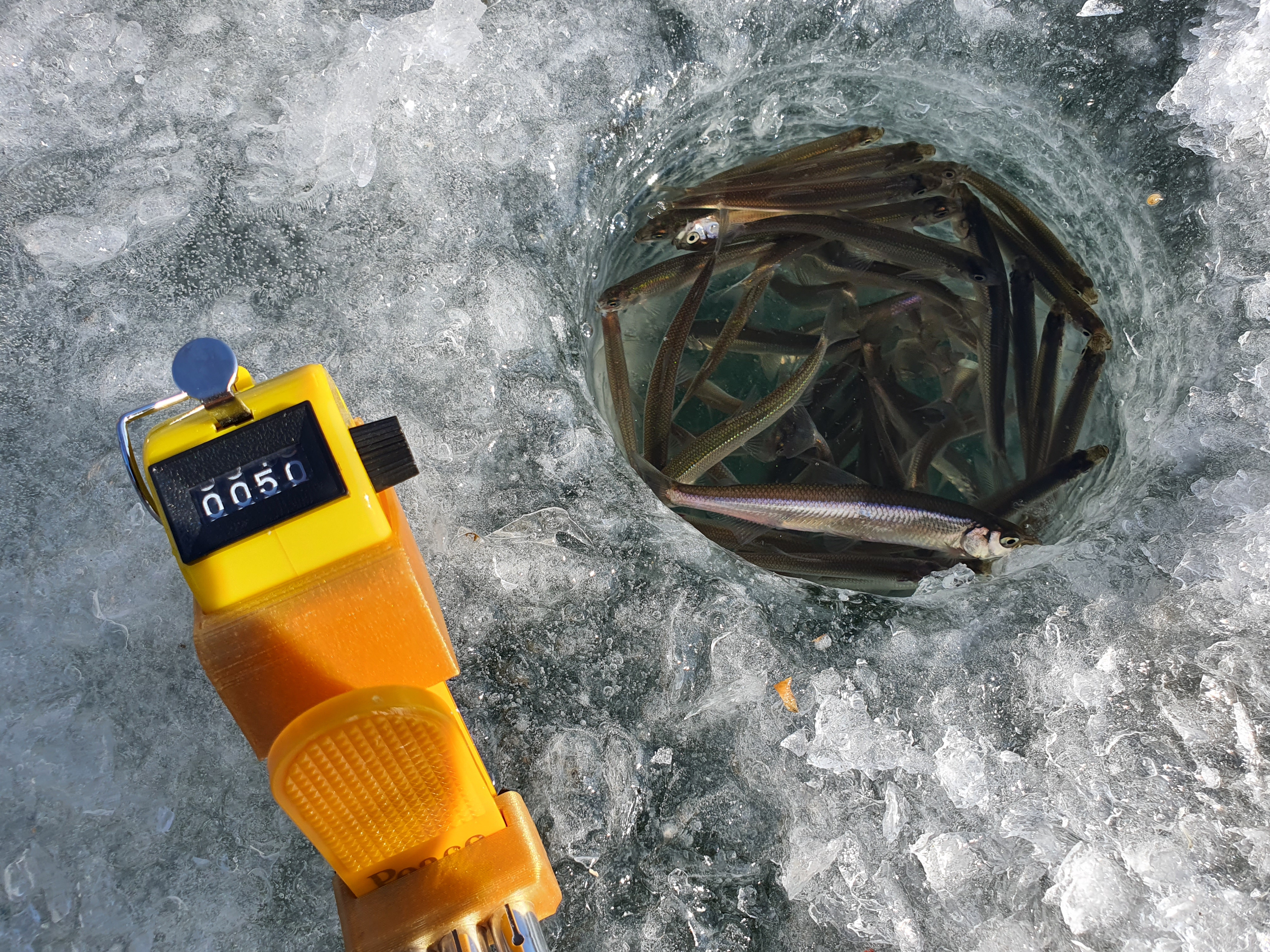 경천호 빙어 사이즈는 다양하네요. 10cm 수준의 큰 빙어도 올라오더군요.