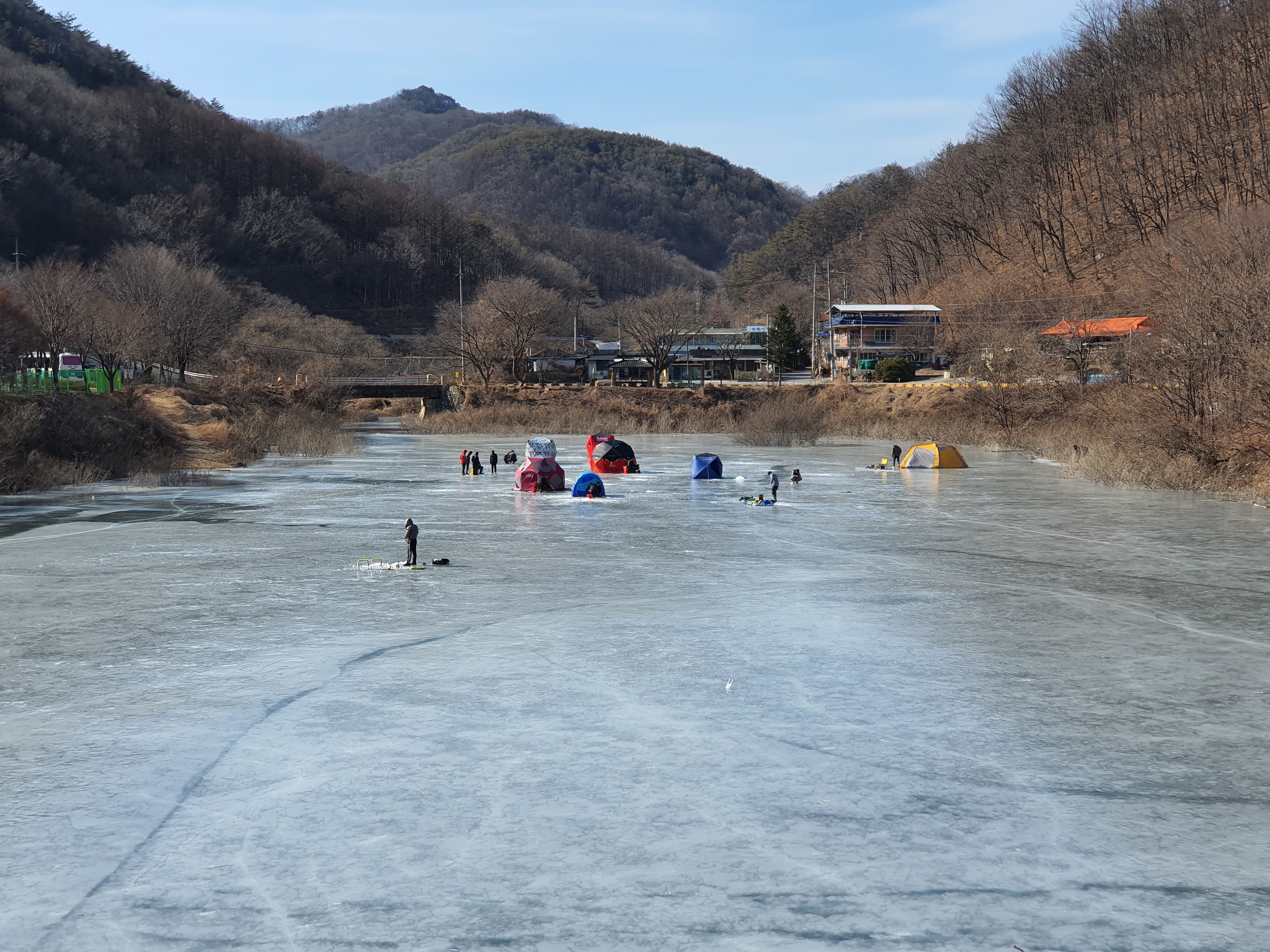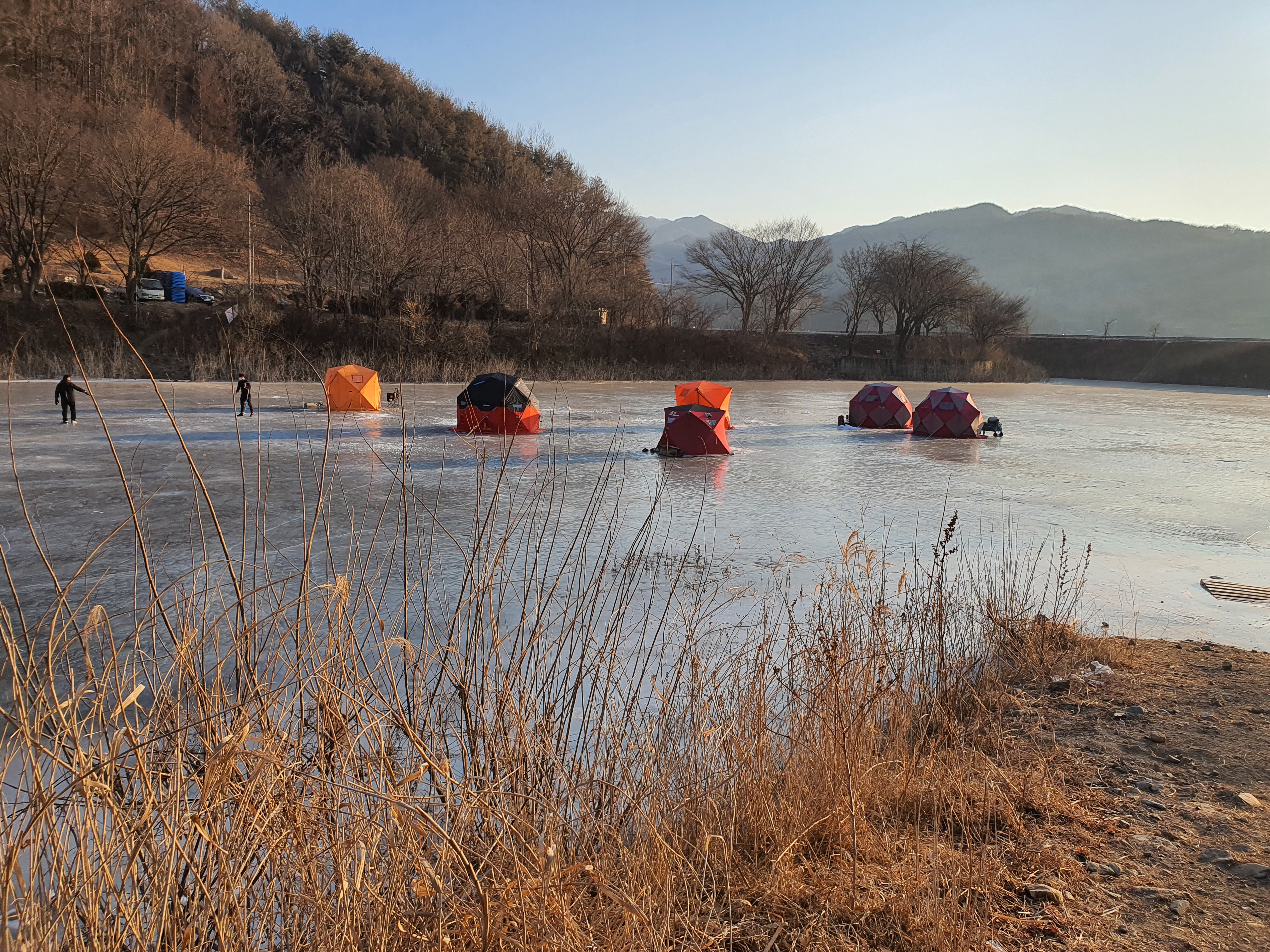 설연휴 후, 날씨가 포근해지면서 해빙기가 시작되는가 했으나, 다시 한파가 찾아와 빙판이 더욱 얼기 시작한 듯 합니다. 그래서 빙판 위 빙어낚시를 다시 한번 더 즐기기 위해 문경에 위치한 경천호를 찾았습니다.