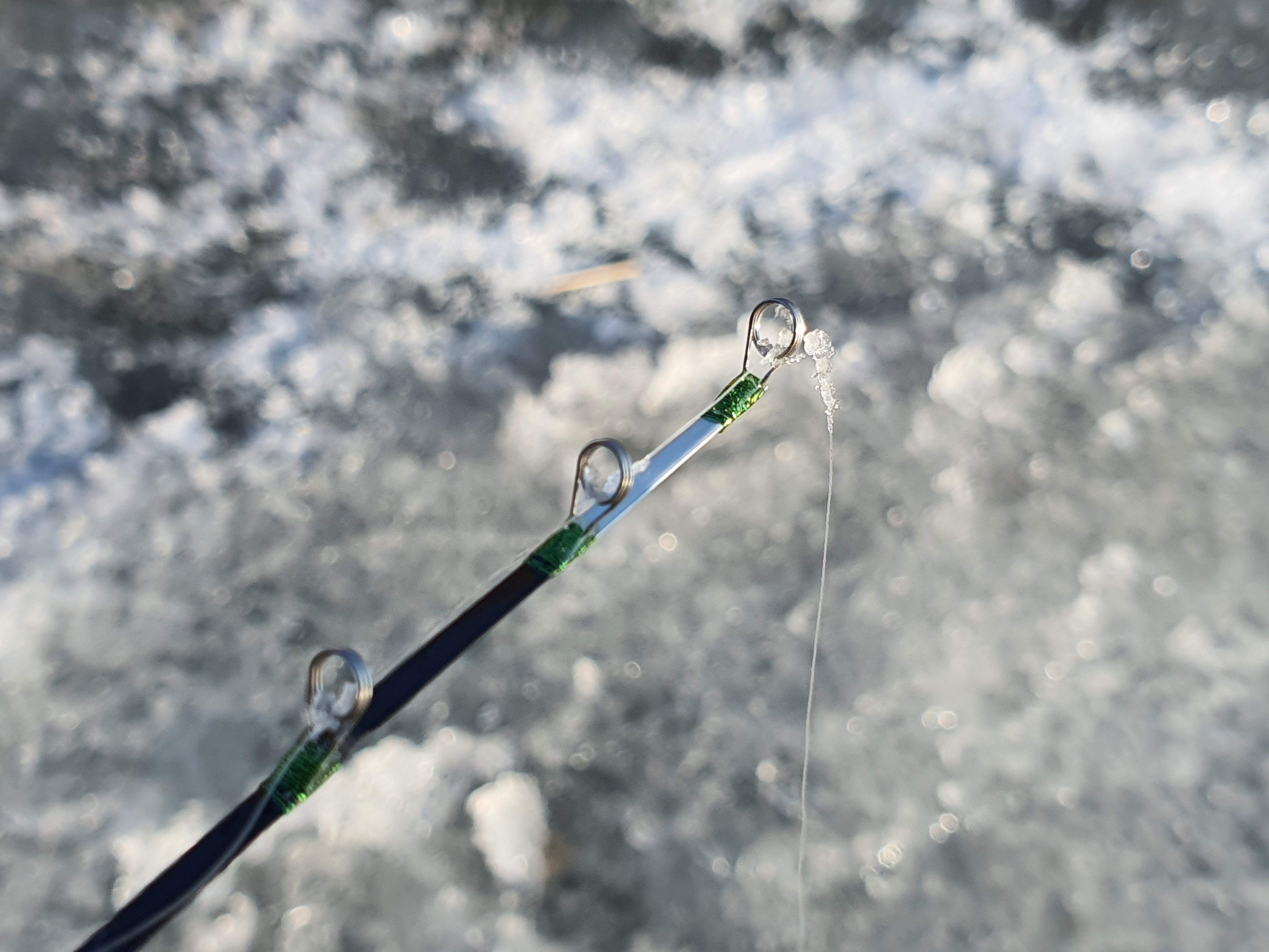 오전 영하의 온도에 노지라 그런지 초리에 계속 얼어 채비를 내리는데 계속 문제가 생깁니다. 초리 가이드가 조금 더 큰 자작 초릿대로 변경을 했네요.