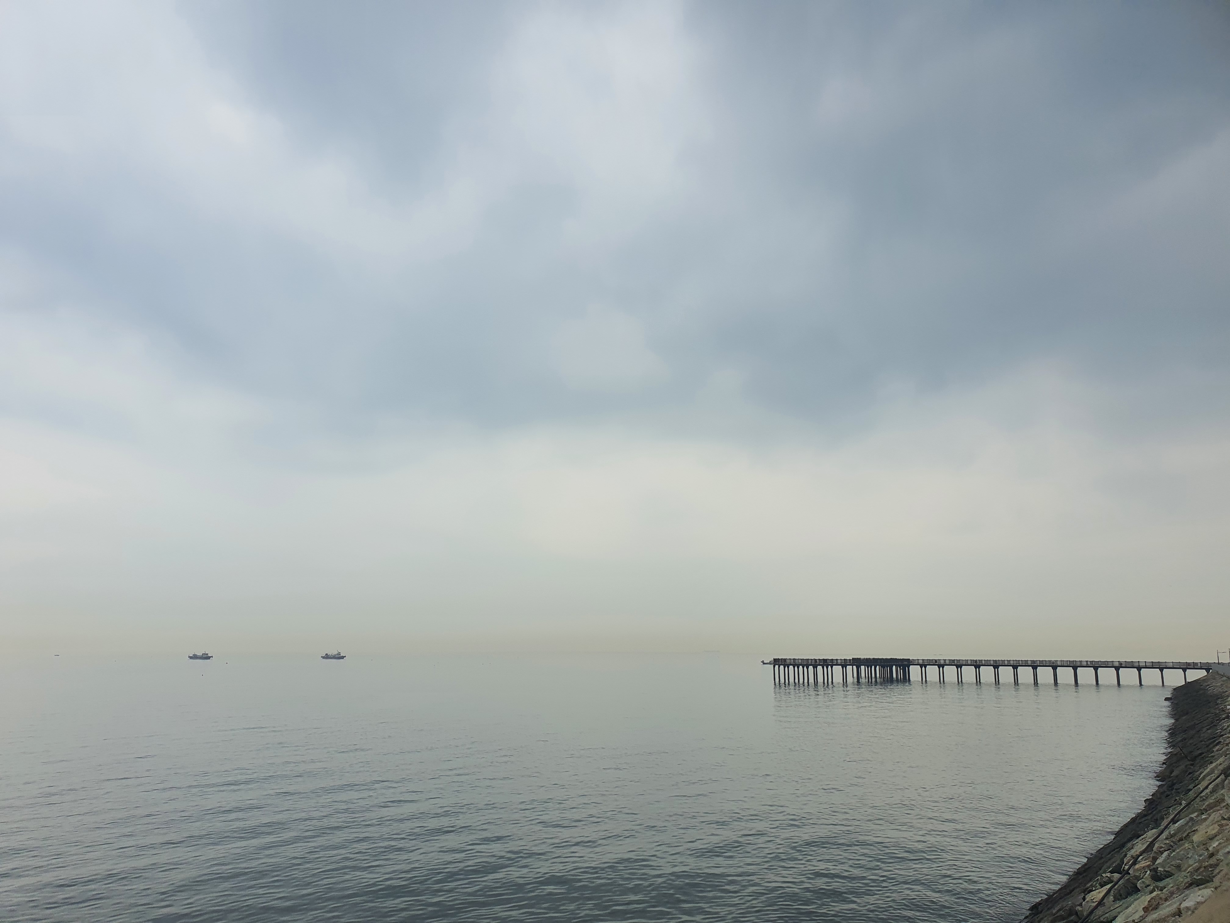 저 멀리 간조에도 낚시를 할 수 있는 피싱피어가 보입니다. 2년전 마지막 찾을 때에도 피싱피어 인근에서 조업 하는걸 보지 못했는데, 어선 2대가 인근에서 조업을 하고 있네요.