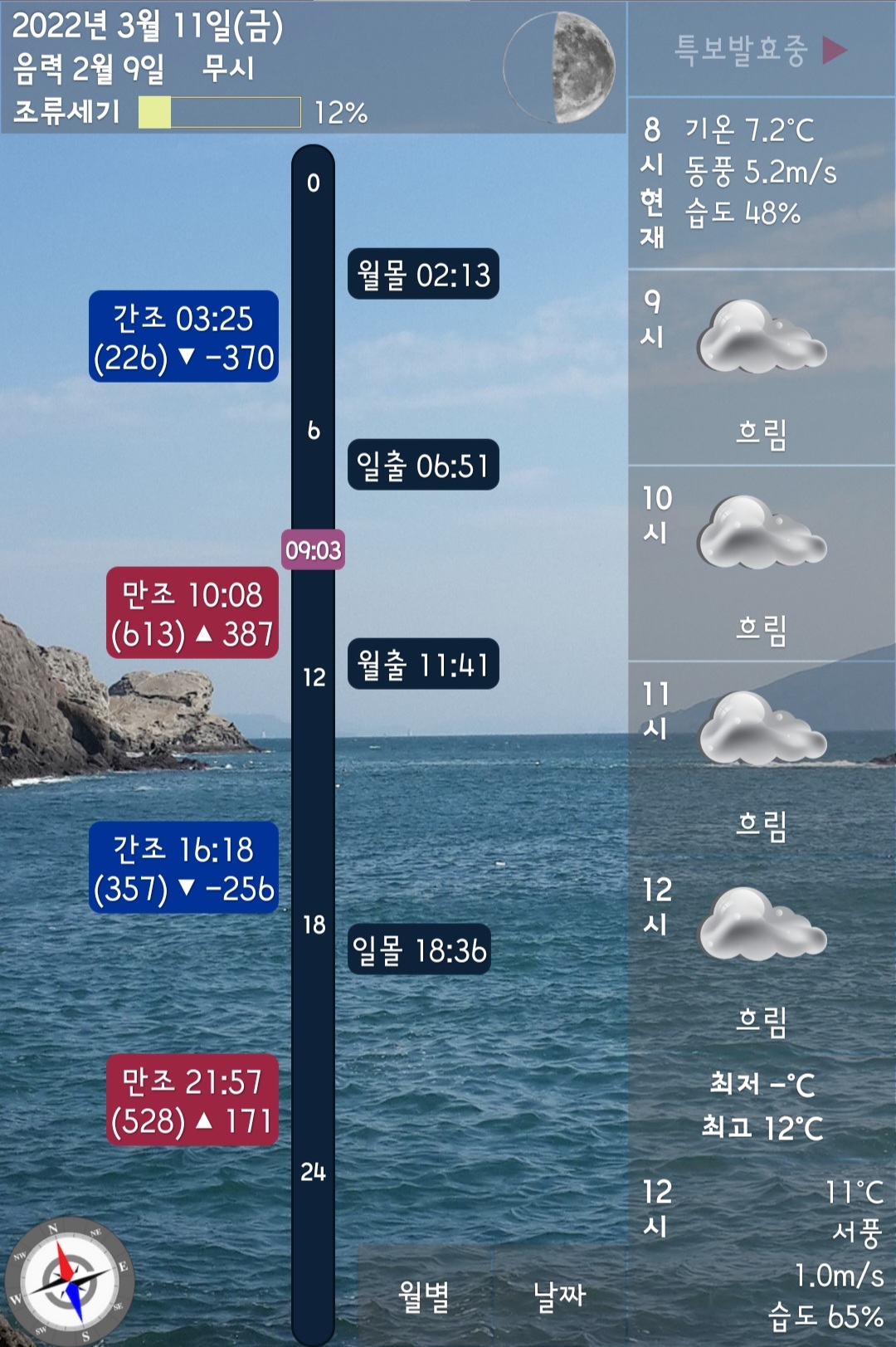 출조할 때가 가장 좋은 물때라고 하지만, 물때가 물고기도 무시한다는 무시무시한 무시 물때인것이 무척 아쉬웠습니다. 오전에 조금 흐리기는 했지만, 정오가 다가올 때부터 햇살도 나오고 바람은 거의 없을 정도로 최적의 날씨였는데 말입니다.