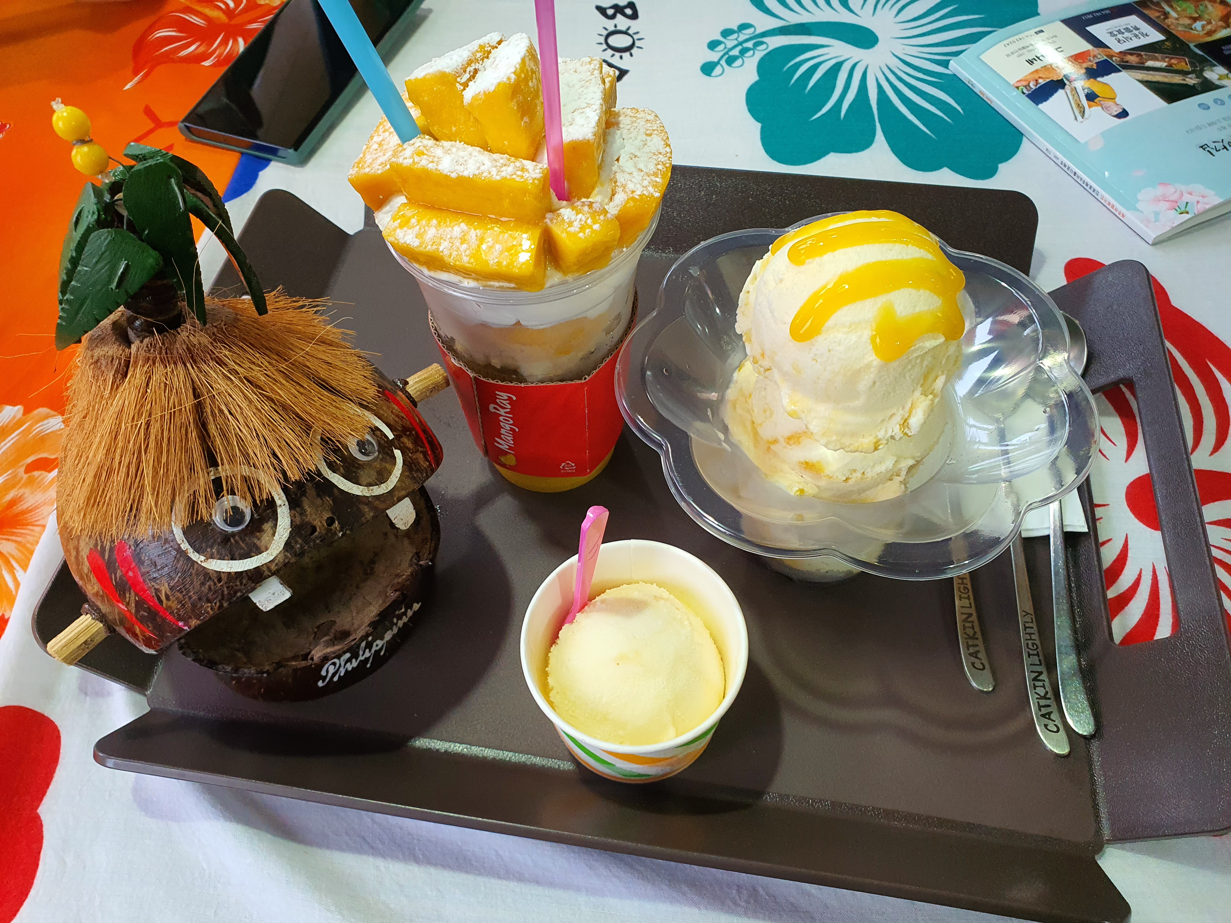 사장님이 외국인이시네요. 그래도 한국말 잘 하십니다. 스노우망고 플룻과 망고아이스크림을 주문하고 무슨 쿠폰으로 망고 아이스크림 컵도 서비스 받았습니다. 두통이 심하게 찾아와 맛을 제대로 즐기지는 못했지만 가족들과 깔끔하게 비우고 숙소로 향합니다.