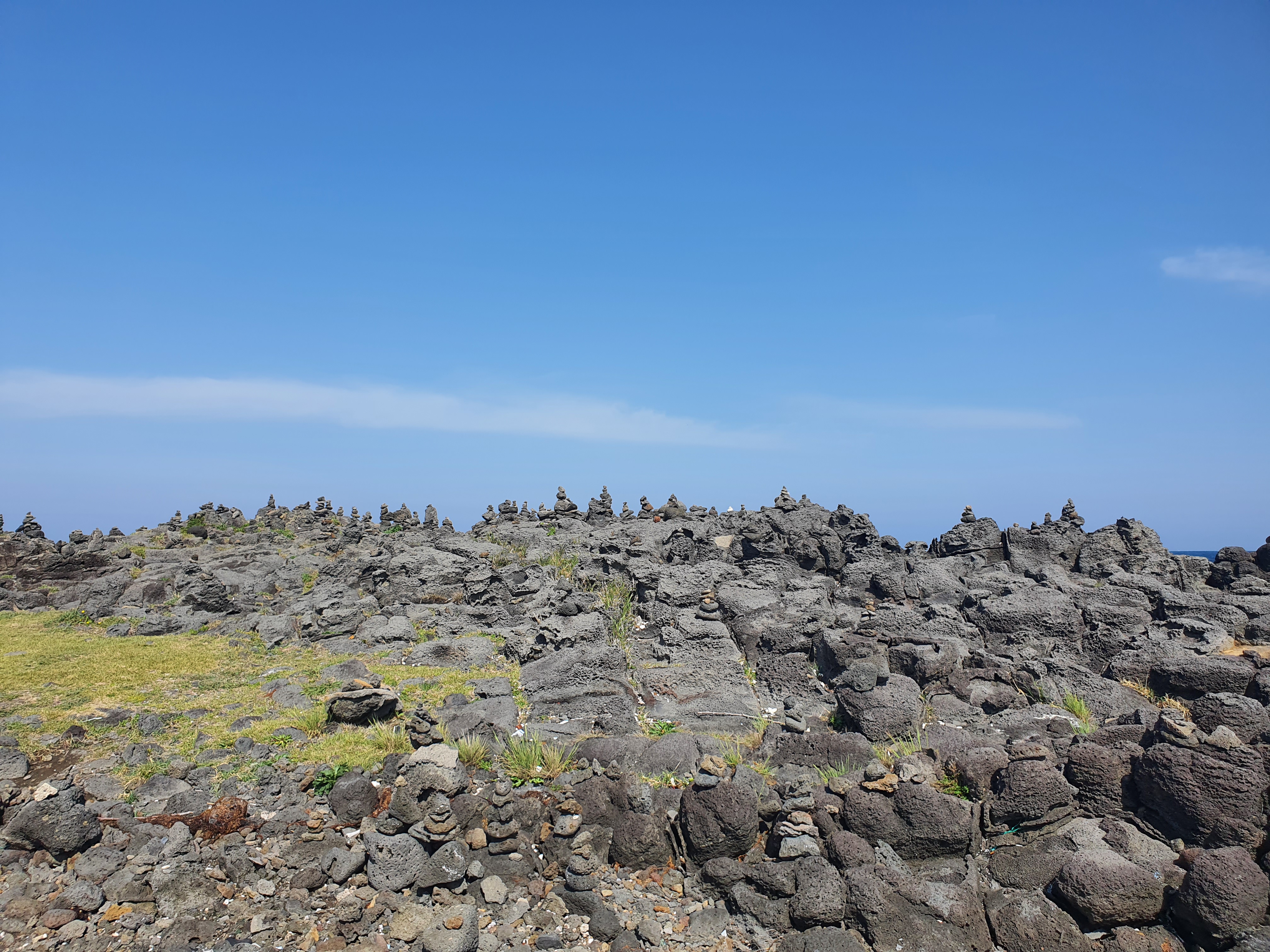 누군가가 소원탑을 절묘하게 쌓아두었기에 우도 바다와 함께 담아봅니다.