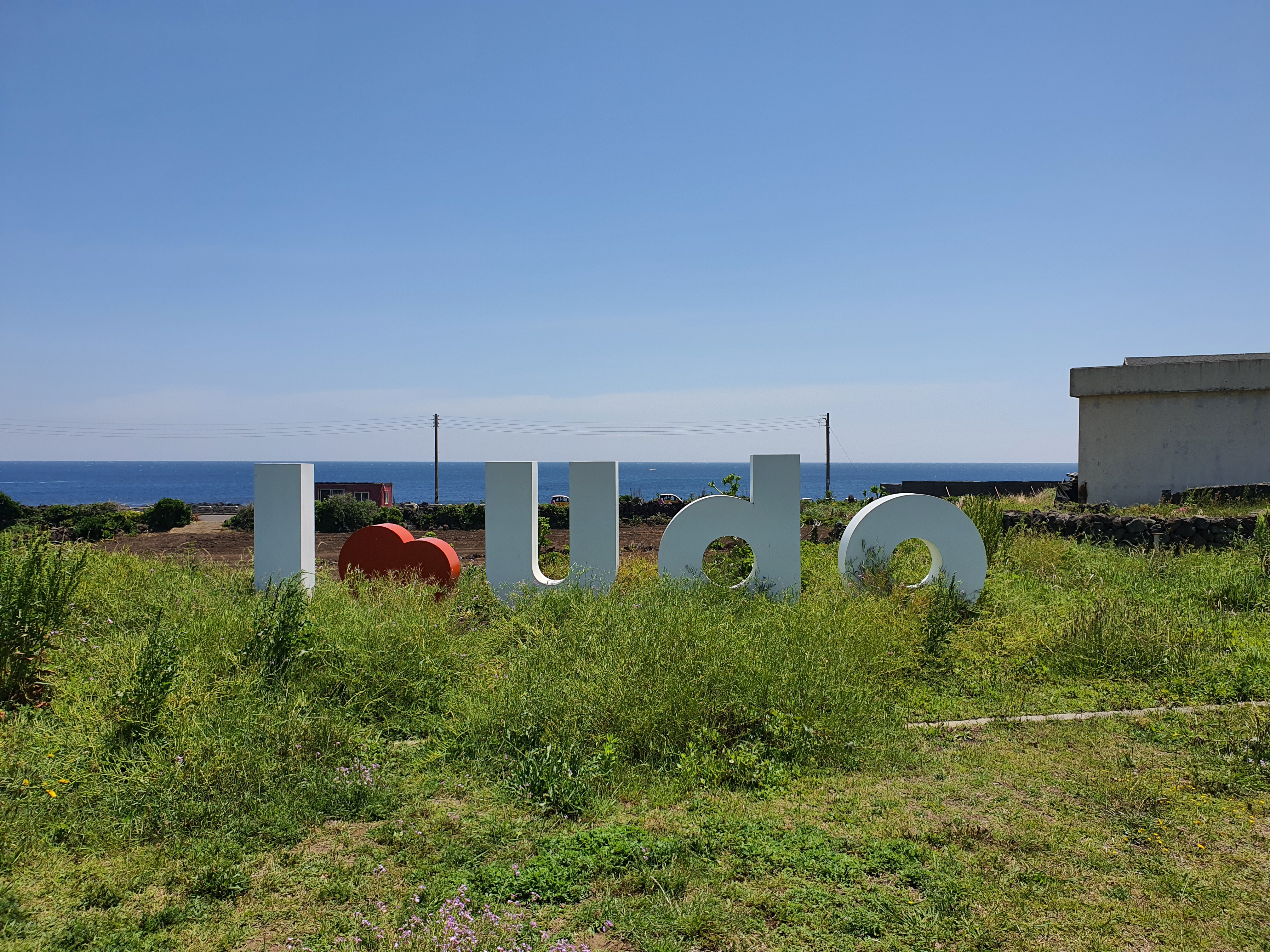 비양도를 나와 검멀레 해변으로 가는 도중에 발견한 포인트입니다. 관리가 좀 안되어 있다보니 잡초가 무성하지만, I❤Udo가 보여 추억을 담았습니다.