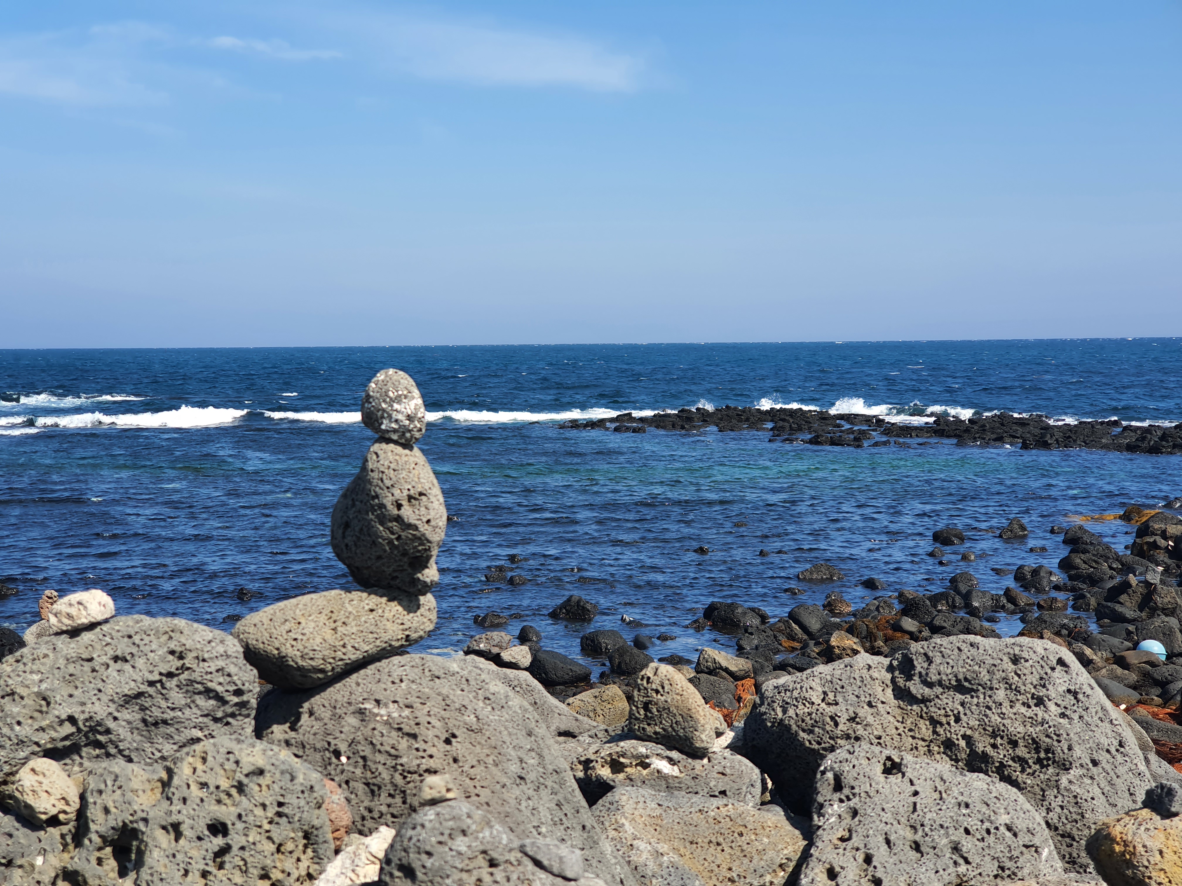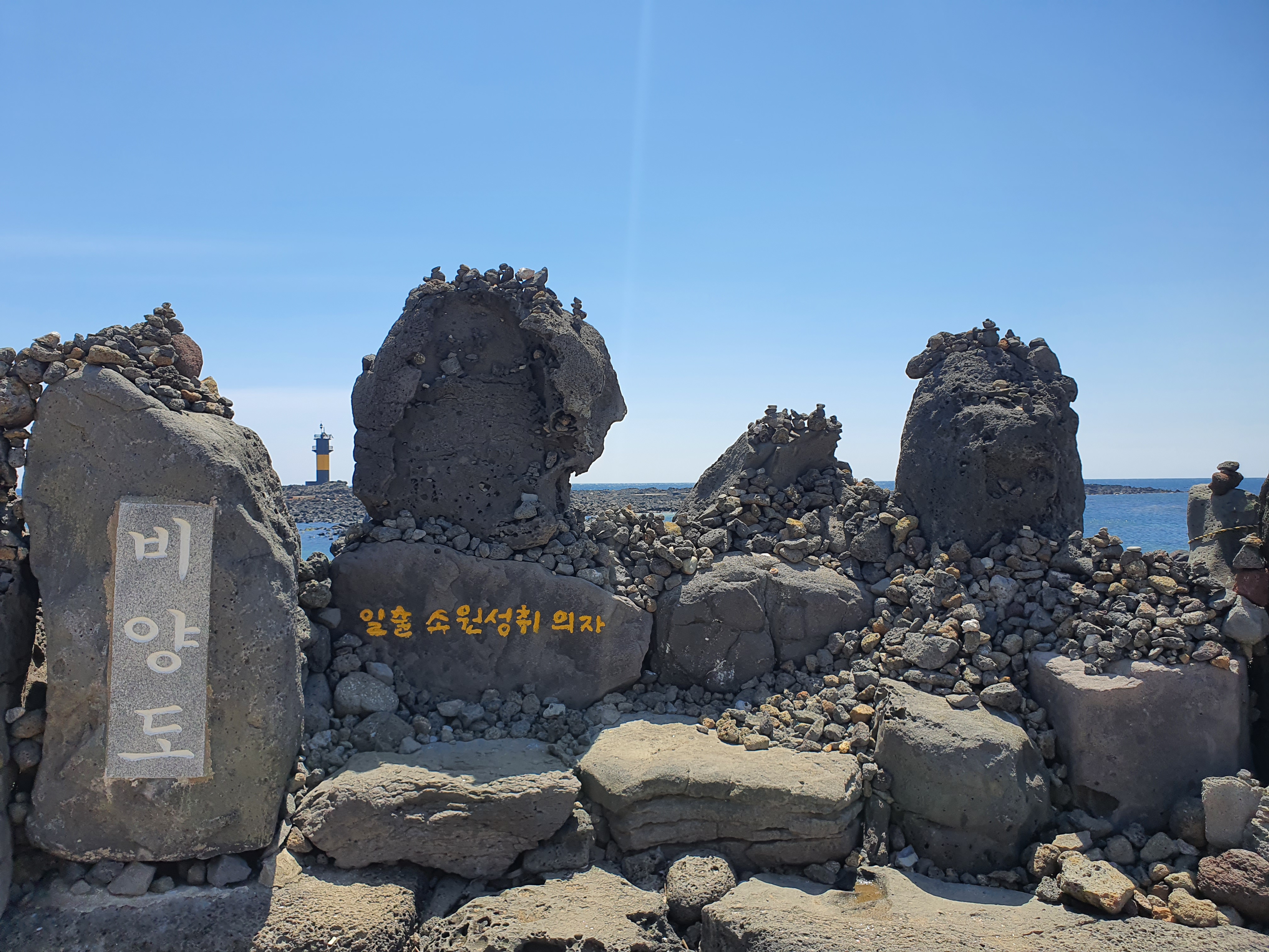누군가가 소원탑을 절묘하게 쌓아두었기에 우도 바다와 함께 담아봅니다.