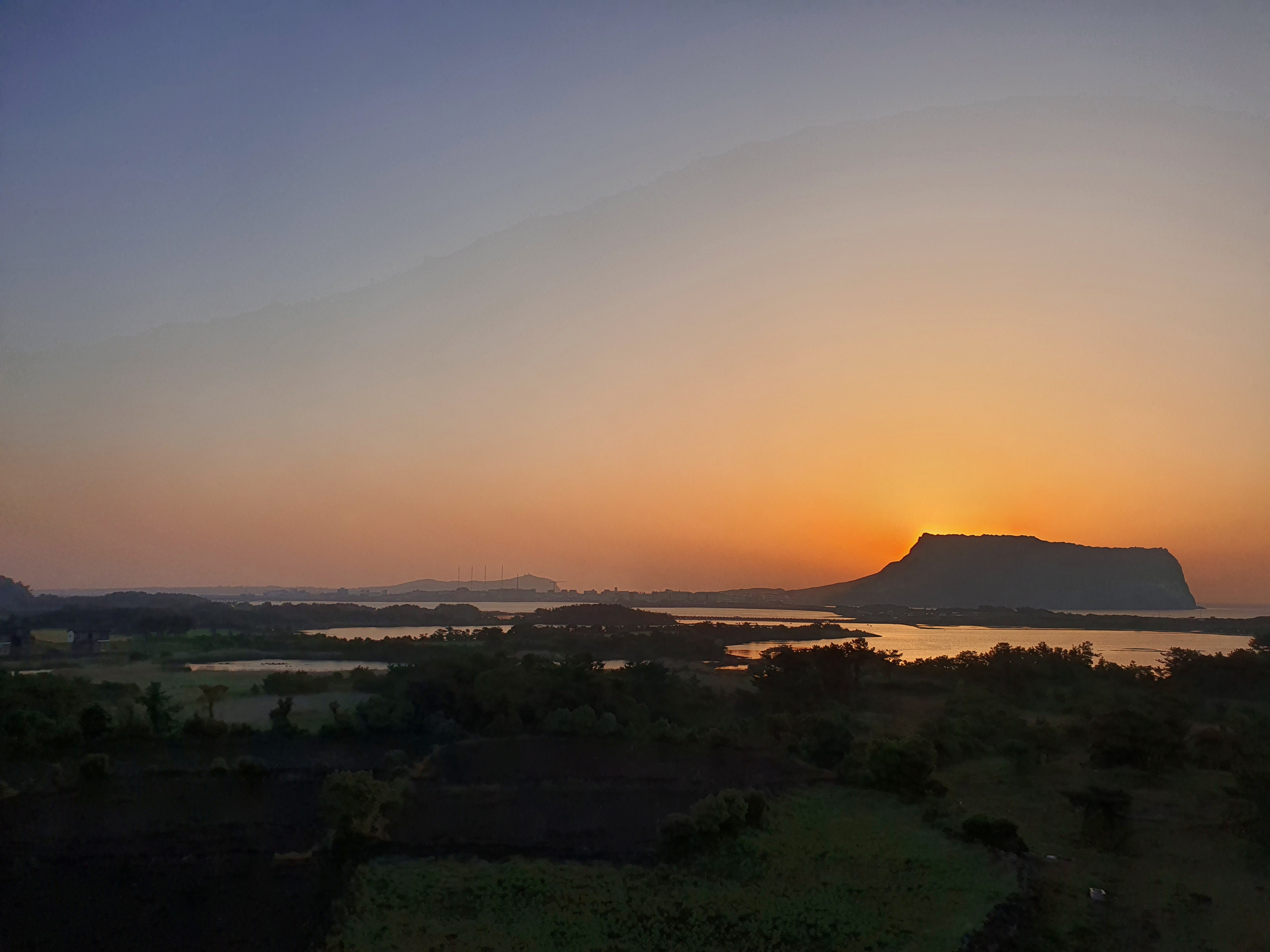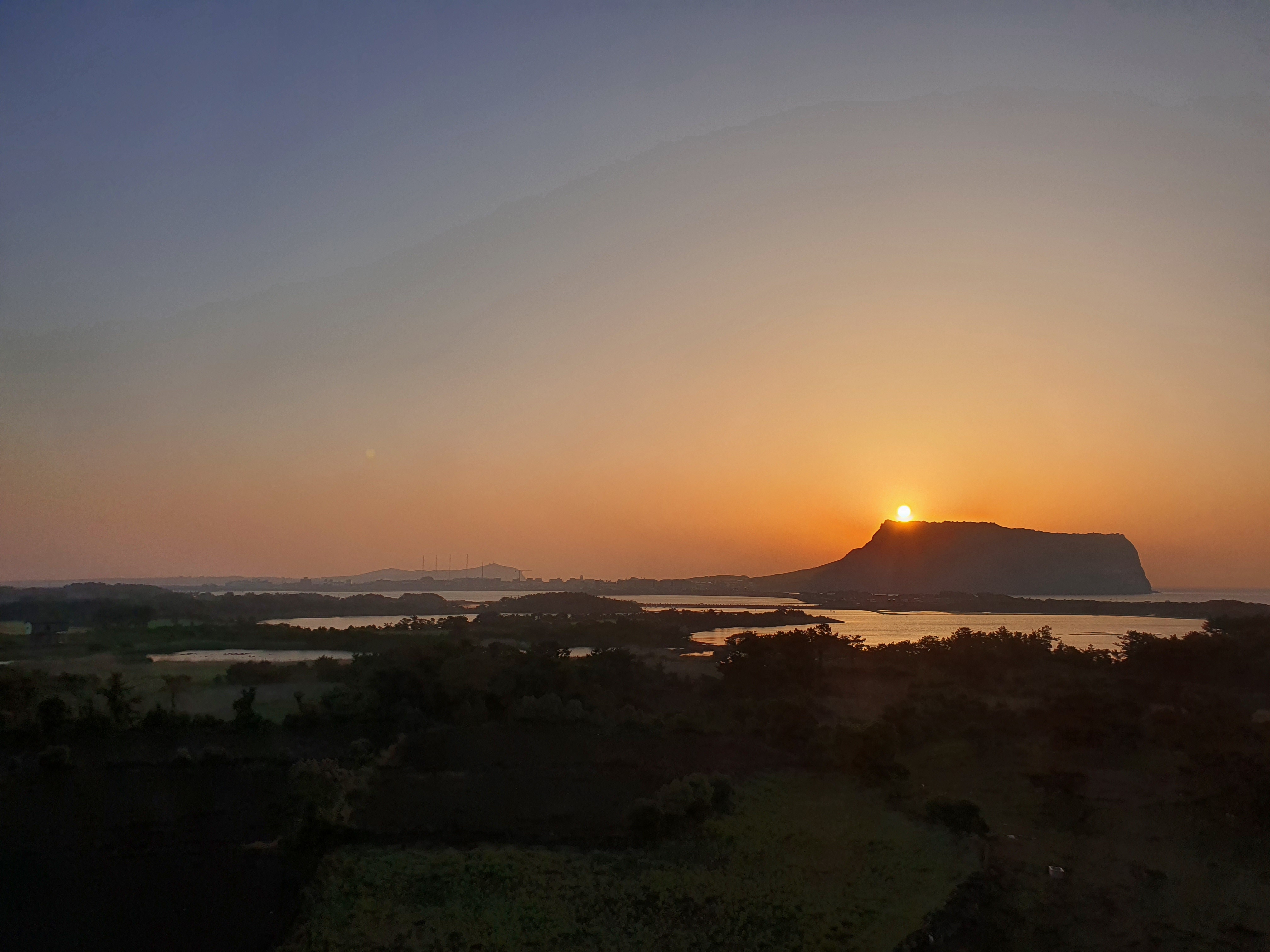 오전에 우도에 들어가는 일정이라 아침 일찍 일어났네요. 호텔에서 성산일출봉 뷰로 멋진 일출을 감상할 수 있었네요.