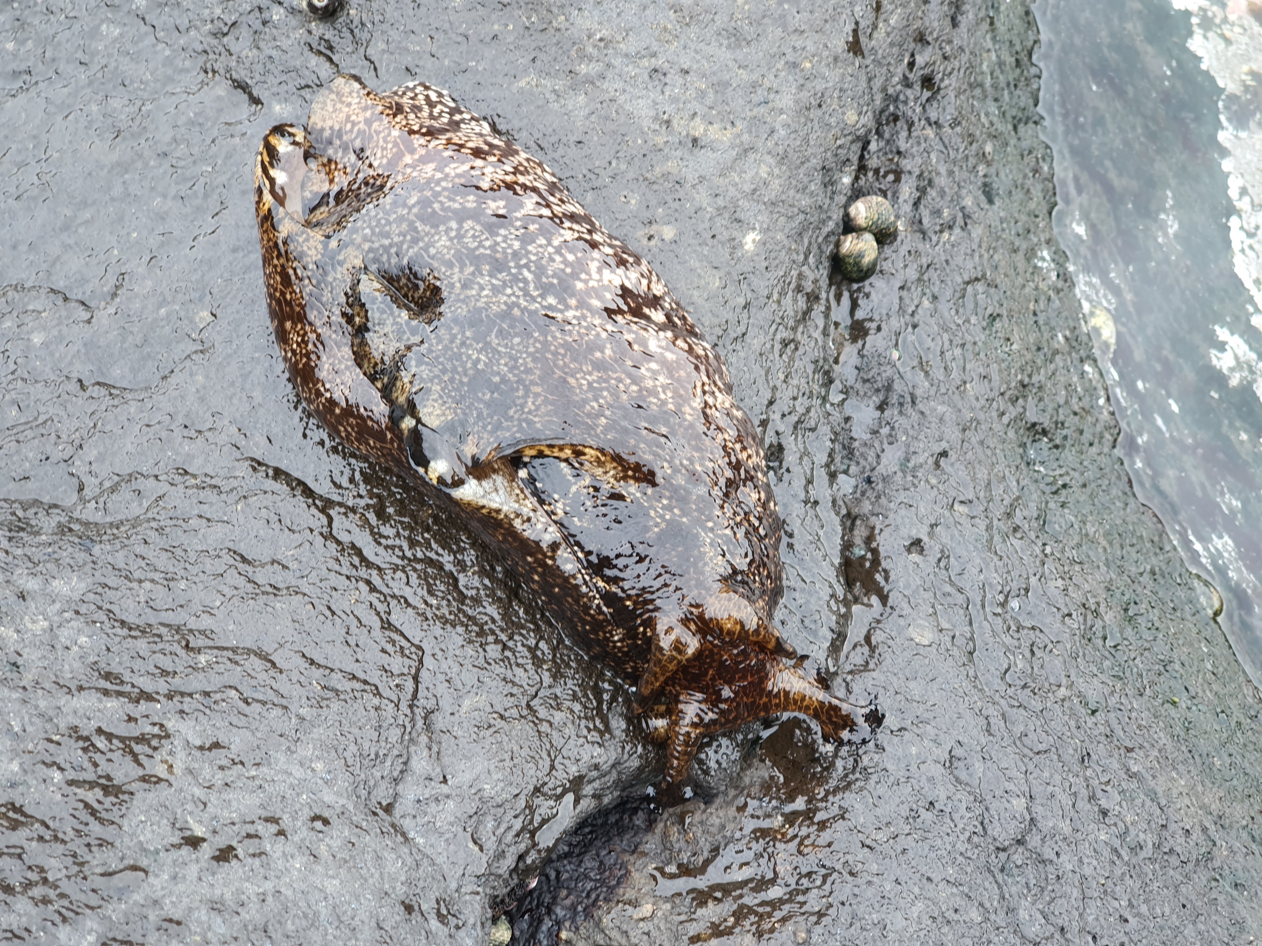 군소라고 하는 연체동물입니다. 껍질이 없는 달팽이와 유사한 생명체이네요.