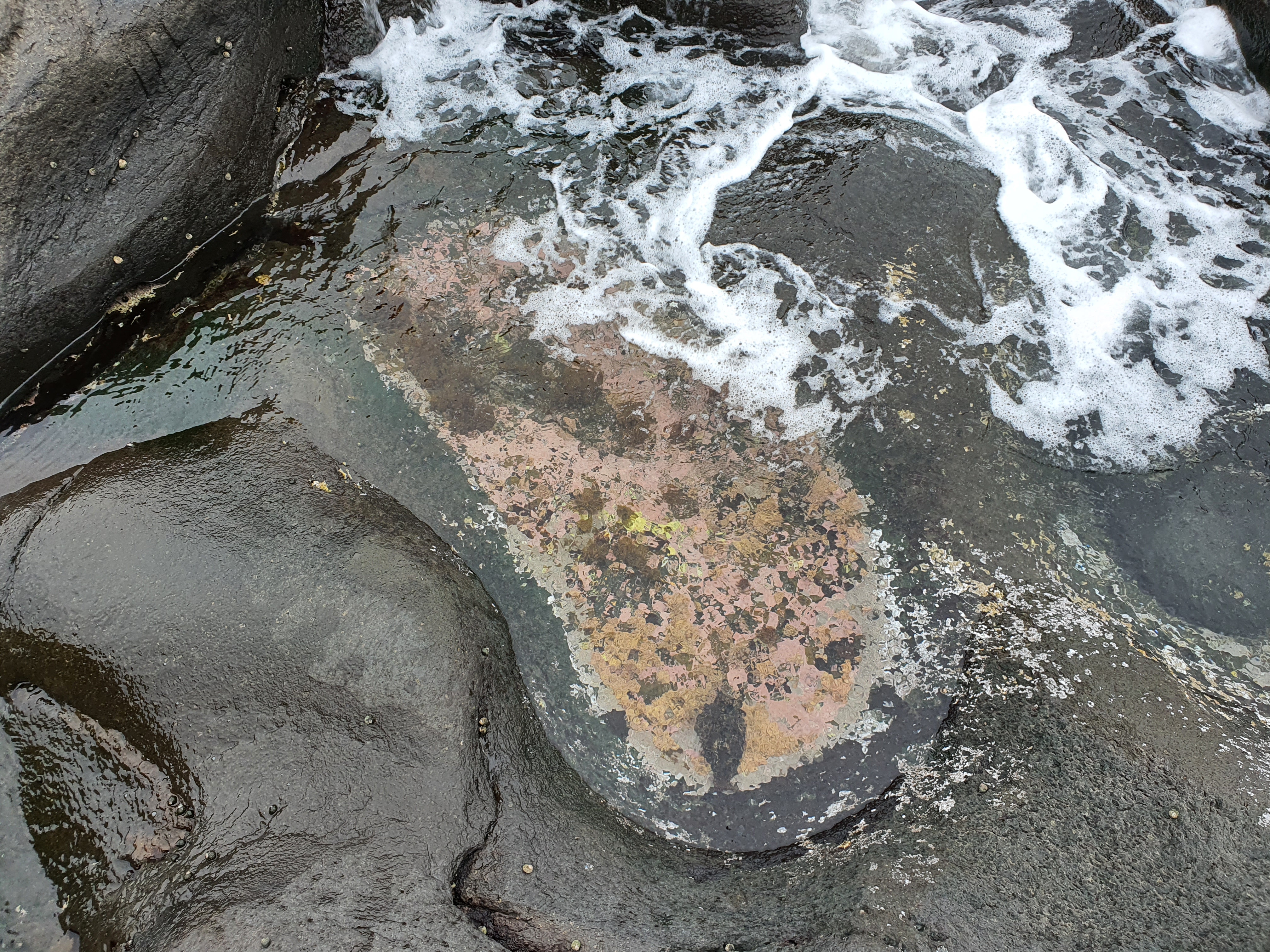 바람이 있다보니 파도가 조금 있는데, 우연히 고인 웅덩이에서 생명체가 눈에 띕니다.