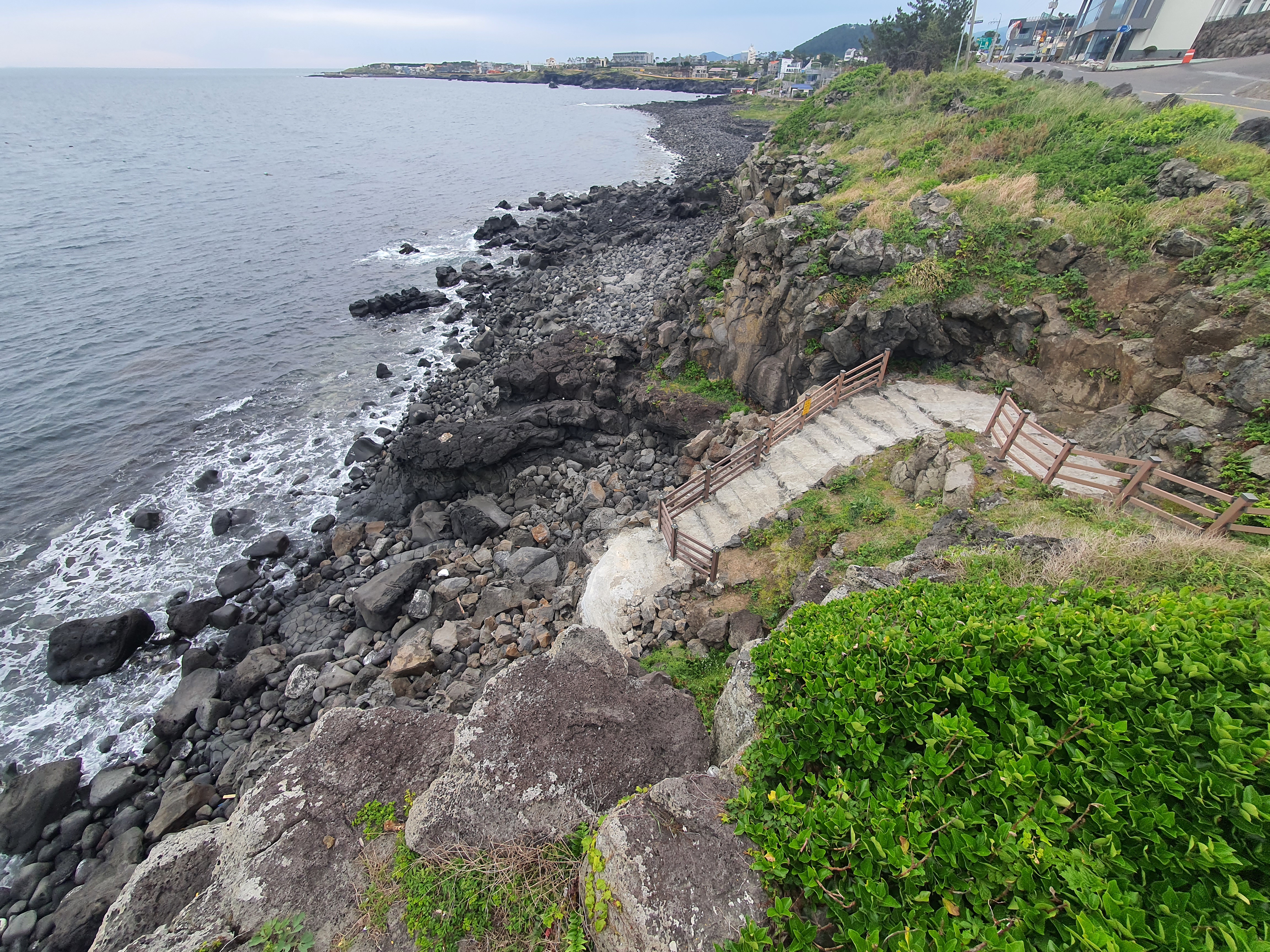갯바위가 날카롭고 바위들은 둥글둥글한 큰 몽돌이라 아이들이 다니기에는 무리가 있어 보이네요.