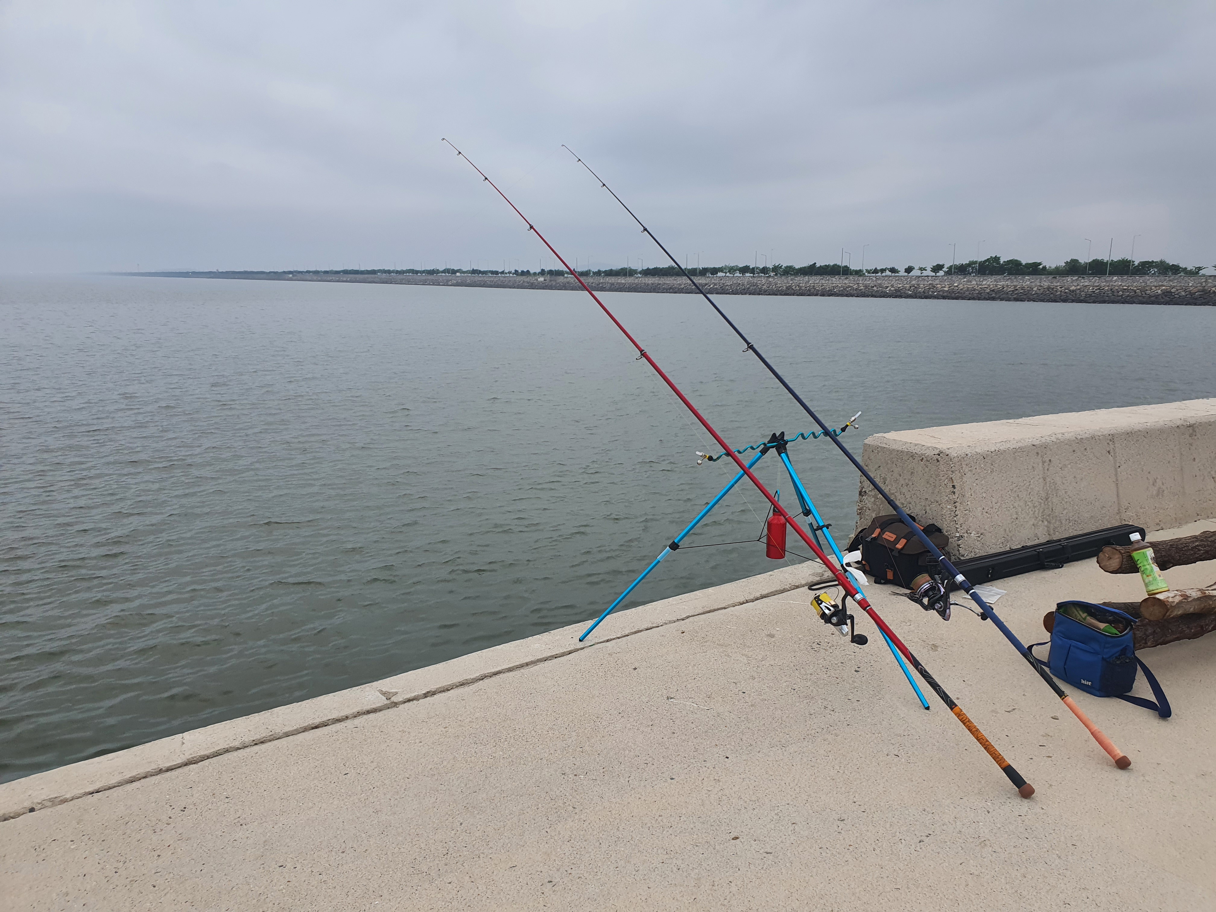 숭어밑밥채비과 구멍봉돌채비에 갯지렁이도 틈틈히 갈아주며 던져보지만, 6시간동안 초릿대는 꼿꼿하게 움직이지 않네요.
